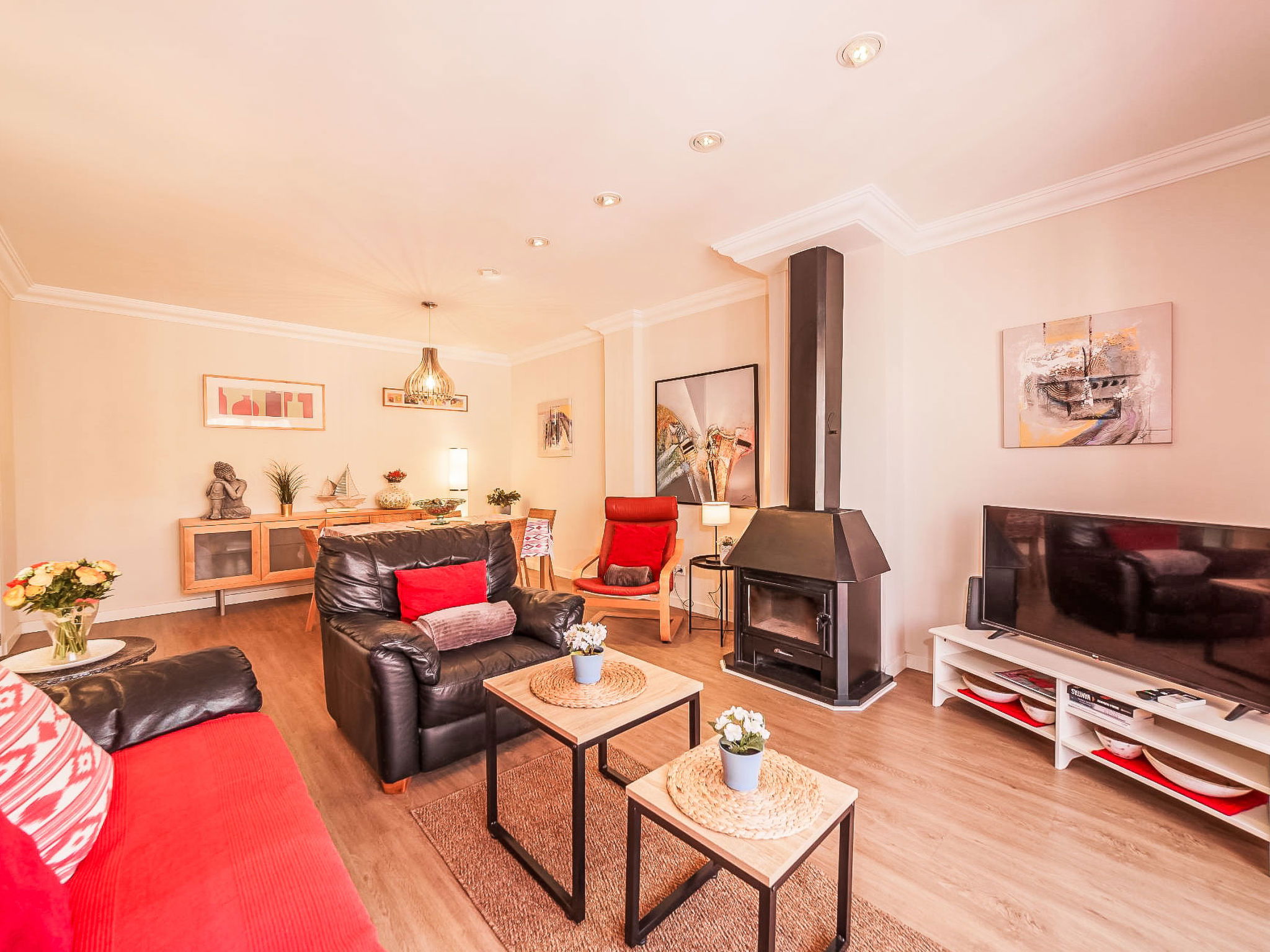 "Mariners 4", 4-room apartment 110 m2 on 4th floor. Spacious and bright, comfortable and cosy furnishings: living/dining room with open-hearth fireplace, dining table, digital TV, flat screen, air conditioning and forced-air heating. 1 double bedroom with 1 french bed (180 cm, length 200 cm), air conditioning and forced-air heating. Exit to the balcony. 2 double bedrooms, each room with 2 beds (90 cm), air conditioning and forced-air heating. Large kitchen (oven, dishwasher, 3 ceramic glass hob hotplates, microwave, freezer, electric coffee machine). 2 showers/WC. Balcony 10 m2. Balcony furniture. Partial view of the sea. Facilities: washing machine, iron, children's high chair, baby cot for up to 2 year olds, hair dryer. Internet (WiFi, free). ETVPL12598