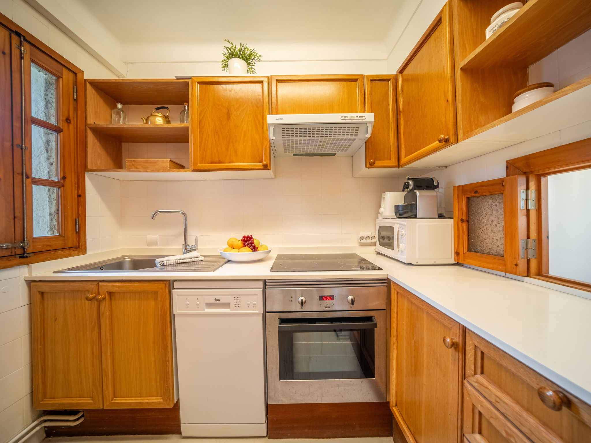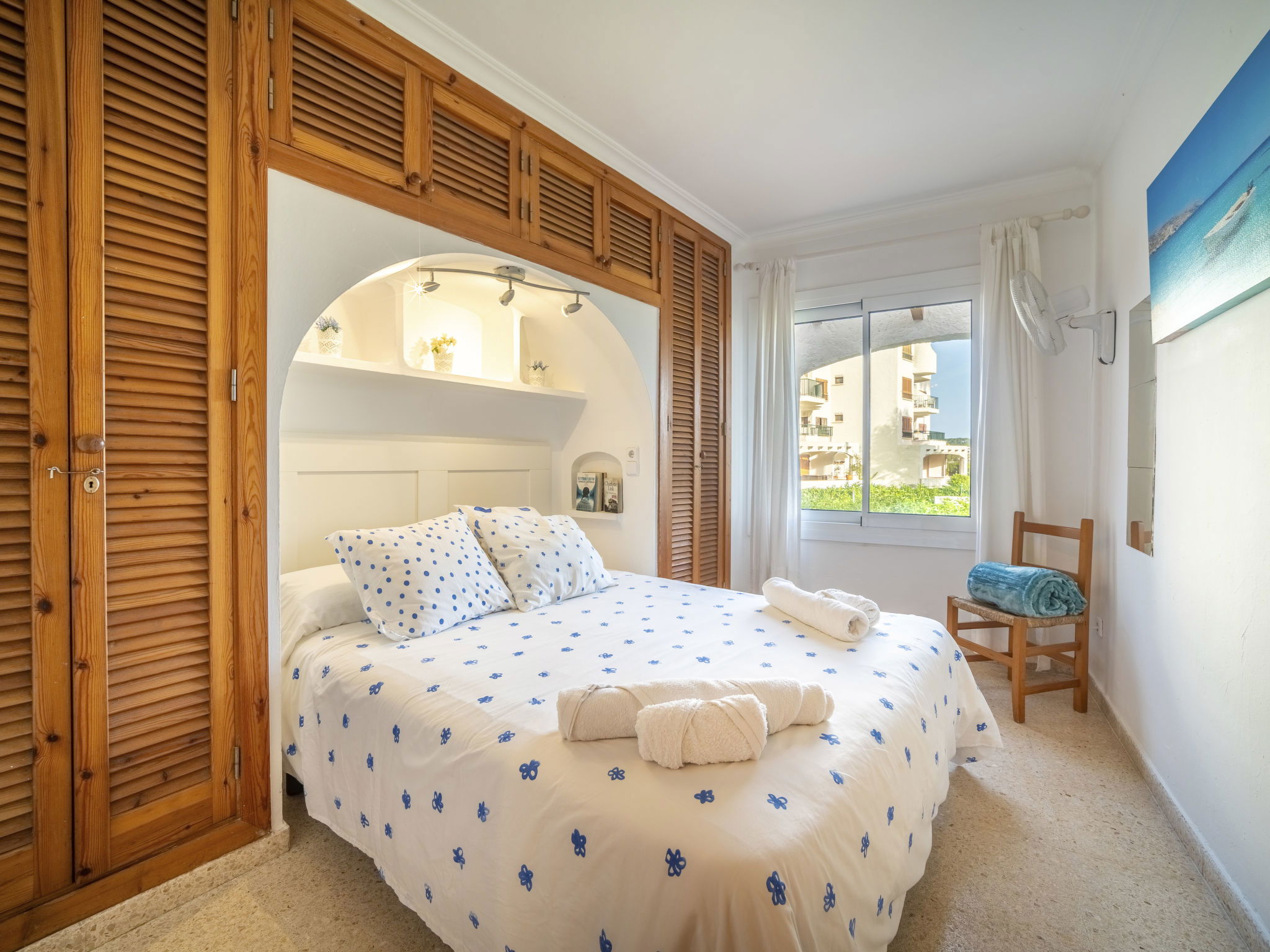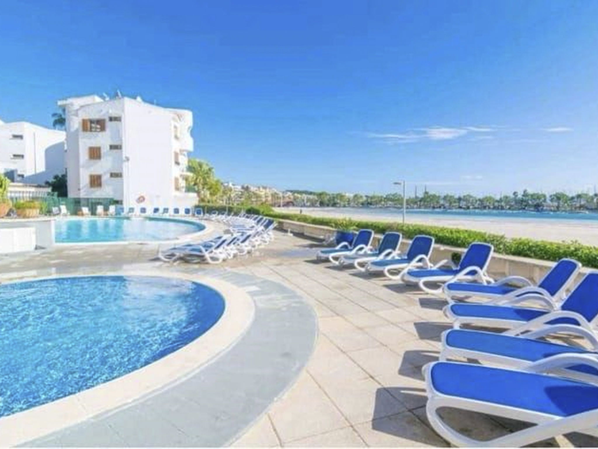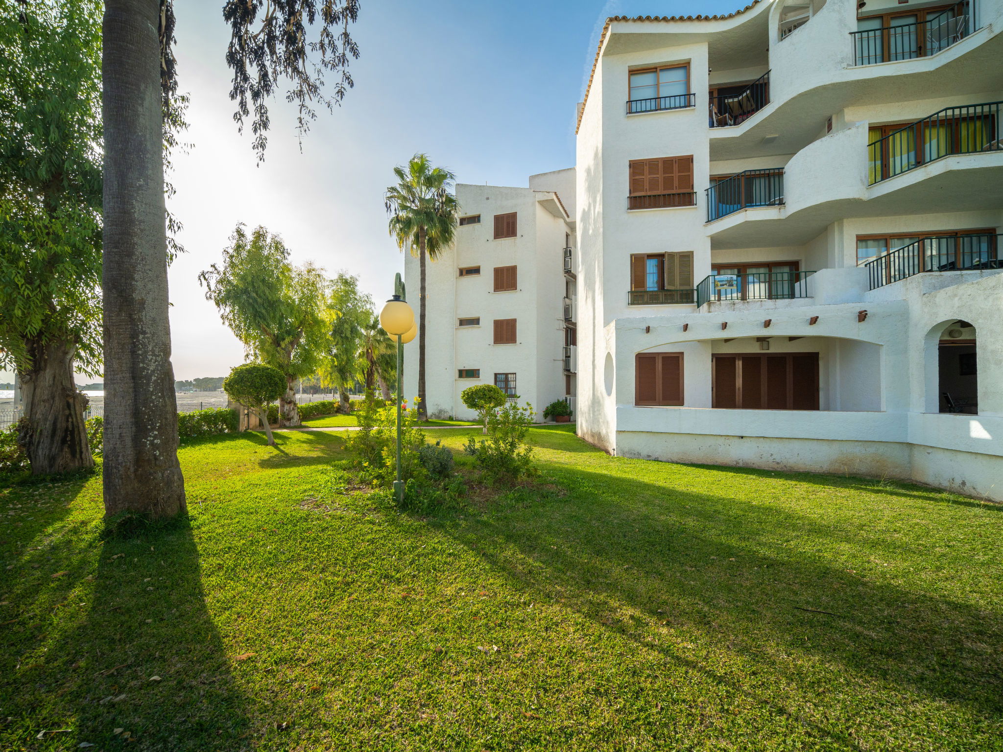 Cosy, comfortable apartment block "Carabela Chic". In the centre of Port d'Alcúdia, in a quiet, sunny position, 2 km from the edge of the forest, 20 m from the sea, direct access to the beach. For shared use: large garden with lawn, swimming pool kidney-shaped (20 x 10 m, depth 100 - 180 cm, seasonal availability: 01.Mar. - 01.Dec.). Children's pool, outdoor shower. Private: arbour, pergola, terrace (9 m2). In the house: internet access, WiFi, air conditioning, washing machine. Shop 15 m, grocery 50 m, supermarket 80 m, shopping centre 25 km, restaurant 5 m, bar 50 m, bakery 500 m, bicycle rental, pub garden 50 m, 5 minute walk to the centre, bus stop 60 m, sandy beach "Playa de Port Alcúdia" 15 m, rocky beach "Alcanada" 3.5 km. Sports harbour, marina 200 m, golf course (18 hole) 4.5 km, tennis 1 km, minigolf 600 m, walking paths from the house 1.8 km, cycle lane 1.5 km, children's playground 150 m. Nearby attractions: Ciudad Romana de Pollentia, Ermita de la Victoria, Alcúdia (Old Town). Hidropark Aquatic Park. Well-known lakes can easily be reached: S'Albufera d'Alcudia. Hiking paths: Sa Talaia d'Alcúdia. Puig de Sant Martí. Please note: suitable for families, suitable for seniors. Object suitable for 4 adults. The owner does not accept any youth groups. Airfield 50 km from the property. Neighbourhood highly sensitive to noise. Quietness and good behaviour expected.