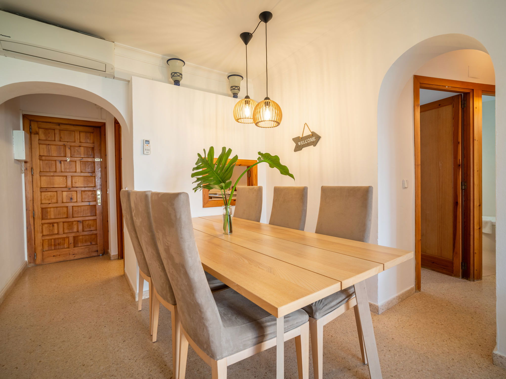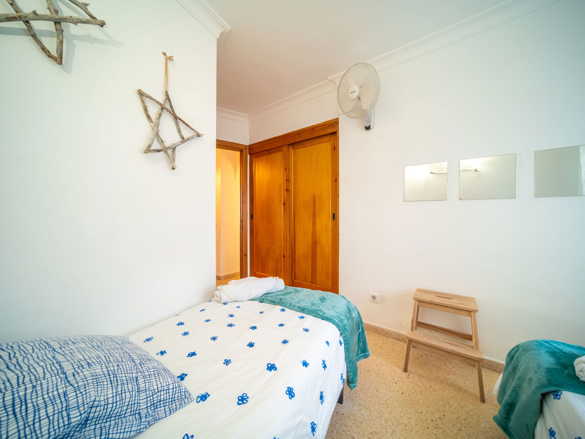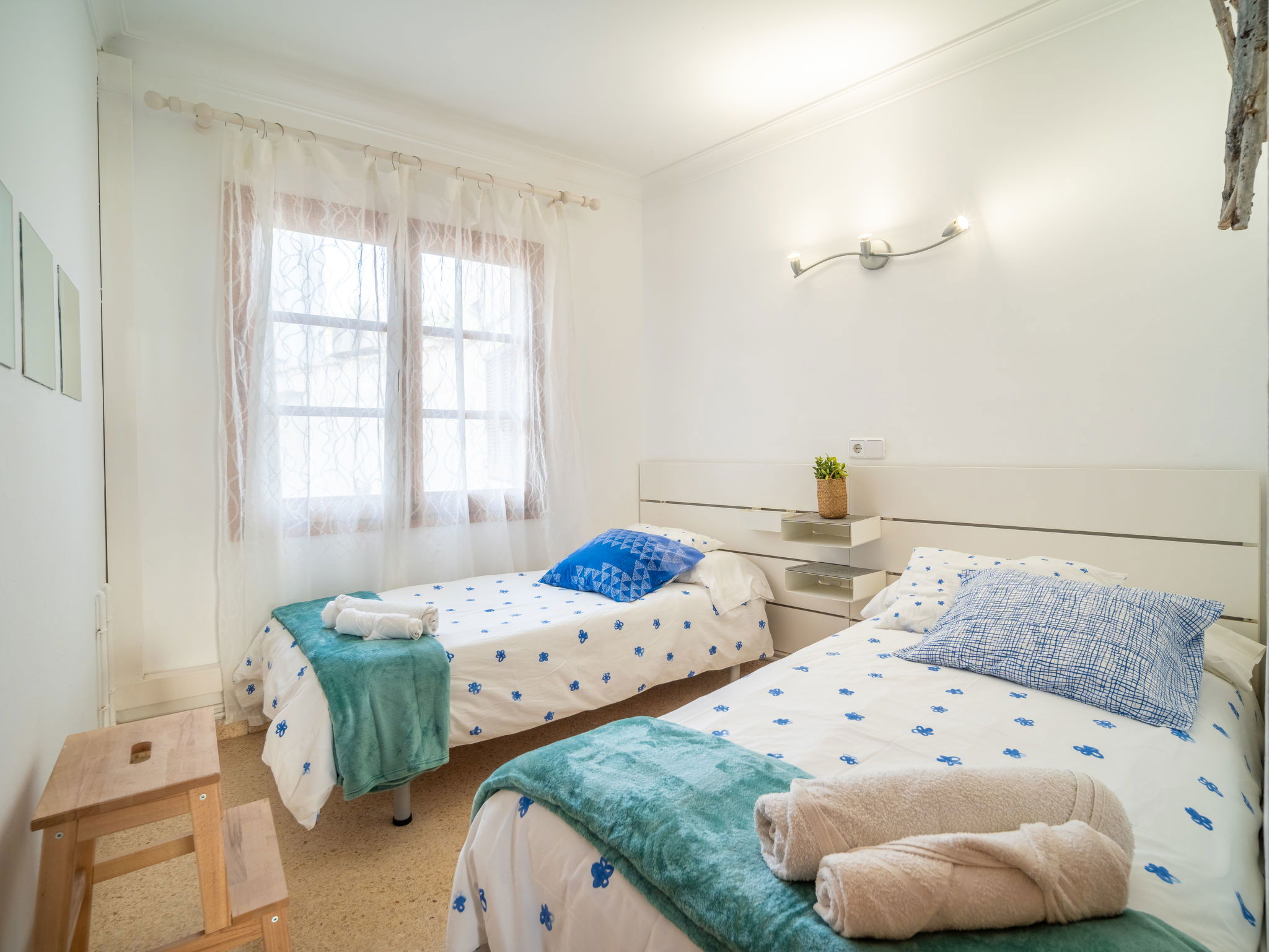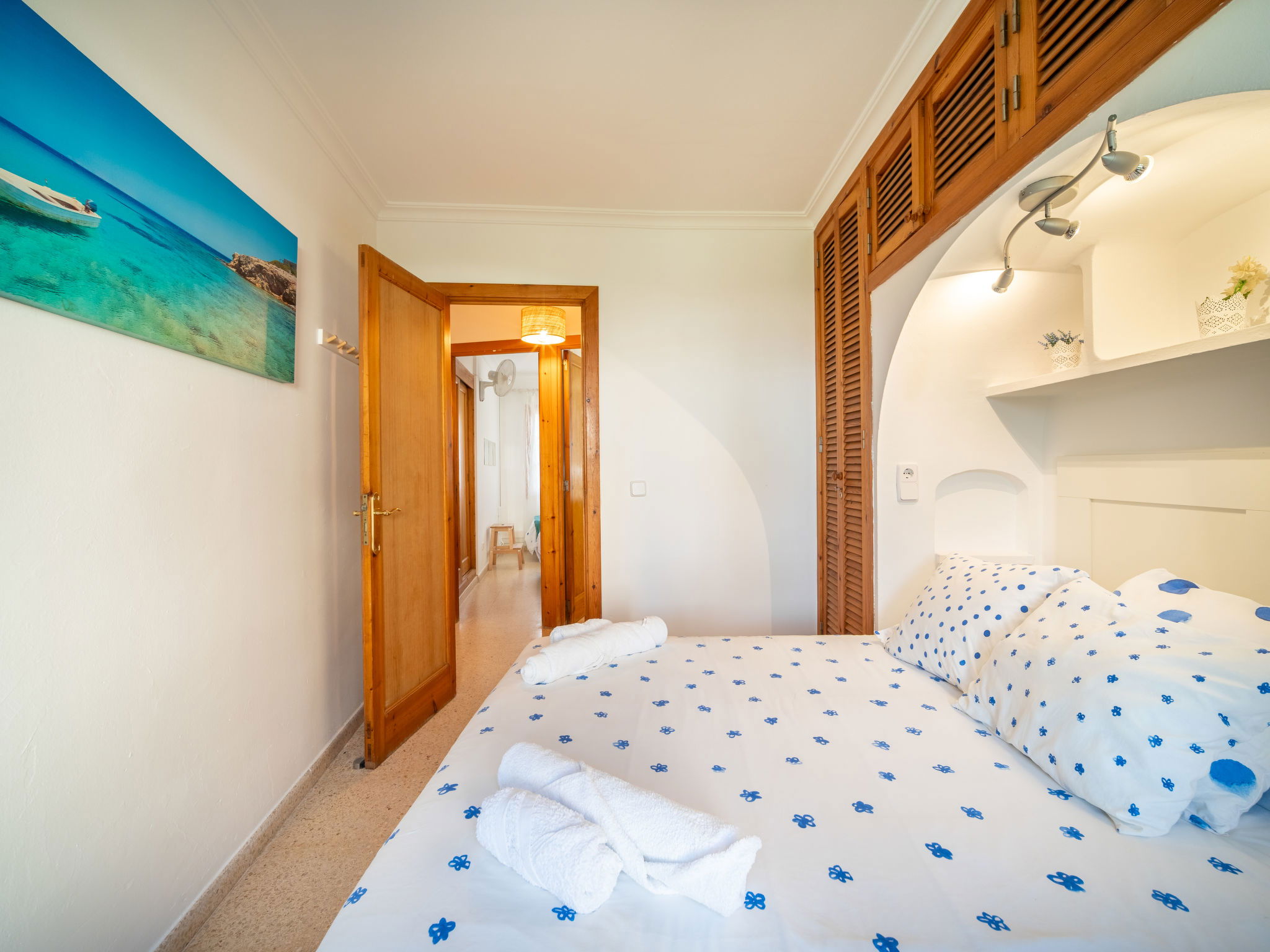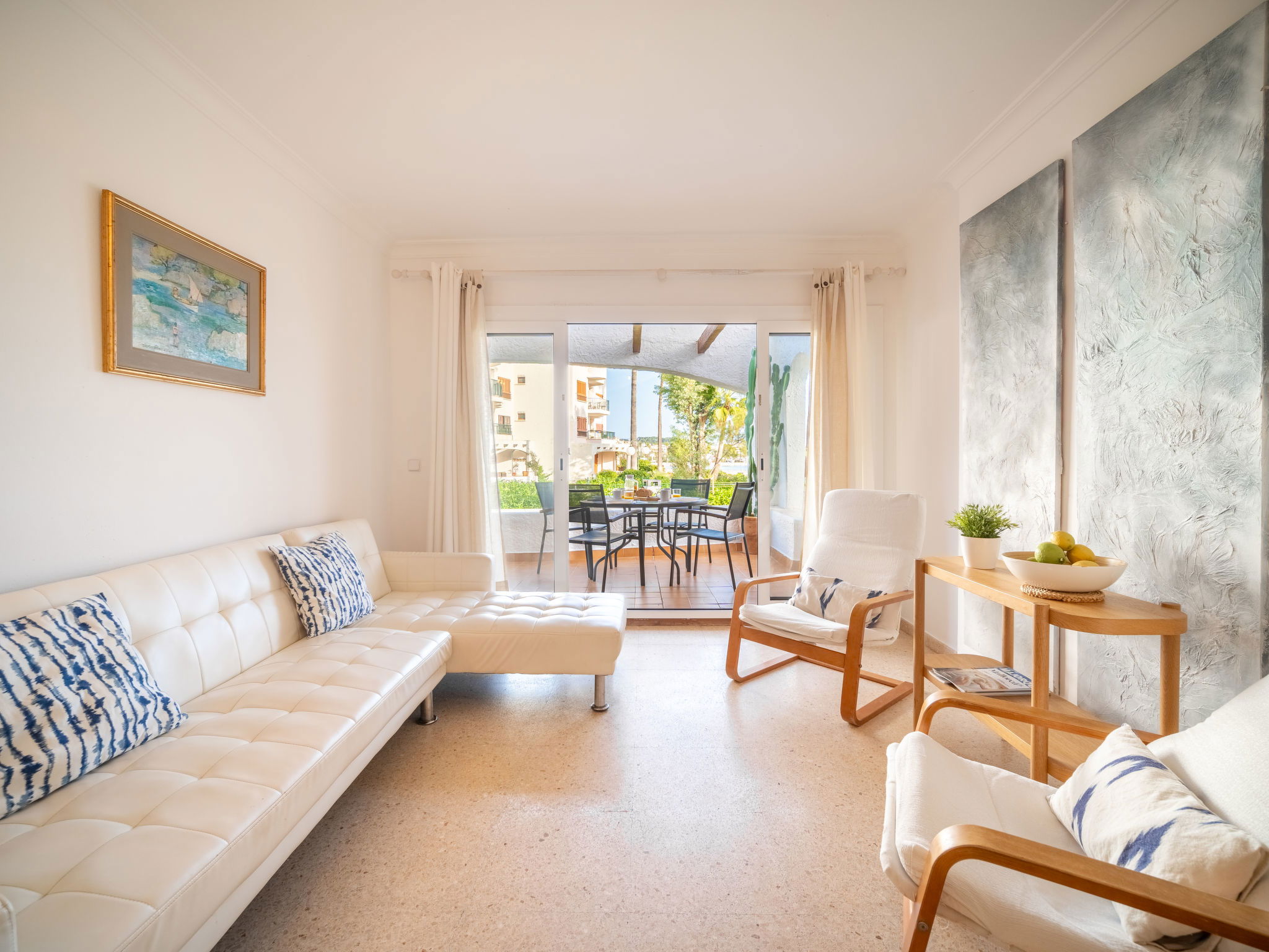 Cosy, comfortable apartment block "Carabela Chic". In the centre of Port d'Alcúdia, in a quiet, sunny position, 2 km from the edge of the forest, 20 m from the sea, direct access to the beach. For shared use: large garden with lawn, swimming pool kidney-shaped (20 x 10 m, depth 100 - 180 cm, seasonal availability: 01.Mar. - 01.Dec.). Children's pool, outdoor shower. Private: arbour, pergola, terrace (9 m2). In the house: internet access, WiFi, air conditioning, washing machine. Shop 15 m, grocery 50 m, supermarket 80 m, shopping centre 25 km, restaurant 5 m, bar 50 m, bakery 500 m, bicycle rental, pub garden 50 m, 5 minute walk to the centre, bus stop 60 m, sandy beach "Playa de Port Alcúdia" 15 m, rocky beach "Alcanada" 3.5 km. Sports harbour, marina 200 m, golf course (18 hole) 4.5 km, tennis 1 km, minigolf 600 m, walking paths from the house 1.8 km, cycle lane 1.5 km, children's playground 150 m. Nearby attractions: Ciudad Romana de Pollentia, Ermita de la Victoria, Alcúdia (Old Town). Hidropark Aquatic Park. Well-known lakes can easily be reached: S'Albufera d'Alcudia. Hiking paths: Sa Talaia d'Alcúdia. Puig de Sant Martí. Please note: suitable for families, suitable for seniors. Object suitable for 4 adults. The owner does not accept any youth groups. Airfield 50 km from the property. Neighbourhood highly sensitive to noise. Quietness and good behaviour expected.
