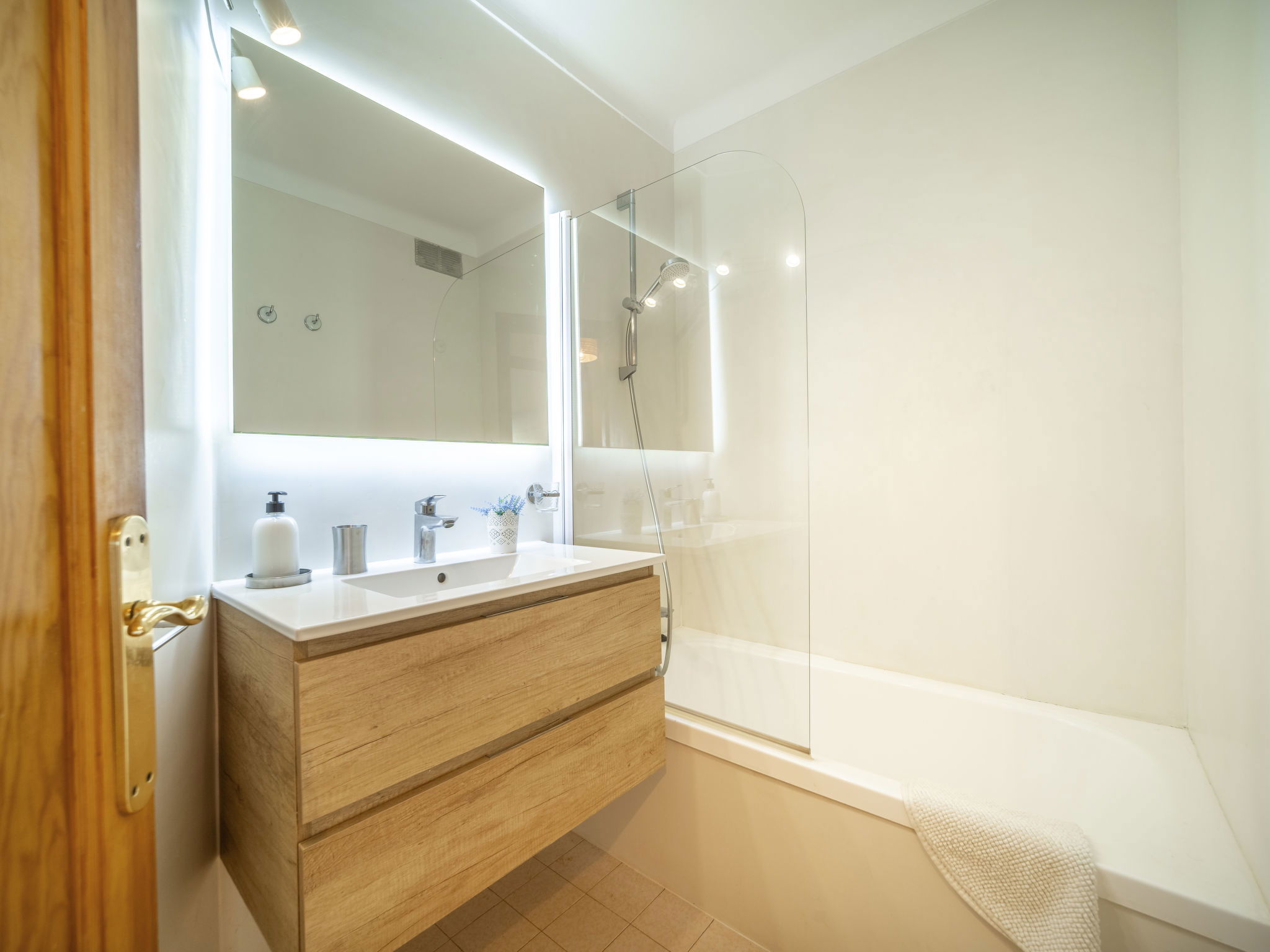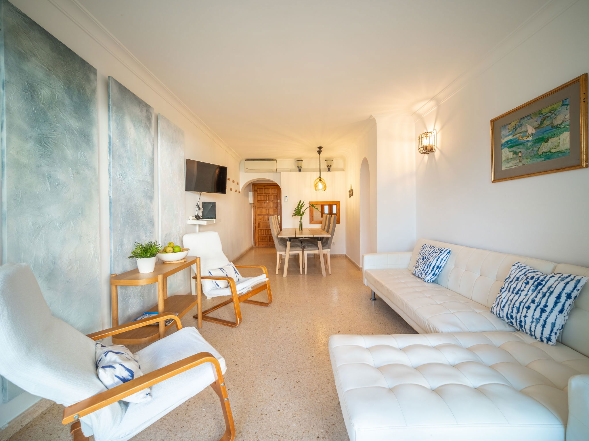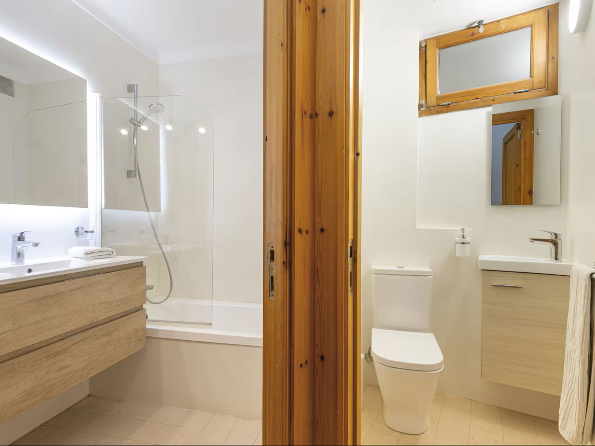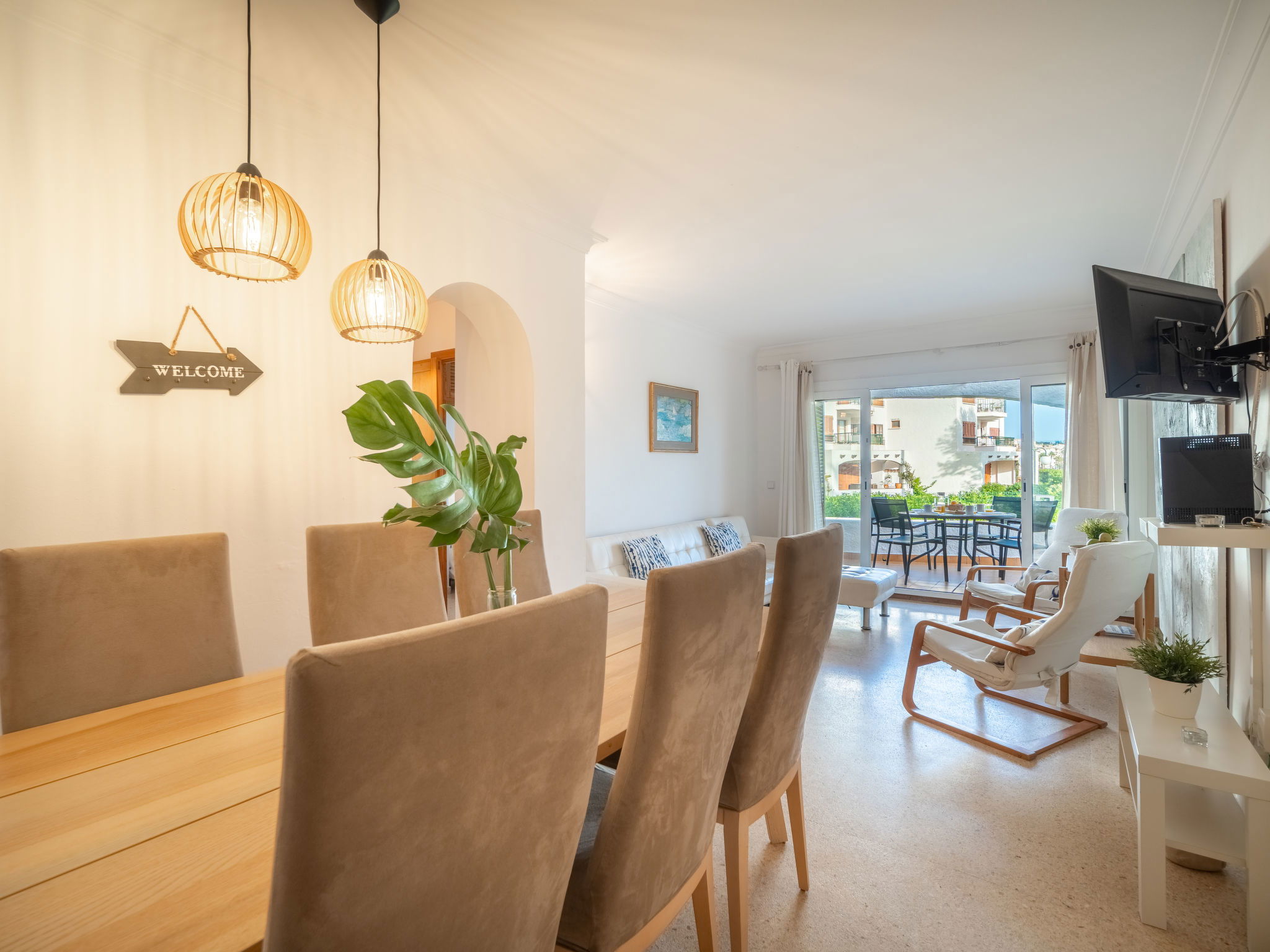 Cosy, comfortable apartment block "Carabela Chic". In the centre of Port d'Alcúdia, in a quiet, sunny position, 2 km from the edge of the forest, 20 m from the sea, direct access to the beach. For shared use: large garden with lawn, swimming pool kidney-shaped (20 x 10 m, depth 100 - 180 cm, seasonal availability: 01.Mar. - 01.Dec.). Children's pool, outdoor shower. Private: arbour, pergola, terrace (9 m2). In the house: internet access, WiFi, air conditioning, washing machine. Shop 15 m, grocery 50 m, supermarket 80 m, shopping centre 25 km, restaurant 5 m, bar 50 m, bakery 500 m, bicycle rental, pub garden 50 m, 5 minute walk to the centre, bus stop 60 m, sandy beach "Playa de Port Alcúdia" 15 m, rocky beach "Alcanada" 3.5 km. Sports harbour, marina 200 m, golf course (18 hole) 4.5 km, tennis 1 km, minigolf 600 m, walking paths from the house 1.8 km, cycle lane 1.5 km, children's playground 150 m. Nearby attractions: Ciudad Romana de Pollentia, Ermita de la Victoria, Alcúdia (Old Town). Hidropark Aquatic Park. Well-known lakes can easily be reached: S'Albufera d'Alcudia. Hiking paths: Sa Talaia d'Alcúdia. Puig de Sant Martí. Please note: suitable for families, suitable for seniors. Object suitable for 4 adults. The owner does not accept any youth groups. Airfield 50 km from the property. Neighbourhood highly sensitive to noise. Quietness and good behaviour expected.
