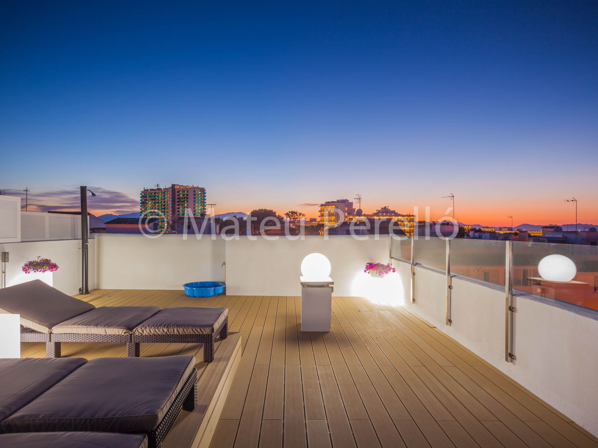 A balcony facing the street, and from which you peep the sea, is perfect for sunbathing, chatting, reading or take the air. In additional the building has a roof terrace for communal use, prepared as chill-out area. With sun loungers, pergola, shower, table, BBQ and toys for children you can enjoy relaxing hours during the day as also at night.