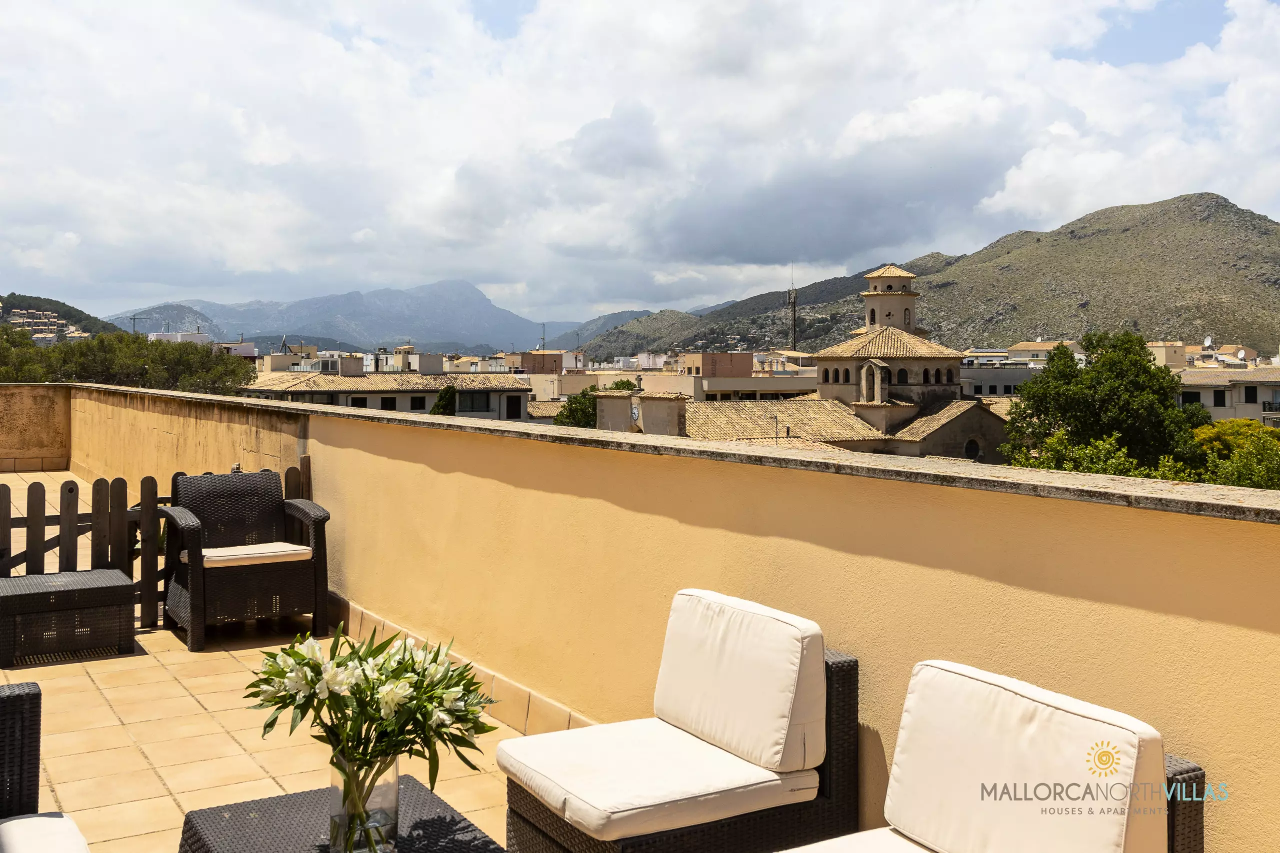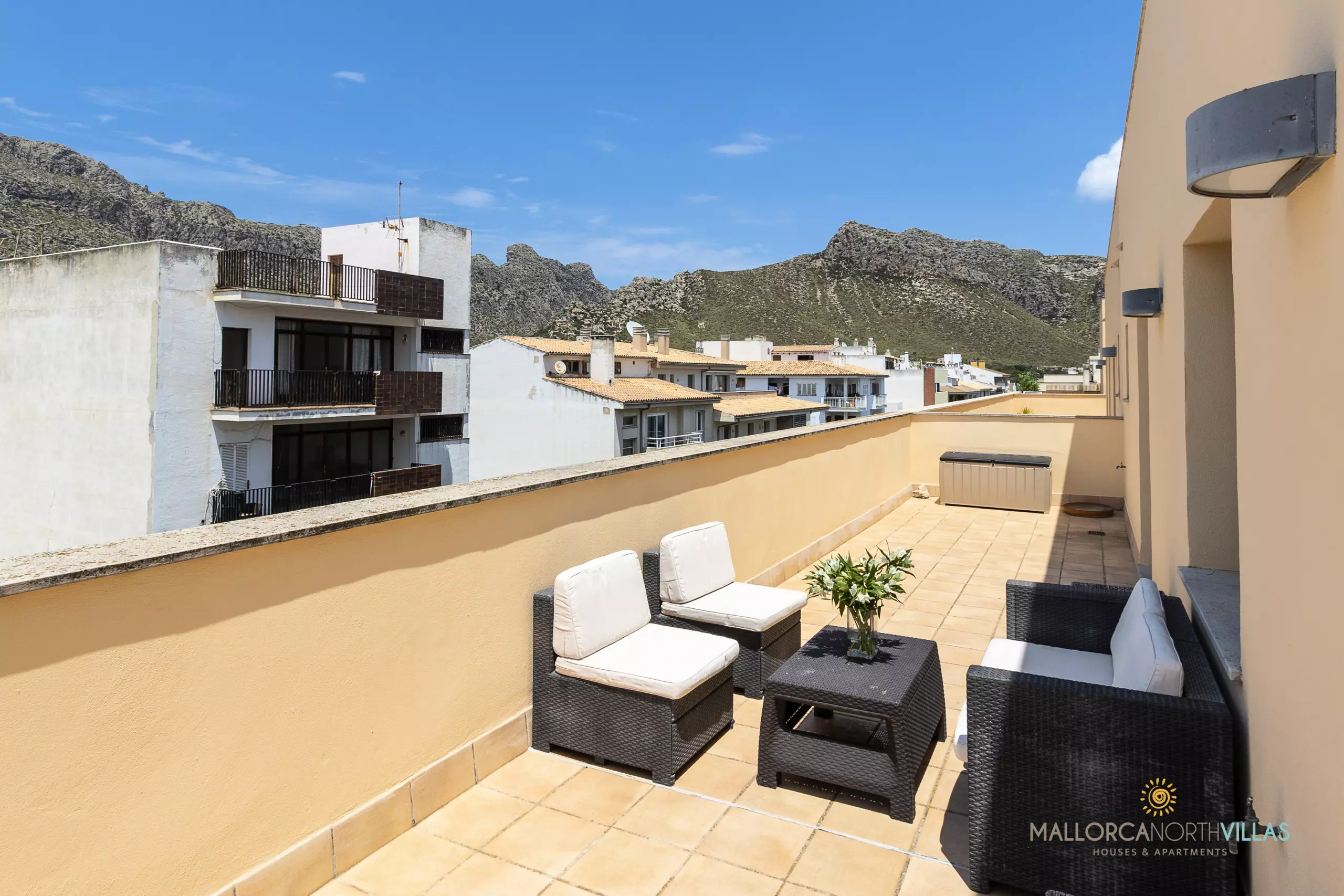 Welcome to your next dream vacation destination! This spectacular penthouse, located in the heart of Puerto de Pollensa, offers an unparalleled experience with views of the majestic mountains and partial views of the Mediterranean Sea. Located just steps from the charming town square, you'll enjoy easy access to the beach, restaurants, and shops.