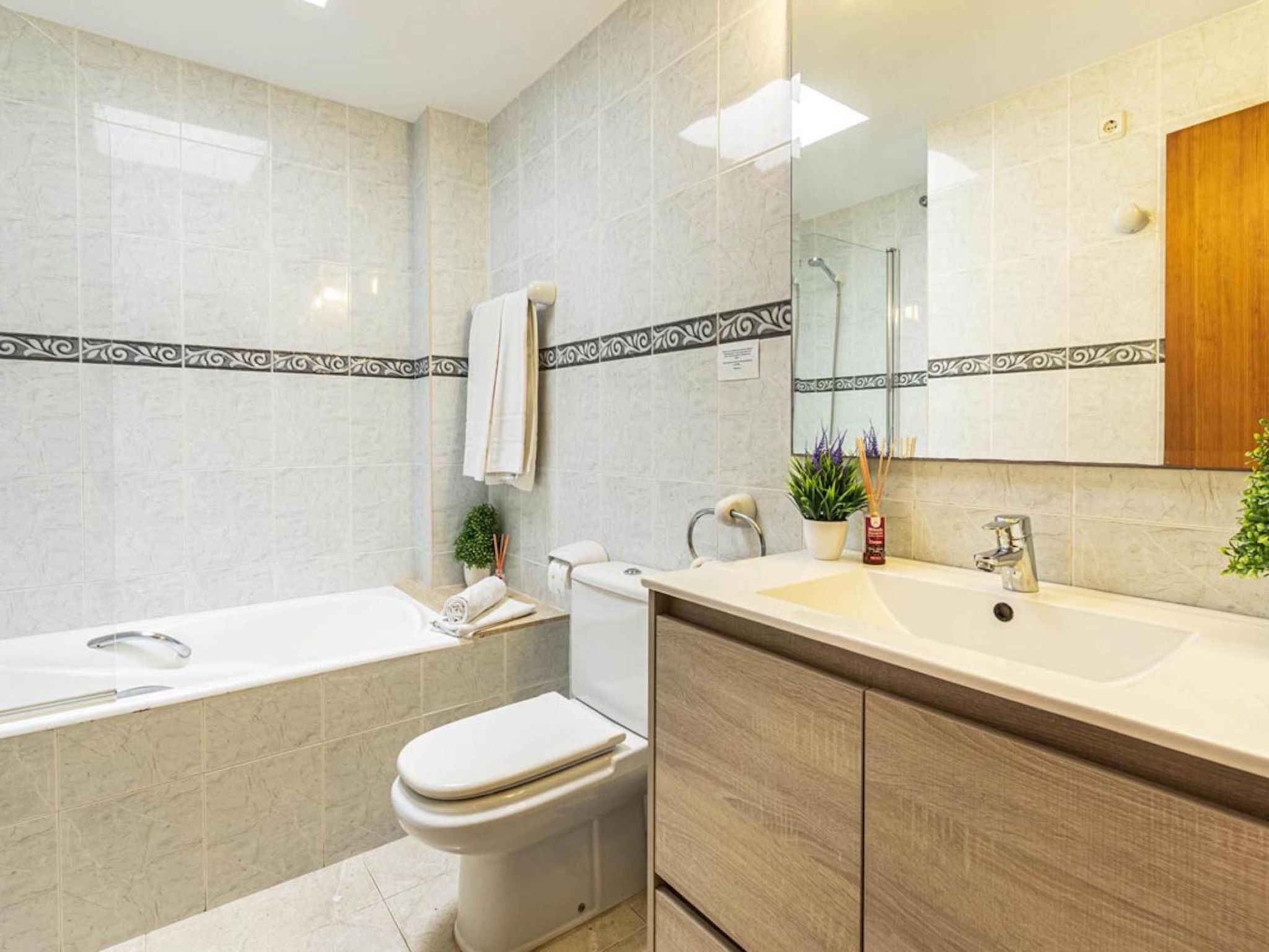 The flat has three bedrooms, one double and two twin. All of them have air conditioning and fitted wardrobes. There are two large bathrooms (one with a shower and the other with a bathtub).