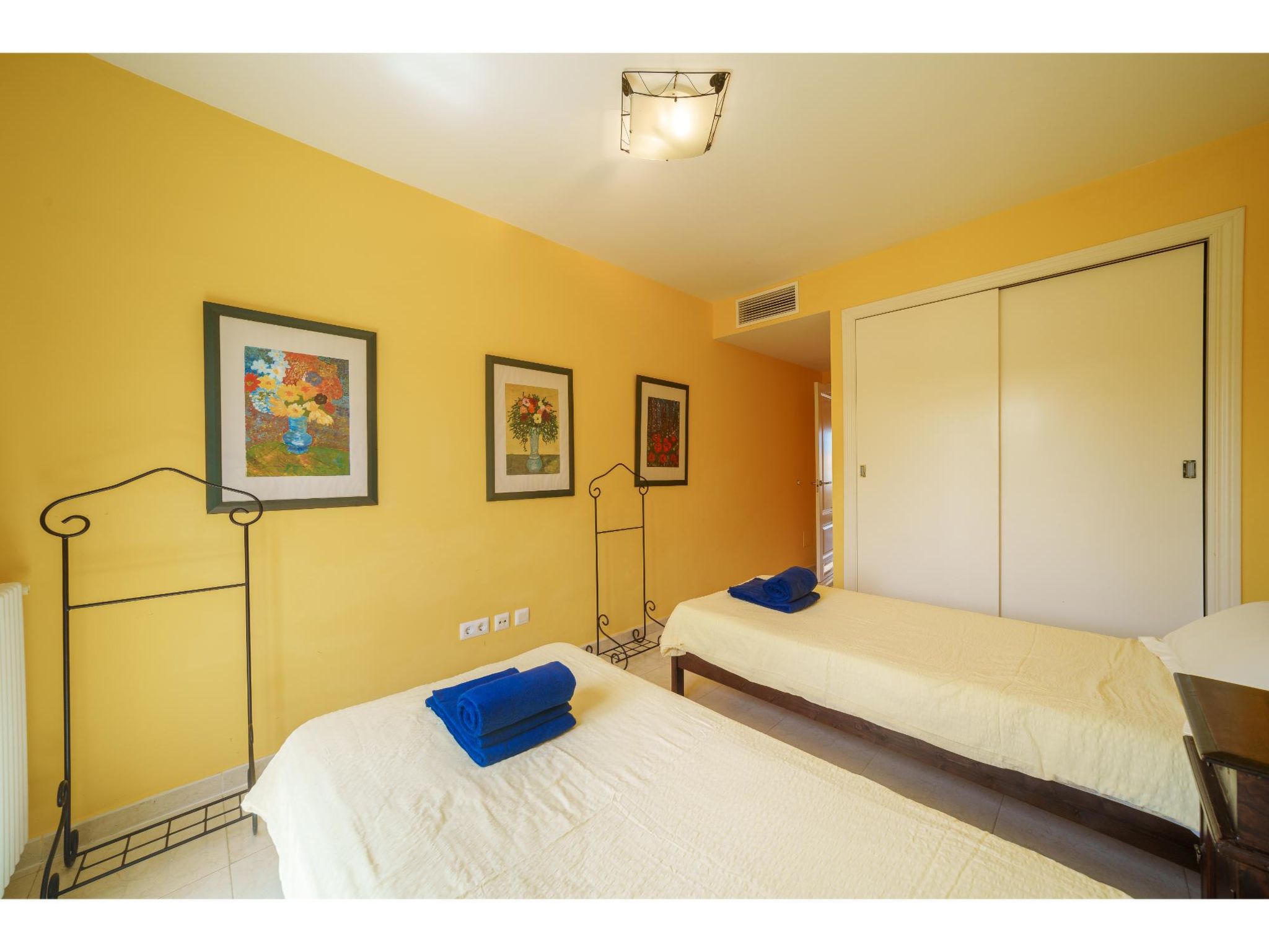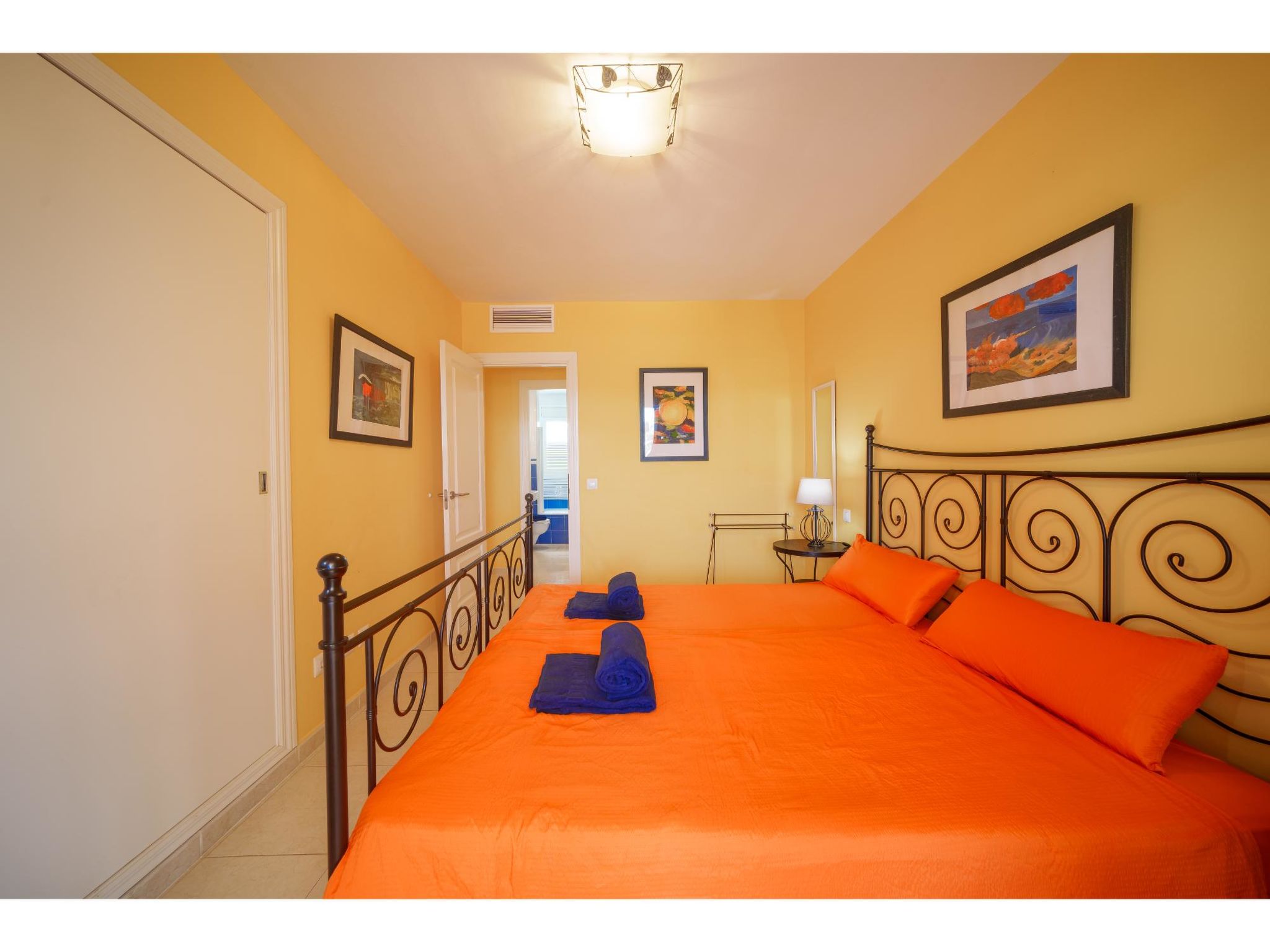"Penthouse Las Palmeras", 4-room penthouse 120 m2 on 1st floor. Modern and tasteful furnishings: living/dining room with dining table, satellite TV, radio, air conditioning and fan. Exit to the terrace. 1 room with 1 double bed, shower/WC and air conditioning. Exit to the terrace. 1 room with 1 double bed and air conditioning. Exit to the terrace. 1 room with 1 double bed and air conditioning. Open kitchen (oven, dishwasher, 4 ceramic glass hob hotplates, toaster, kettle, freezer, electric coffee machine). Bath/WC. Heating. 2 terraces. Terrace furniture, deck chairs. Marvellous view of the sea. Facilities: washing machine, safe, children's high chair, baby cot, hair dryer. Please note: suitable for families. Non-smokers only. Smoke alarm. ETVPL/13615 // Reg. Nr.: ESFCTU00000702300085705700000000000000000ETVPL/136154