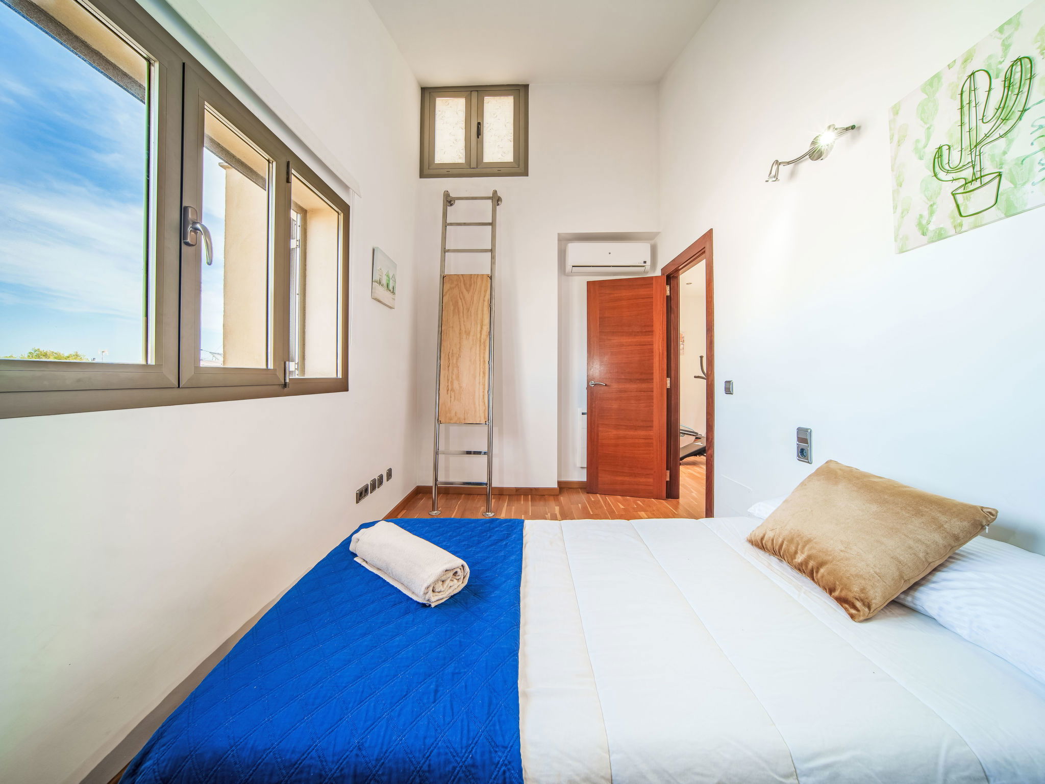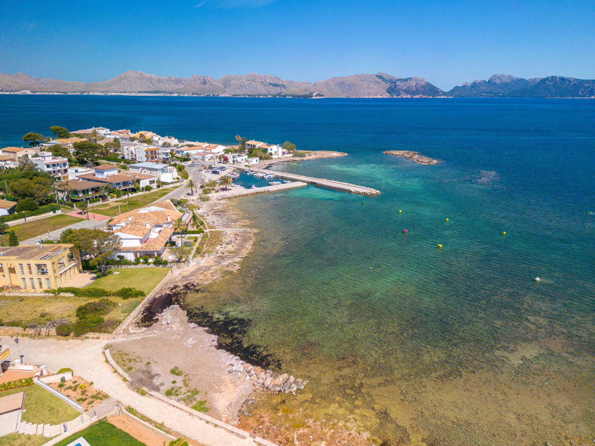 Barcarés 1 km from Alcúdia: Very large, very modern villa "Son Jil", 2 storeys, detached, built in 2005. In a quiet, sunny position residential area (villas), 2 km from the edge of the forest, 60 m from the sea, road to cross. Private: large, well-kept garden with lawn and wildlife garden, swimming pool angular (8 x 4 m, depth 150 - 150 cm, seasonal availability: 01.Jan. - 31.Dec.) with salt-electrolysis pool-cleaning system. Outdoor shower, patio, arbour, pergola, garden furniture, barbecue. In the house: internet access, WiFi, central heating system, air conditioning, washing machine. Public car park, public parking on the road. Shop 1 km, supermarket 1.2 km, shopping centre 45 km, restaurant 160 m, bar, pedestrian zone 50 m, 15 minute walk to the centre, bus stop 1.5 km, ferry 3 km, sandy beach "Platja Es Morer Vermell" 550 m, rocky beach "Platja Es Barcarés" 60 m. Sports harbour 250 m, marina 3 km, golf course (18 hole) 6 km, tennis 2.5 km, riding stable 2.5 km, sports centre 2.5 km, walking paths from the house 1 km, cycle lane 700 m, children's playground 500 m. Nearby attractions: Ermita de la Victoria, Barcarés, Manresa, Sa Marina, Es Malpas. Ciutat Romana de Pollentia, Alcudia. Port d'Alcúdia, Port de Pollença - Pollença, North Beaches. Hiking paths: Sa Talaia, Es Puig de Sant Martí, Serra Tramuntana Pollença. Please note: suitable for families, suitable for seniors. Object suitable for 8 adults groups of teenagers on request only. Airfield 60 km from the property.