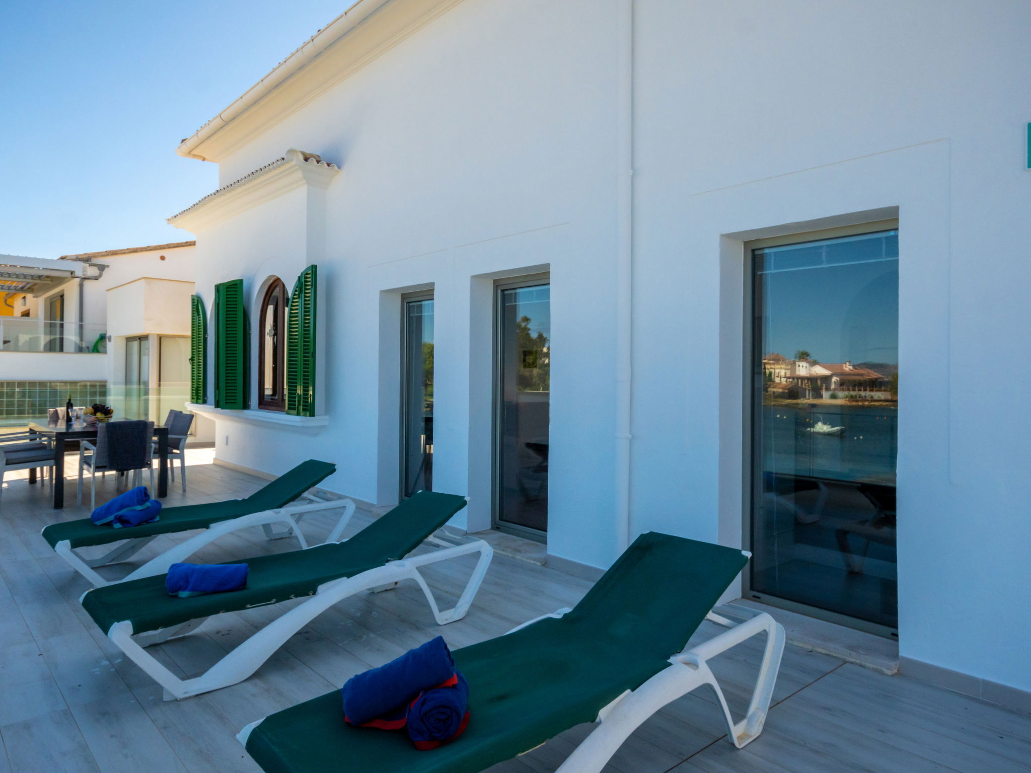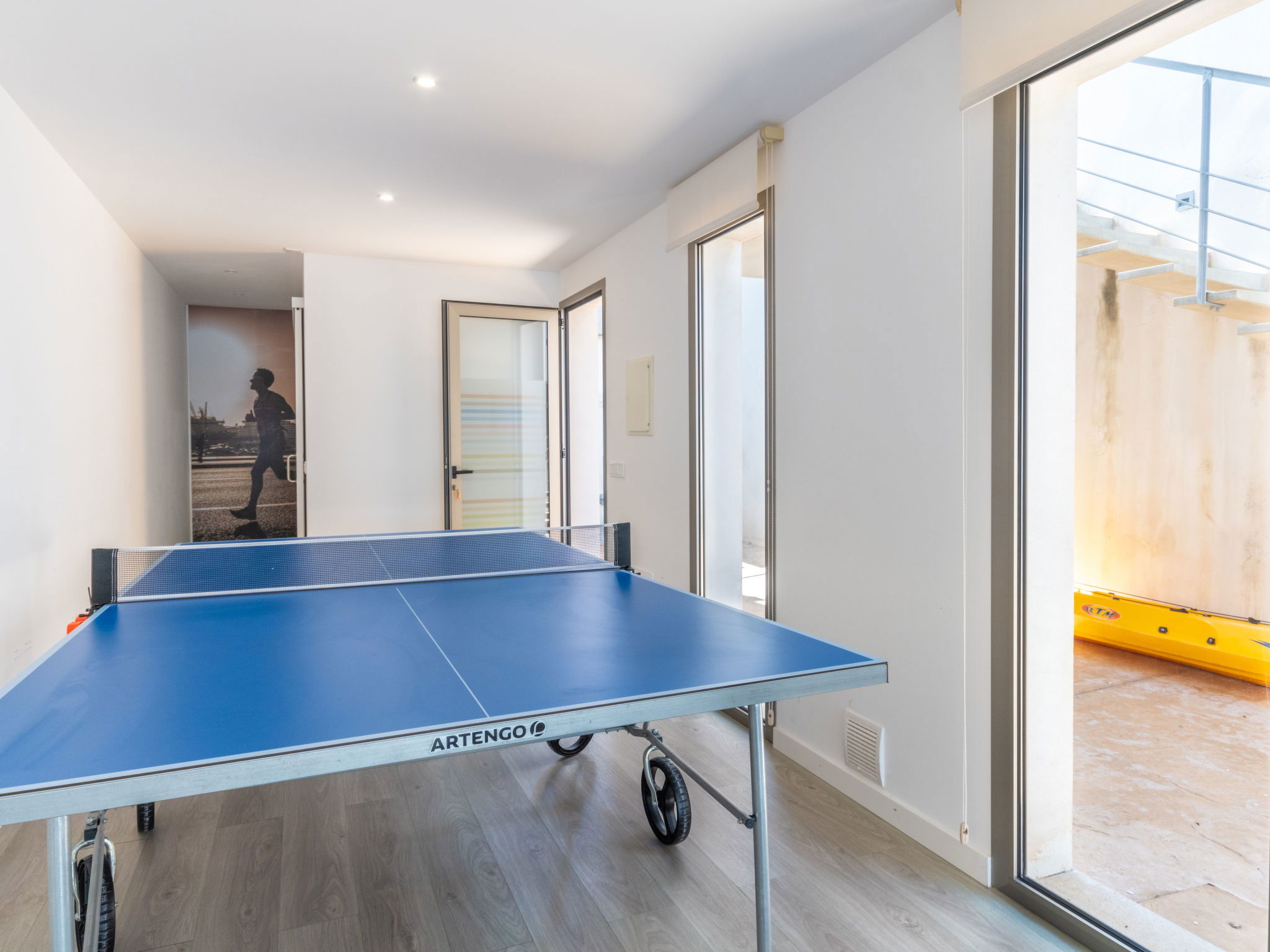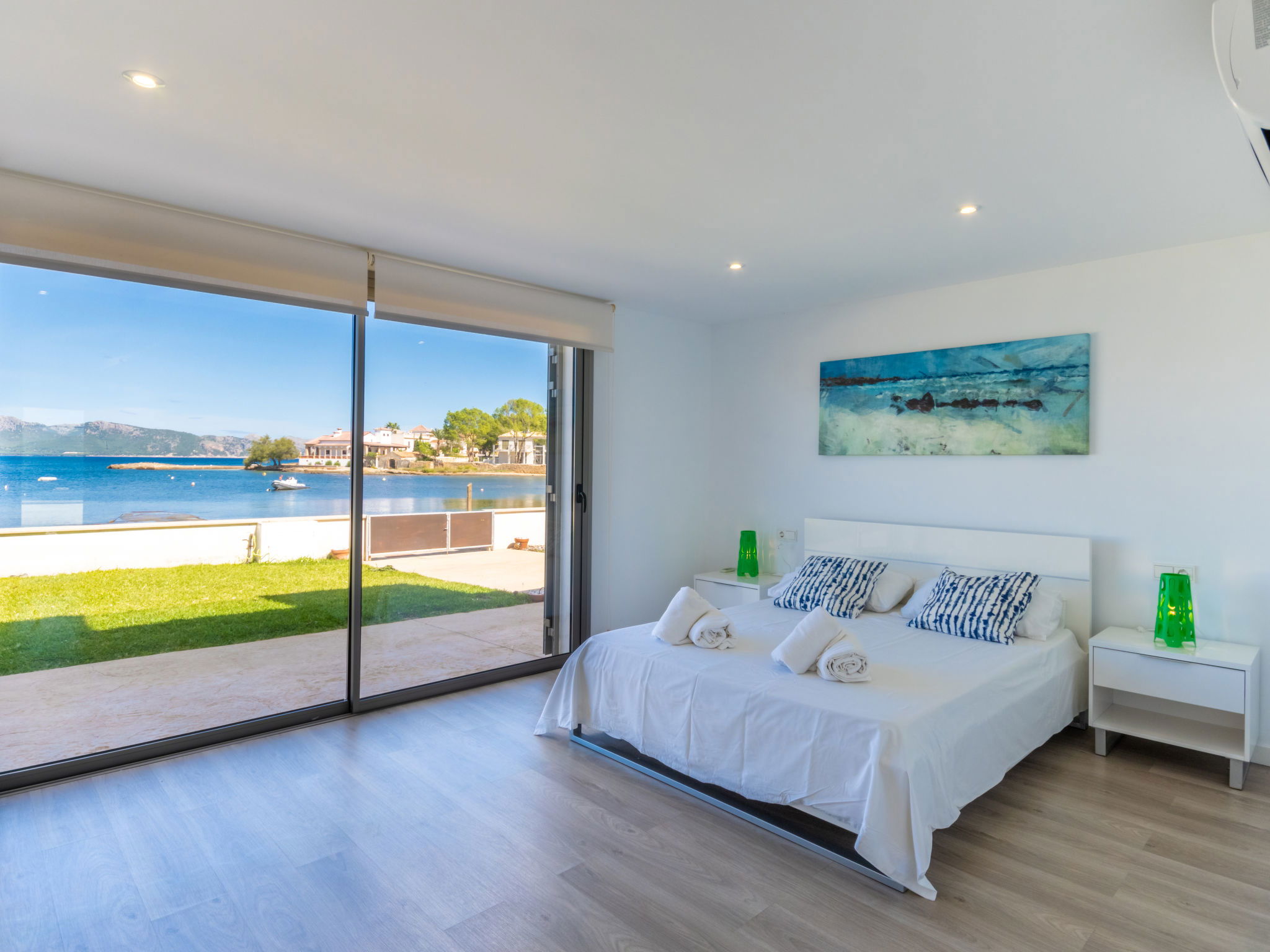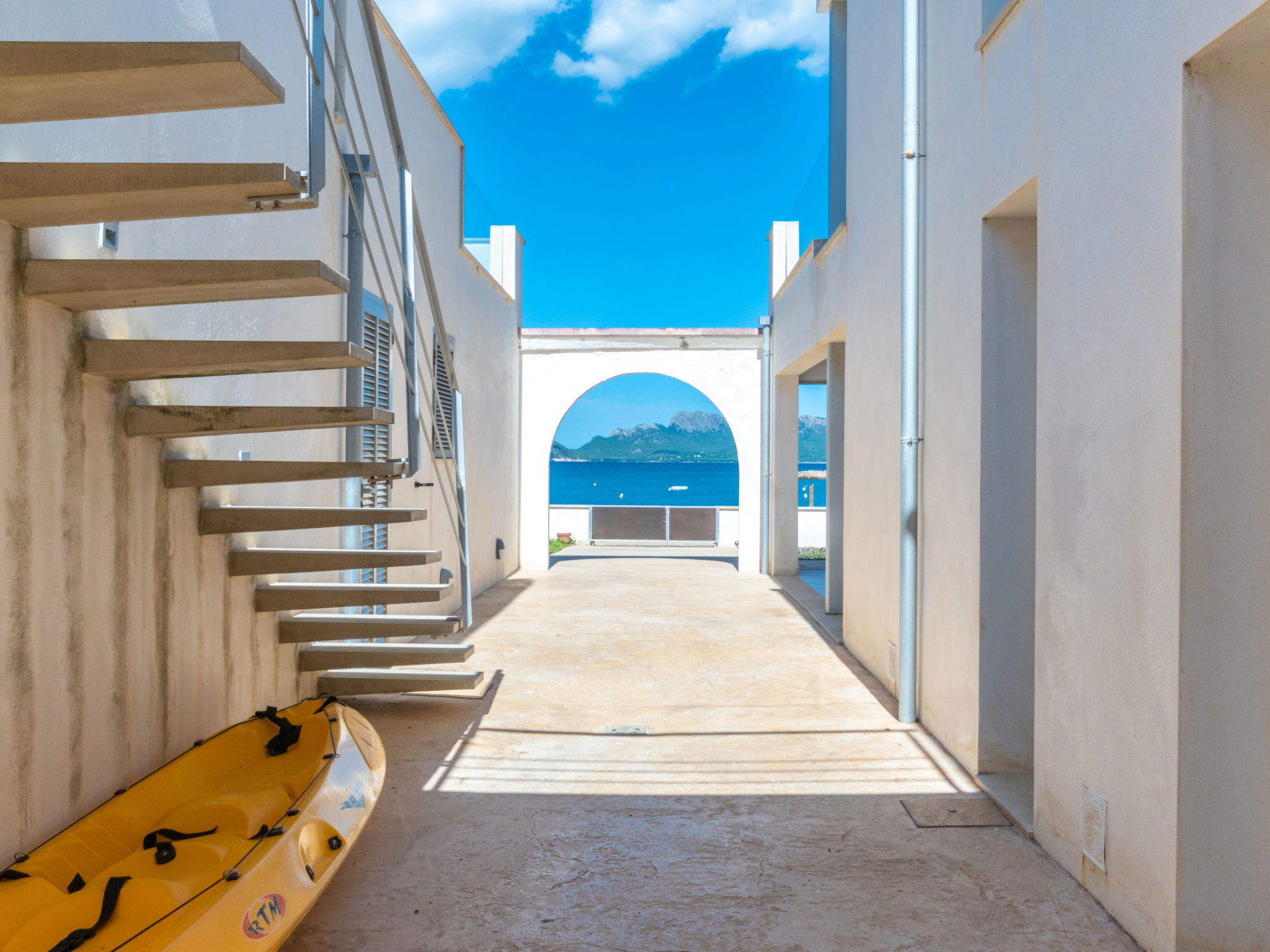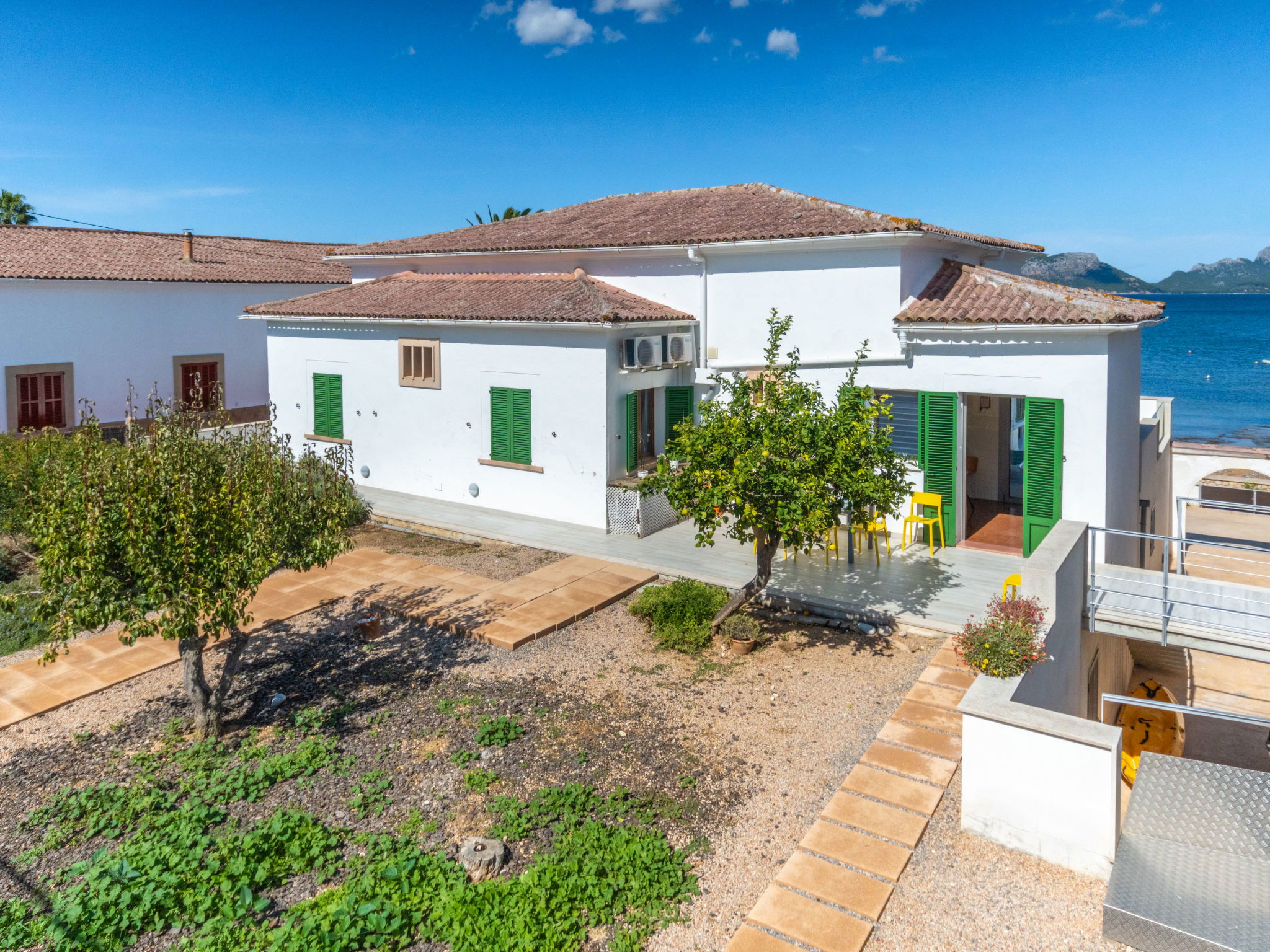 Alcúdia, Es Barcarés: Very child friendly, beautiful villa "Can Verd", 2 storeys. In the district of Es Barcarés, in the resort 4 km from the centre of Alcúdia, in a quiet position residential area (villas), traffic calmed area, 2 km from the edge of the forest, 5 m from the sea, 5 m from the beach, direct access to the beach, in a pedestrian area. Private: beautiful terraced garden with lawn, natural garden. Outdoor shower, table tennis, patio, arbour, pergola, garden furniture, barbecue. In the house: lounge, internet access, WiFi, fitness room, table tennis, playroom, storage room for bicycles, air conditioning, laundry, washing machine, tumble dryer, drying room. Parking, public car park, public parking on the road. Shop 2 km, grocery 700 m, supermarket 2 km, restaurant 50 m, bar, bakery 2 km, café, bicycle rental 2 km, 25 minute walk to the centre, bus stop 700 m, sandy beach 700 m, rocky beach 5 m, diving center 4 km, outdoor swimming pool 6 km, swimming bay 150 m, public bathing area 55 m. Sports harbour 6 km, marina 5 km, golf course (18 hole) 5 km, surf school 4 km, sailing school 6 km, tennis 5 km, riding stable 6 km, sports centre 6 km, children's playground 700 m. Please note: suitable for families, suitable for seniors. Object suitable for 10 adults groups of teenagers on request only. The owner does not accept any youth groups. Neighbourhood highly sensitive to noise. Quietness and good behaviour expected.
