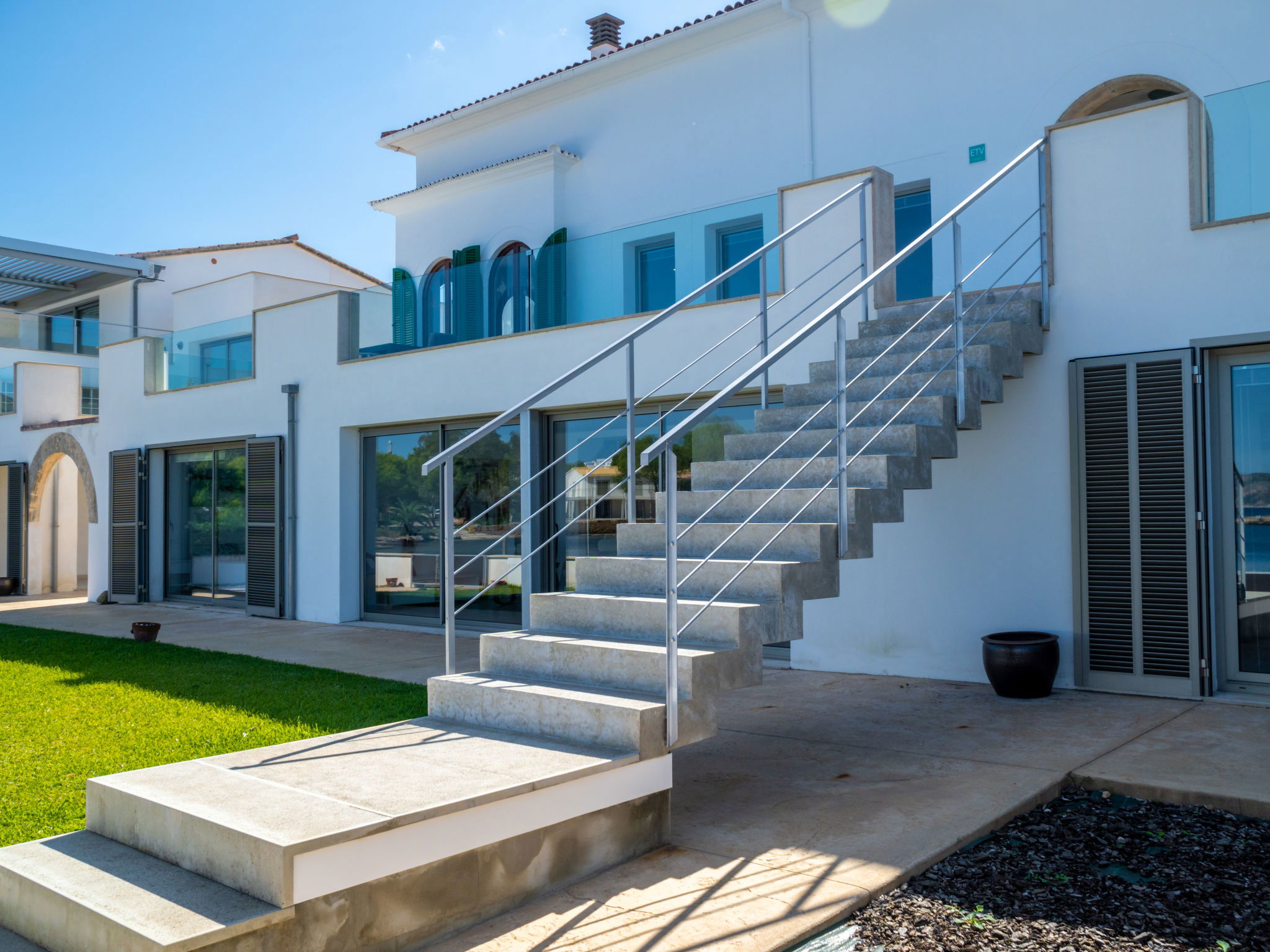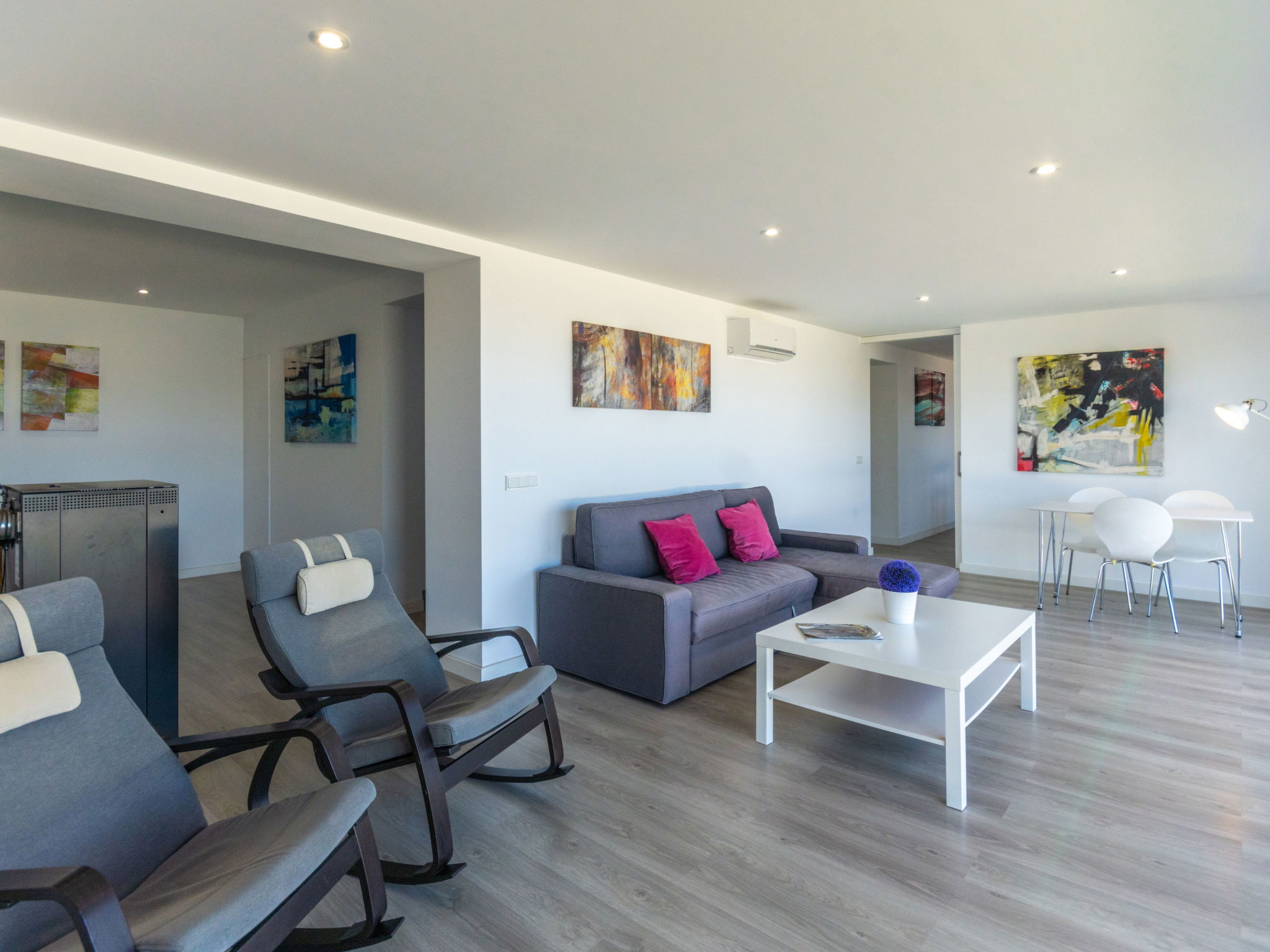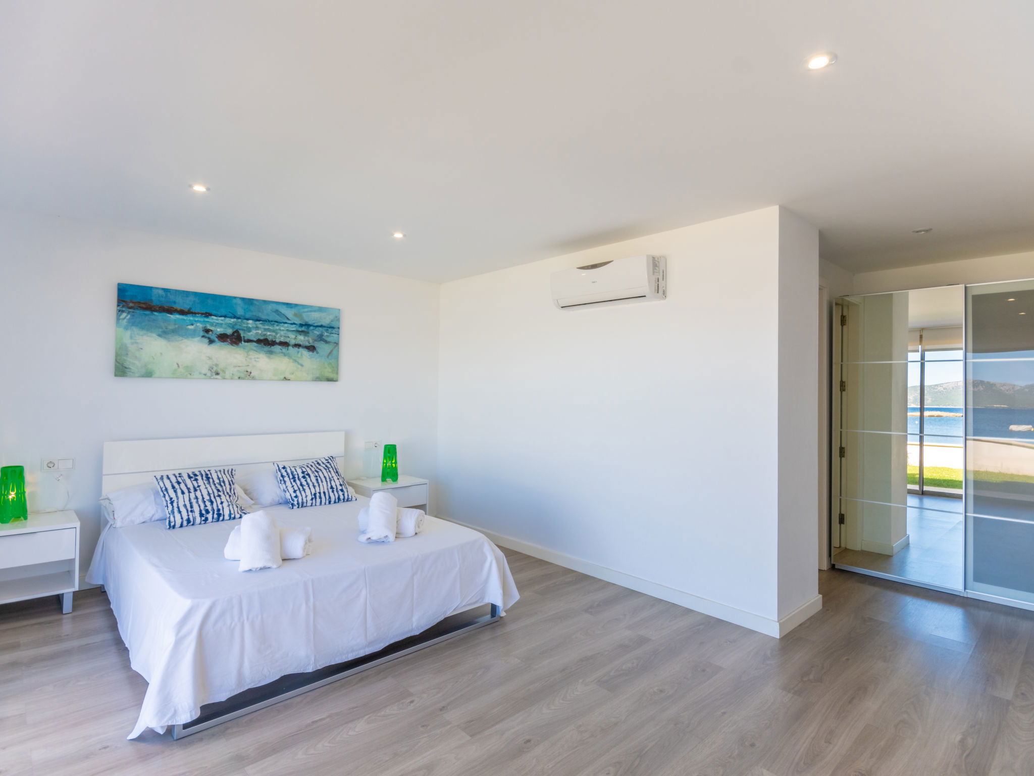 "Can Verd", 9-room villa 300 m2 on 2 levels. Object suitable for 10 adults. Fully renovated in 2016, very comfortable and cosy furnishings: living/dining room with panoramic window with dining table, satellite TV, digital TV, flat screen, air conditioning and forced-air heating. Exit to the terrace. 1 large double bedroom with curtain with 1 french bed (135 cm, length 190 cm). 1 double bedroom with 2 beds (90 cm, length 200 cm), air conditioning and forced-air heating. 1 double bedroom with 2 beds (90 cm, length 200 cm). 1 double bedroom with sliding door curtain panoramic window with 1 sofabed and 1 french bed (150 cm, length 200 cm), bath/shower/WC, TV, satellite TV, air conditioning and forced-air heating. Exit to the terrace. Kitchen 15 m2 (4 hot plates, oven, dishwasher, microwave, freezer, electric coffee machine) with dining table. Exit to the terrace. 2 Baths/showers/WC. On the lower ground floor: lounge with 1 sofabed, dining table and air conditioning. Exit to the patio. Office with panoramic window. Exit to the patio. 1 double bedroom with 1 french bed (150 cm, length 200 cm), bath/shower/WC and air conditioning. Exit to the patio. Bath/shower/WC. Large patio, porch. Terrace furniture, balcony furniture, barbecue, deck chairs, covered balcony, sitting area. Very beautiful panoramic view of the sea, the mountains and the bay. Facilities: washing machine, dryer, safe, iron, children's high chair, baby cot for up to 2 year olds, hair dryer. Internet (WiFi, free). At the house. Please note: suitable for families one double bedroom is outside the apartment. Fire extinguisher. ETV5536 // Reg. Nr.: ESFCTU0000704300008406200000000000000000000ETV/55365