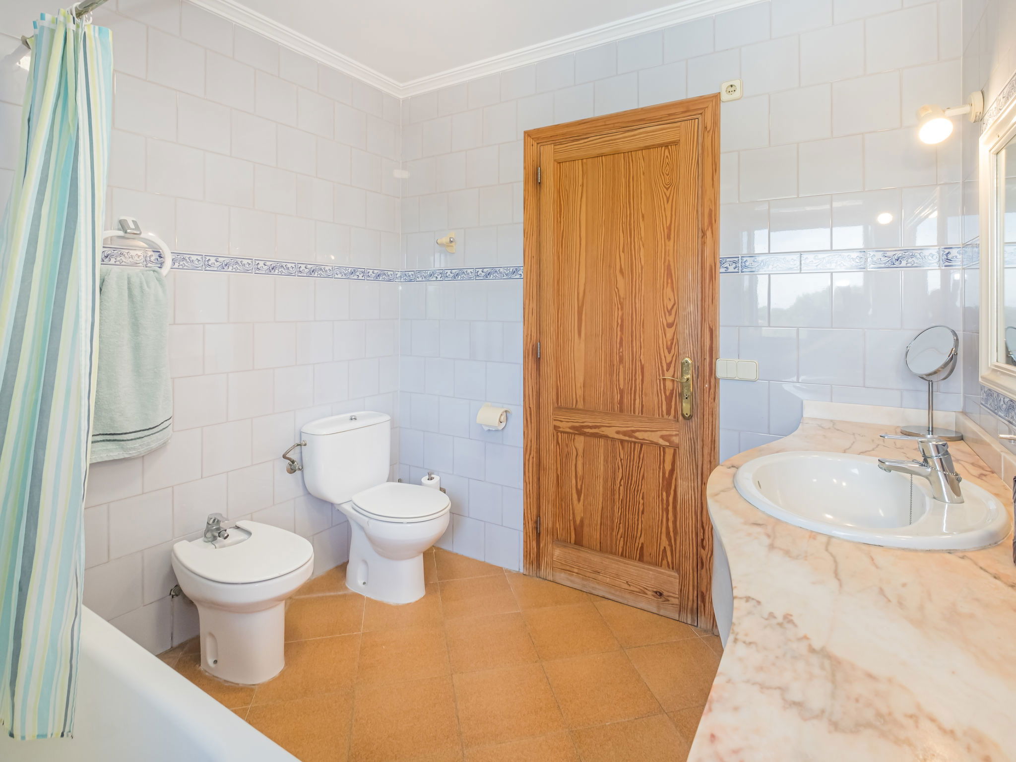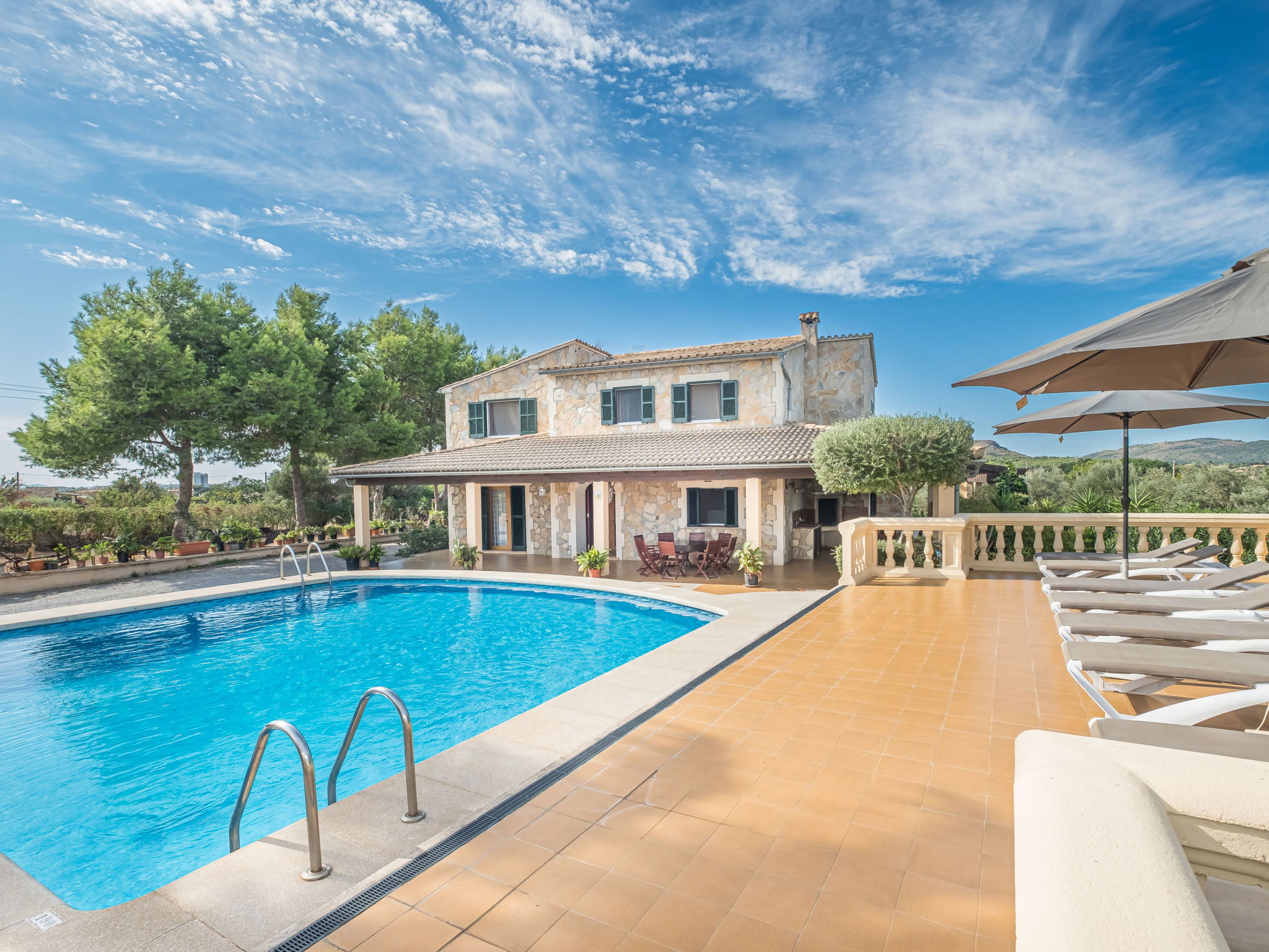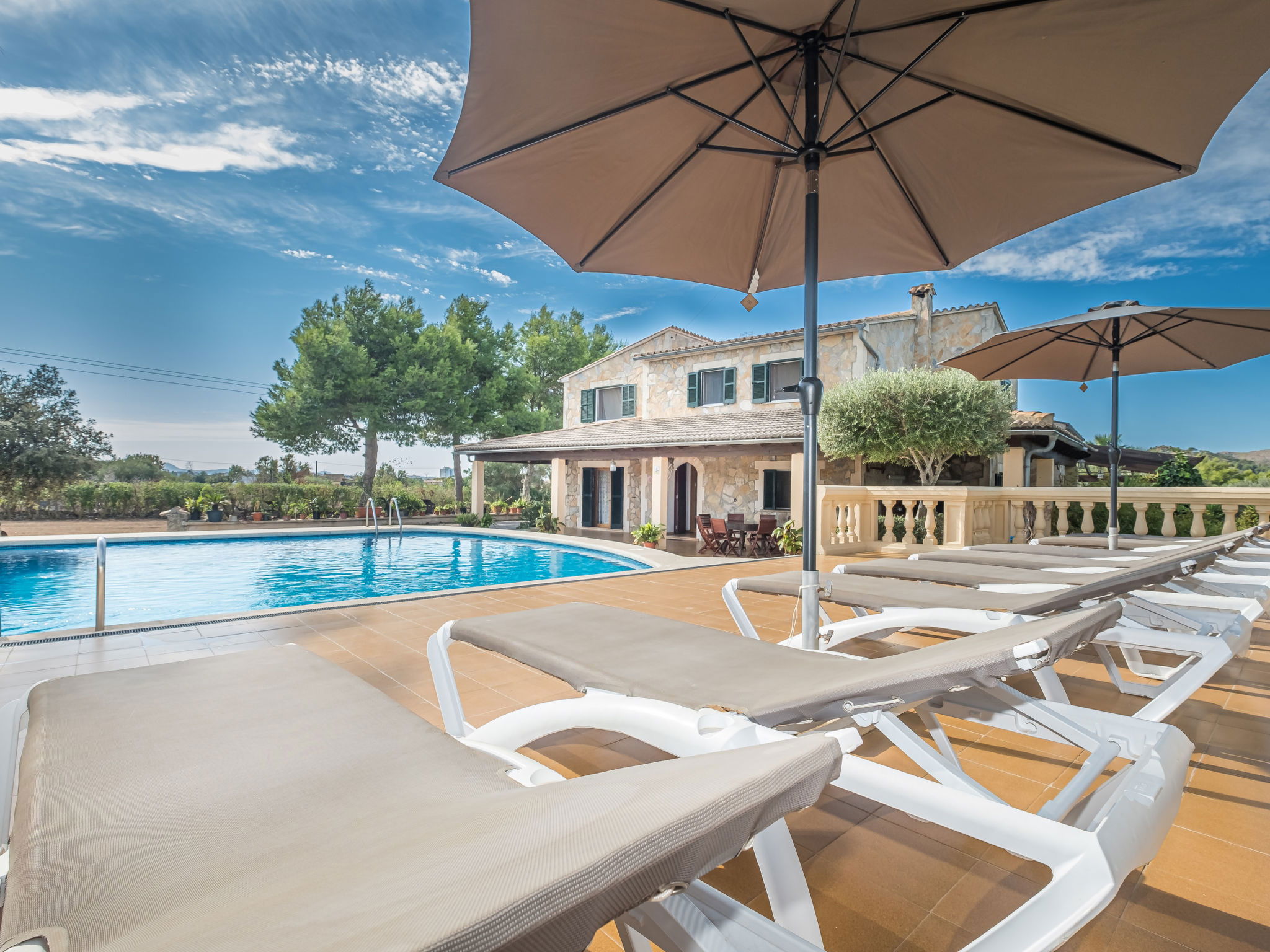 Prat de na Fideu 1 km from Alcudia: Large, beautiful, comfortable villa "Ca na Fideu", surrounded by trees and fields. On the outskirts, 800 m from the centre of Alcudia, in a quiet, sunny position, 1 km from the edge of the forest, 1 km from the sea, 1 km from the beach. Private: well-kept garden with lawn and trees, swimming pool angular (7 x 8 m, depth 1 - depth 2 cm, seasonal availability: 01.Jan. - 31.Dec.). Outdoor shower, terrace, garden furniture, barbecue, pool maintenance by the owner/gardener parking at the house on the premises. Shop 1 km, grocery 1 km, supermarket 1 km, restaurant 1 km, bar 700 m, bakery 1 km, café 800 m, pedestrian zone 1 km, bicycle rental 2 km, 8 minute walk to the centre, bus stop "Alcudia Ses Forques" 800 m, railway station "Sa Pobla" 12 km, ferry "Puerto de Alcudia" 3 km, sandy beach "Bahia de Alcudia" 3 km, shingle beach "Barcarés" 2 km, rocky beach "Alcanada" 4 km, diving center 5 km. Sports harbour 3 km, marina 3 km, golf course (18 hole) 4 km, surf school 3 km, sailing school 3 km, tennis 6 km, riding stable 4 km, sports centre 2 km, walking paths from the house 2 km, cycle lane 200 m. Nearby attractions: Playa de Formentor 18 km, Faro de Formentor 27 km, Monasterio de Lluc 32 km, Cuevas de Campanet 17 km, La Victoria 8 km. Hiking paths: Ruta des Coll Baix 6 km. Please note: suitable for families, suitable for seniors. The owner does not accept any groups. The owner does not accept any youth groups.