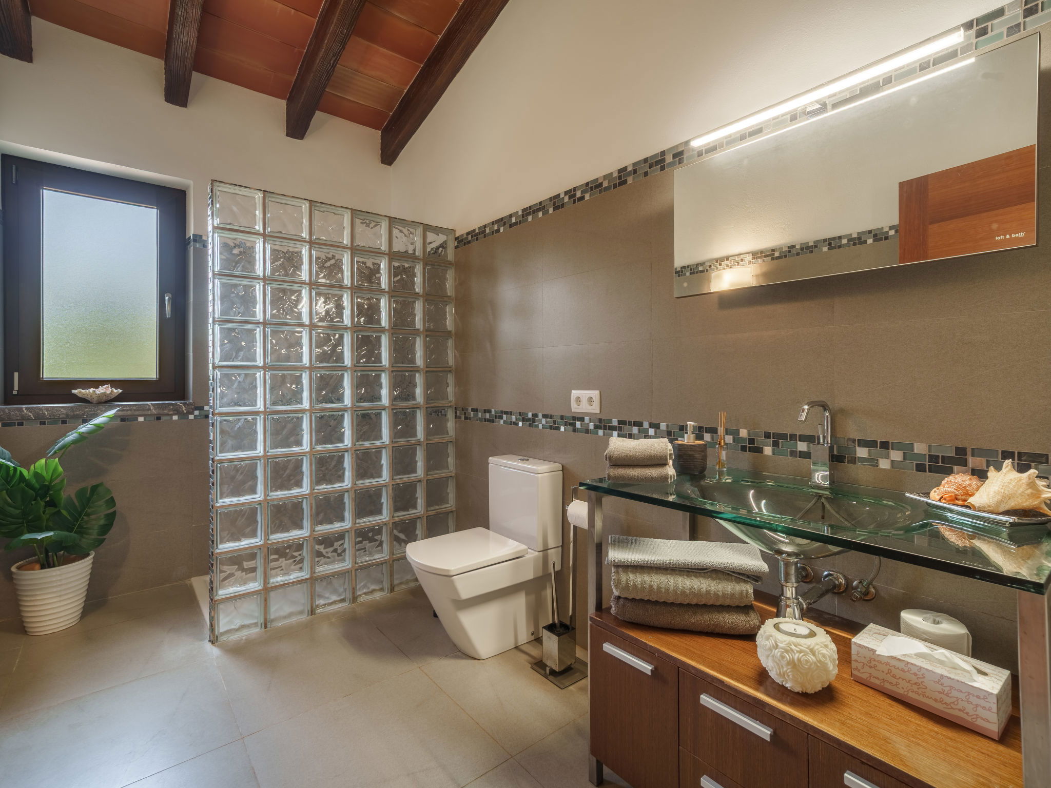 3 km from Artá: Large, modern, beautiful farm estate "Bellpuig", renovated, surrounded by trees and fields. Outside the resort, 3.5 km from the centre of Artà, in a quiet, sunny position, 11 km from the sea, 11 km from the beach, in the countryside. Private: natural state property (fenced), beautiful, well-kept garden with wildlife garden, swimming pool angular (10 x 4 m, depth 140 - 160 cm, seasonal availability: 01.Jan. - 31.Dec.). Outdoor shower, patio, arbour, pergola, garden furniture, barbecue, pool maintenance by the owner/gardener. In the house: internet access, WiFi, storage room for bicycles, washing machine. Parking at the house on the premises. Shop 3.5 km, supermarket 3.8 km, restaurant 3.4 km, bar 3.4 km, bakery 3.6 km, bicycle rental 3.8 km, 48 minute walk to the centre, bus stop "Artà" 3 km, railway station "Artà" 22 km, sandy beach "Cala Bona,Sa Marjal,Cala Millo" 12 km. Sports harbour 12.5 km, golf course (18 hole) 8.3 km, tennis 3.5 km, walking paths from the house 2 km, cycle lane 150 m. Nearby attractions: Artá, Son Servera, Capdepera, St Lorenzo, Artá Local Market (Tuesday 9-14h) 4.7 km, Colonya de Sant Pere, Betlem. Hiking paths: Ermita de Betlem, Parc Natural de Llevant. Please note: car recommended. Suitable for families, suitable for seniors. Object suitable for 4 adults. The owner does not accept any youth groups. Animals in the neighbourhood. Airfield 65 km from the property.