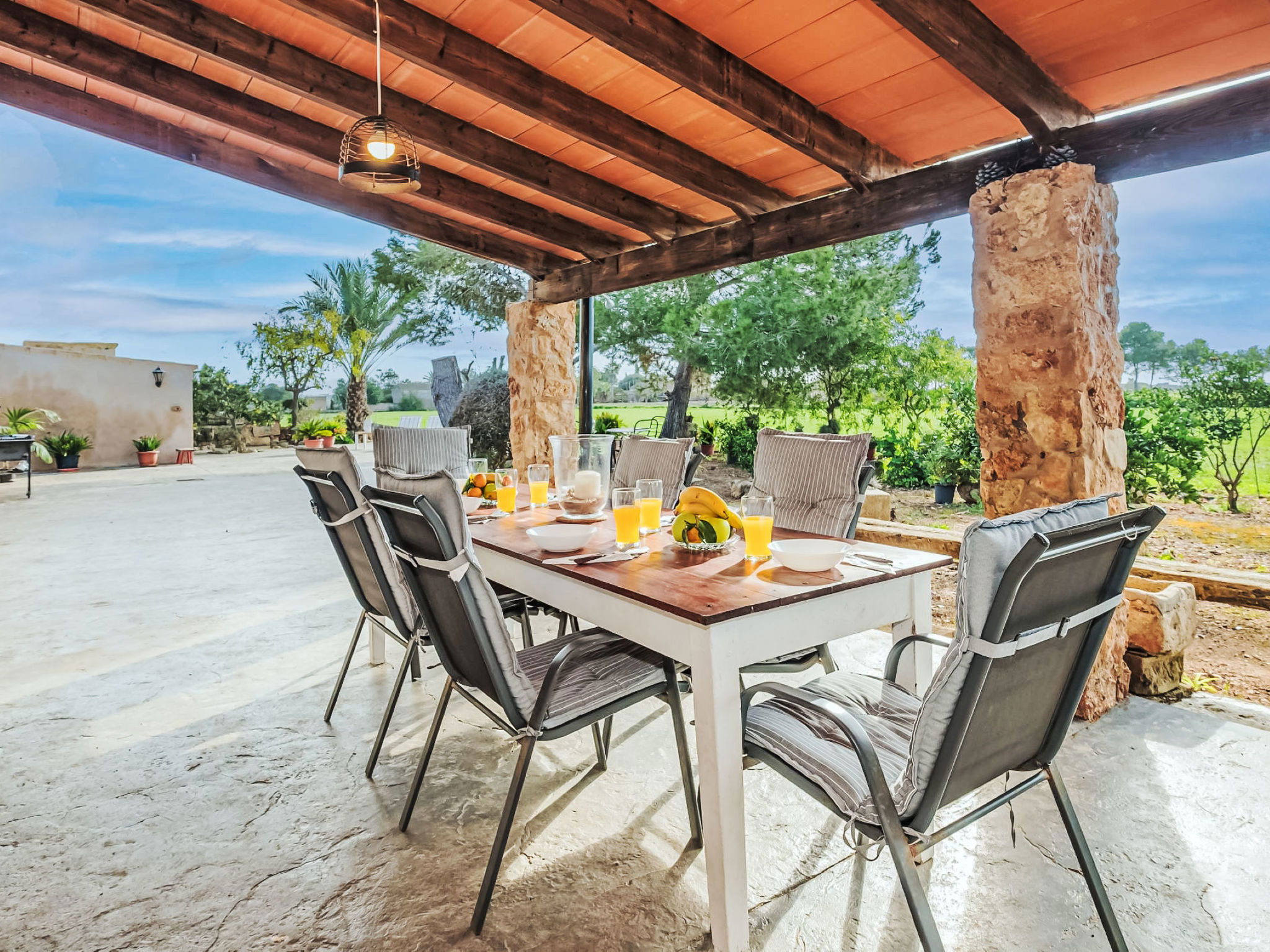 Ca na Brila 1 km from Campos: Child friendly, cosy, comfortable house "Finca Ca na Brila", surrounded by meadows and fields. 1 km from the edge of the forest, 12 km from the sea, in the countryside. Private: property, natural garden. Outdoor shower, patio, pergola, garden furniture, barbecue. In the house: WiFi, air conditioning, washing machine. Parking at the house. Shop 1.3 km, grocery 1.3 km, supermarket 1.3 km, shopping centre 1.5 km, restaurant 1.3 km, bar 1.4 km, bakery 1.4 km, café 1.3 km, pedestrian zone 1.6 km, bicycle rental 1.3 km, bus stop "Campos" 2 km, sandy beach "Ses Salines" 12 km. Sports harbour 13 km, marina 13 km, golf course (18 hole) 15 km, tennis 1.3 km, indoor tennis centre 1.5 km, sports centre 1.5 km, cycle lane 1.3 km. Nearby attractions: Artestruz Mallorca 3 km, Platja d'es Trenc 13 km, Plauya de sa Ràpita 13 km, Ses covetes 14 km. Please note: car recommended. Baby equipment on request (included), childminding (extra). Object suitable for 4 adults. The owner does not accept any youth groups. Loading and unloading of baggage is possible at the holiday house. Motorway close by 3 km from the property. Main road close by 1.3 km from the property. Nightclub/disco 12 km from the property. Airfield 30 km from the property. Neighbourhood highly sensitive to noise. Quietness and good behaviour expected.