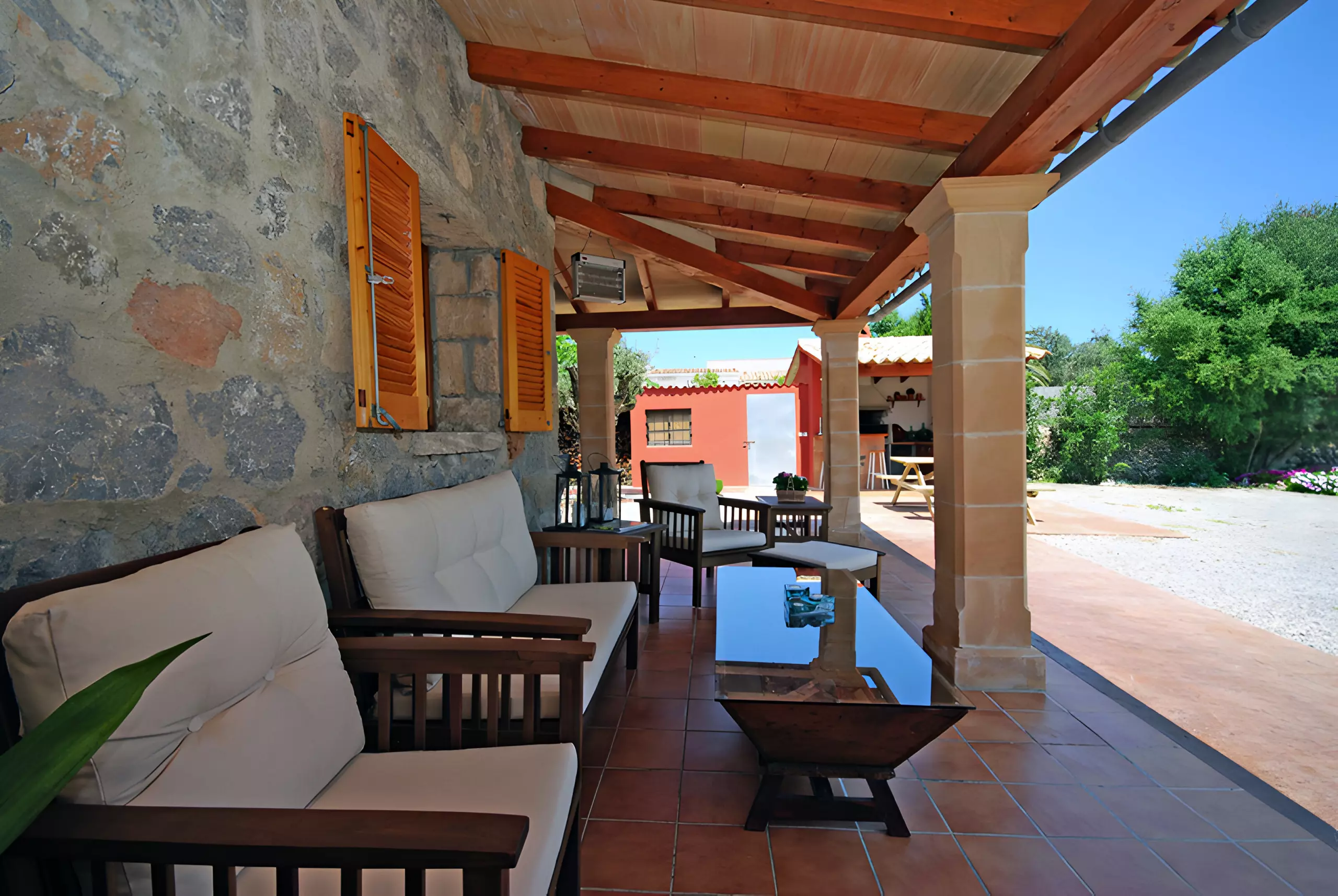 There's plenty to discover in the elaborately designed outdoor area, starting with the beautiful and varied seating areas on the spacious terrace in front of the finca. Various garden furniture is provided, naturally in the refreshing shade. Another seating area with high-quality furniture can be found under the garden porch. Next to the house is a fully equipped outdoor kitchen for professional barbecue evenings and cozy barbecues.