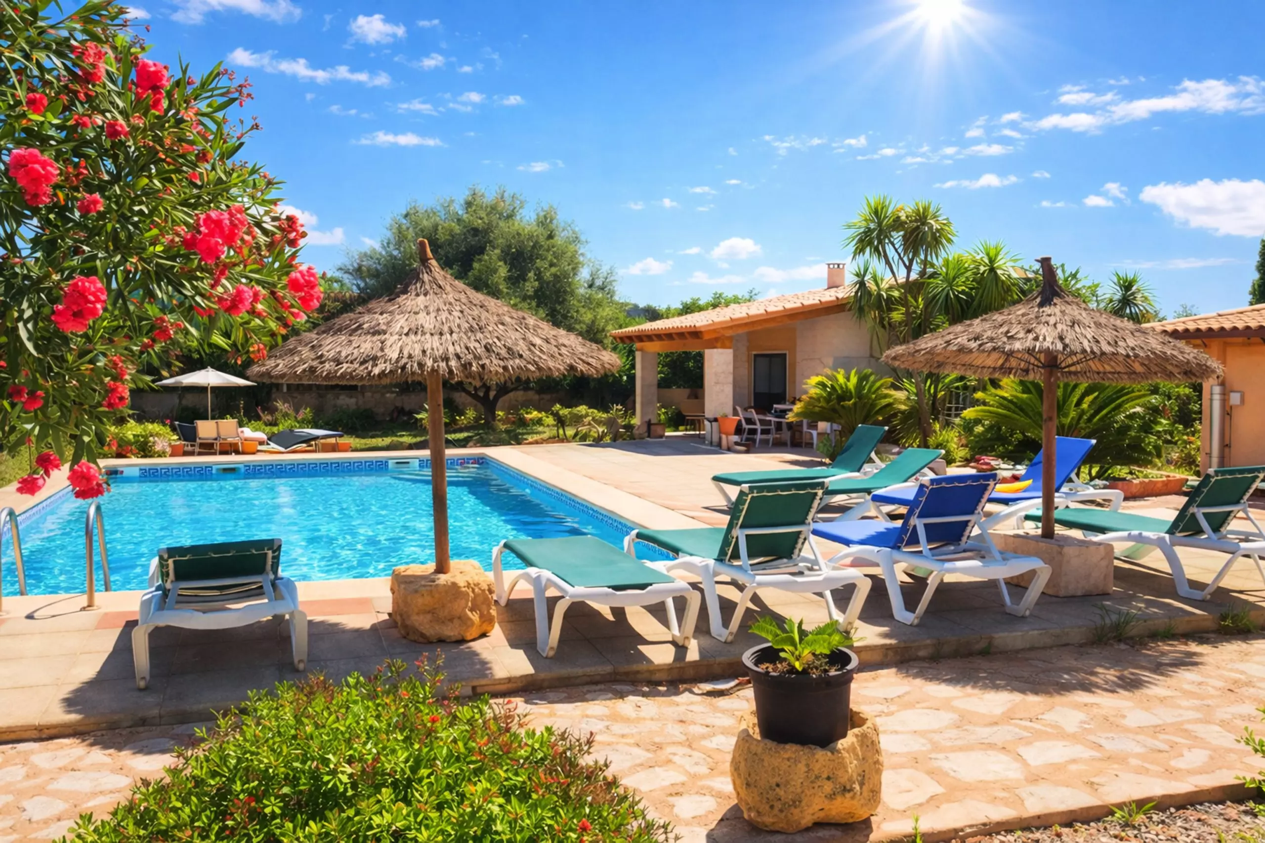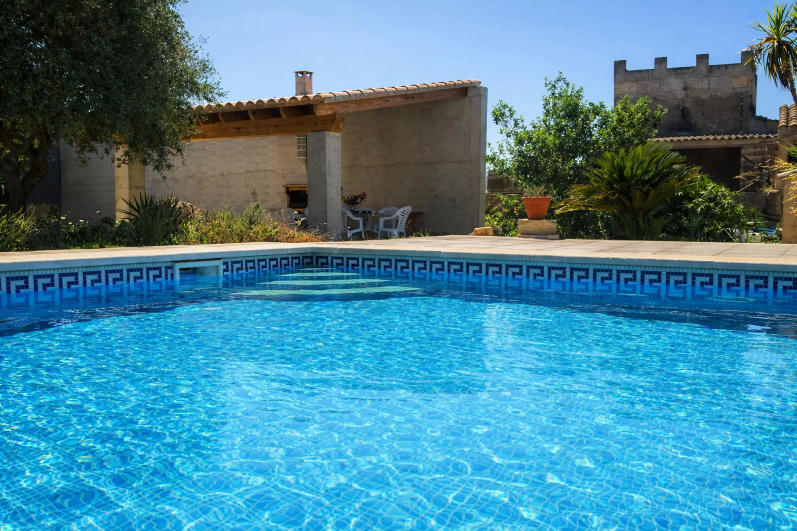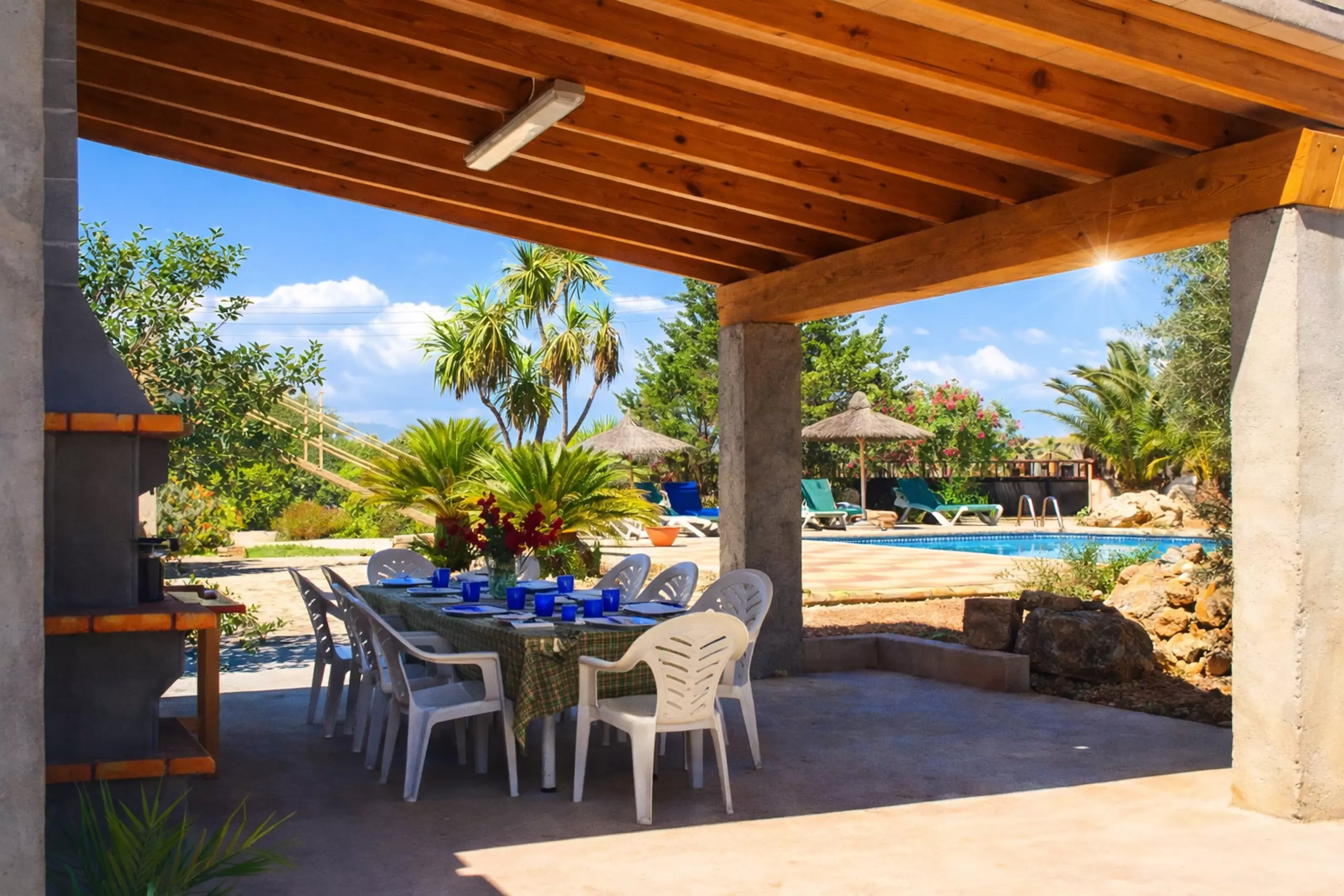 The outdoor areas are very well-kept, with a garden, a barbecue area and tables for outdoor dining. A 10x5m swimming pool will make