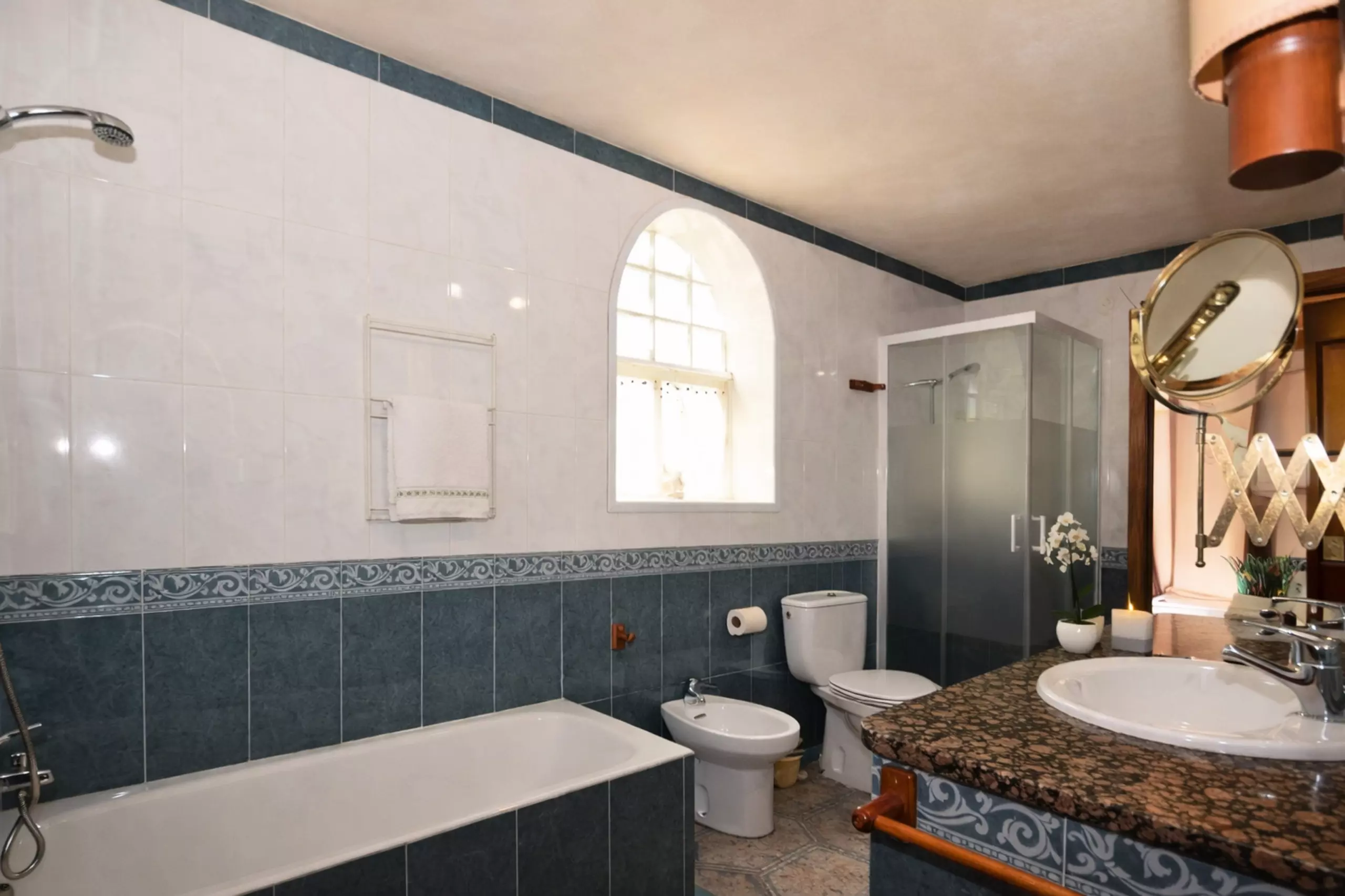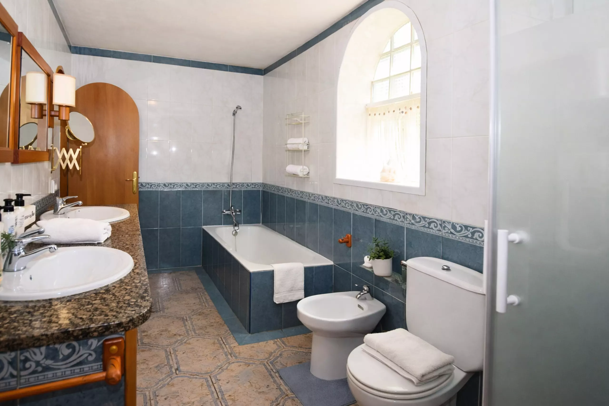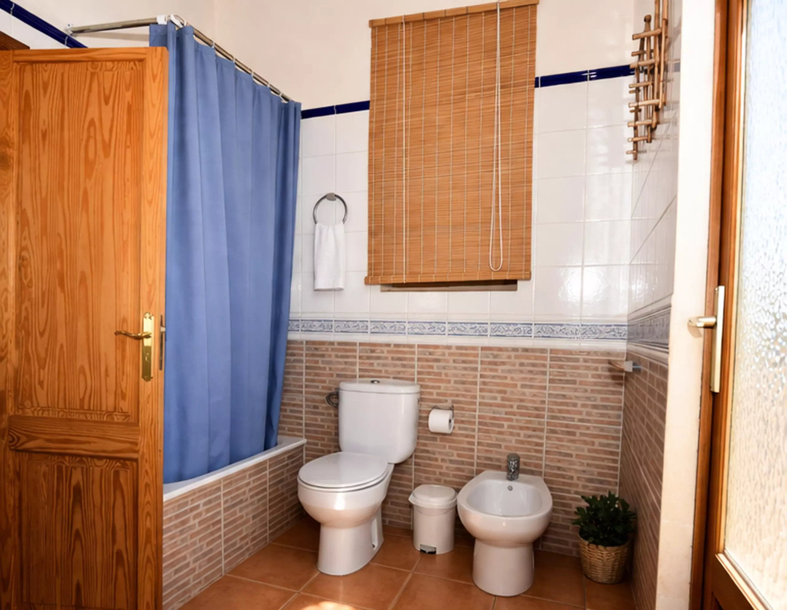Five bedrooms: 2 with double bed, three others with 2 single beds and three bathrooms: two with bathtub and one with shower, complete the relaxation areas.