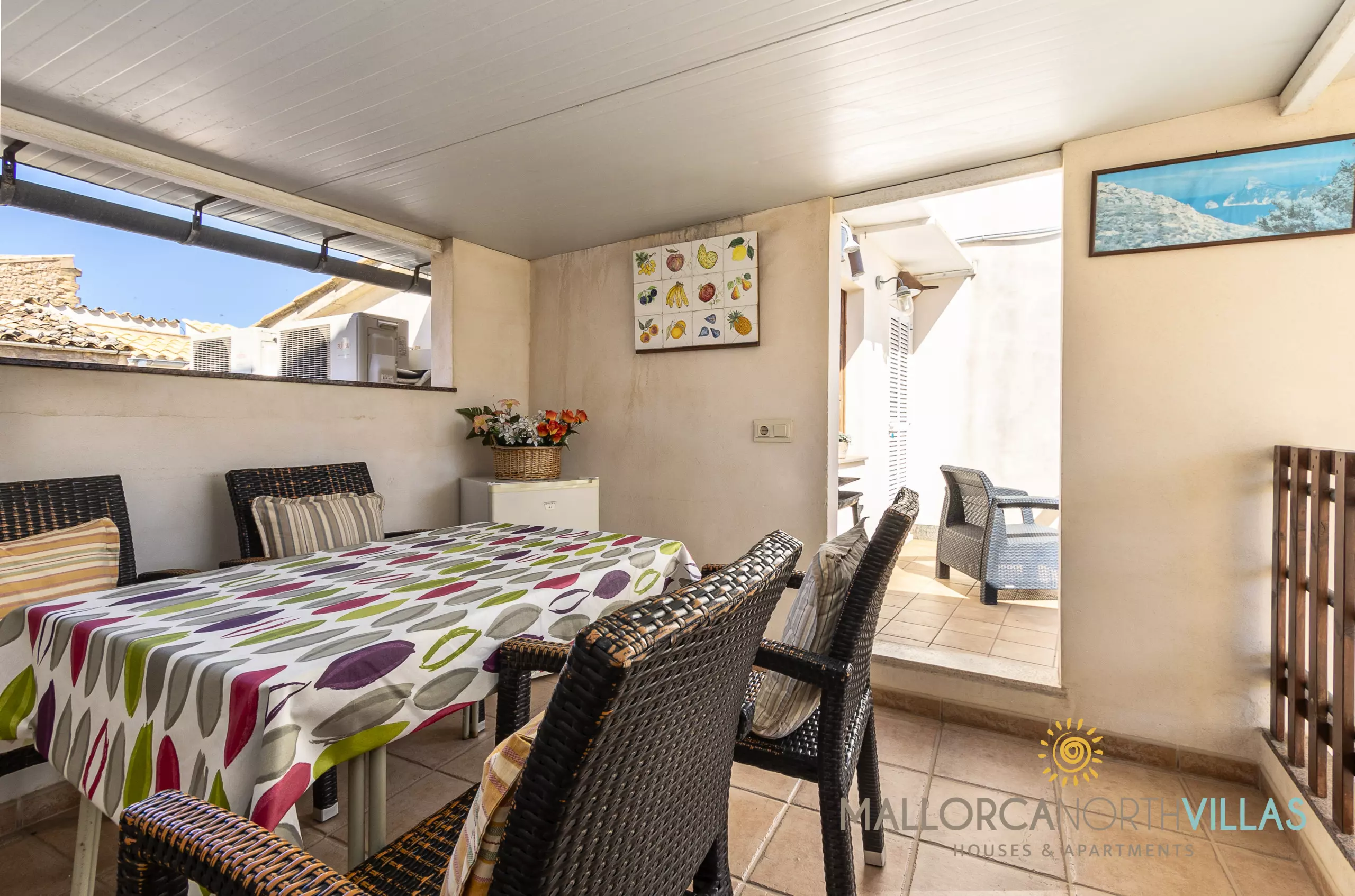 On the floor you will find 3 double bedrooms and a bathroom with a large shower. There is air conditioning (hot/cold) in all rooms, the living room and the dining room to protect you from the high summer temperatures.