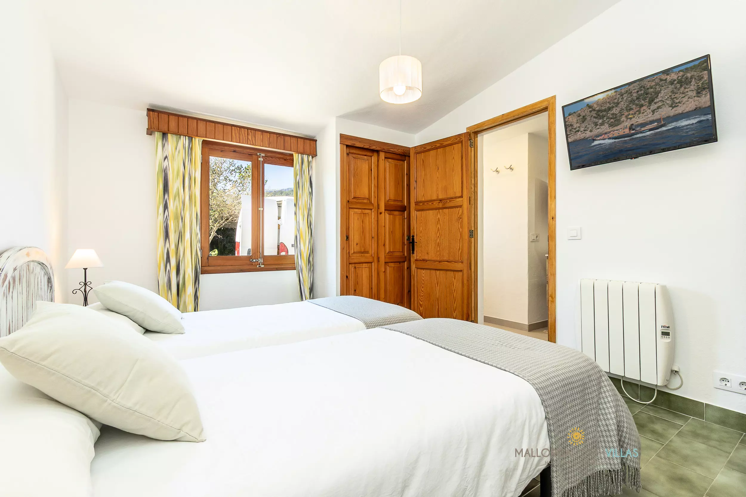 It also has 3 double bedrooms, one with a double bed and the other two with two single beds, 2 of which have air conditioning. They are all equipped with a Smart TV. It has two bathrooms, a double bathroom complete with a radiator and towel rack and another bathroom with a shower accessible from the outside.