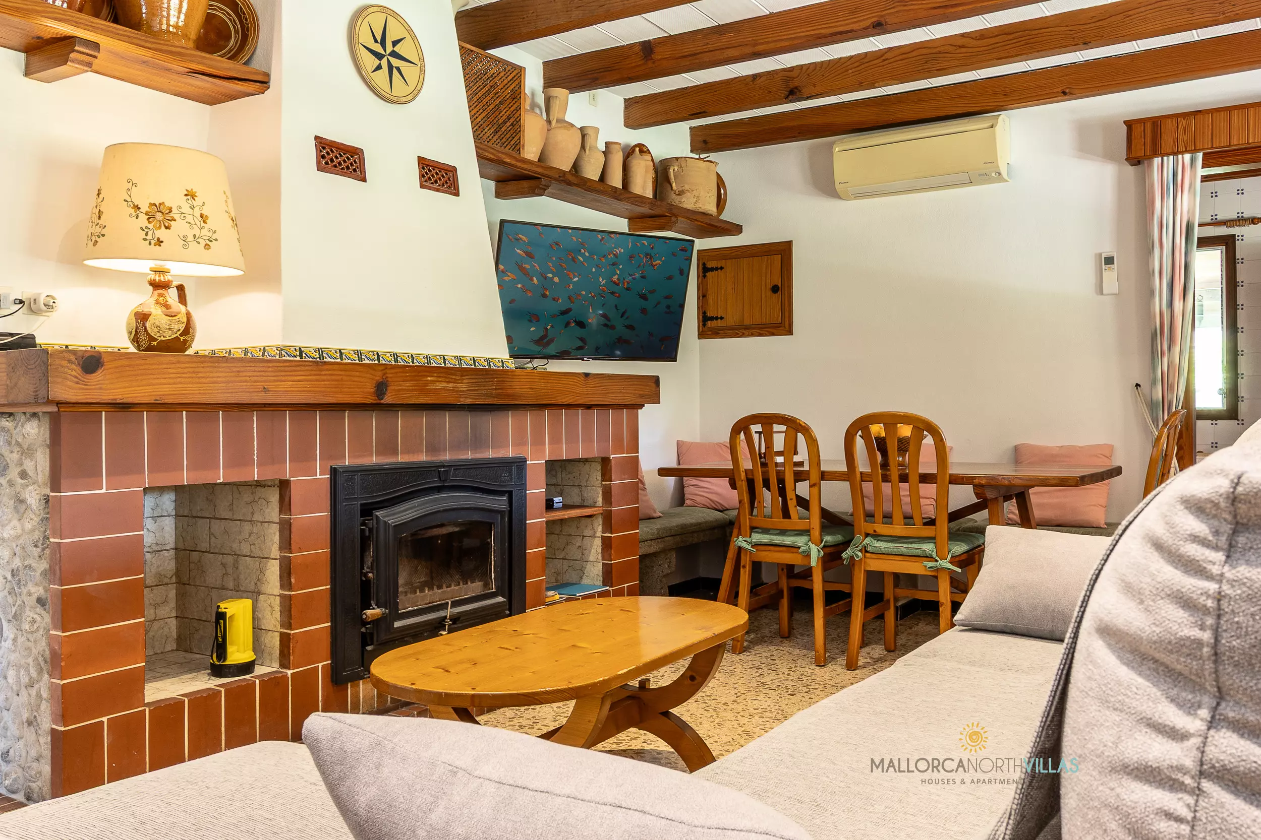 Located in a quiet, rural area, this beautiful country house boasts multiple features to make it your perfect holiday home. The house, with garden and mountain views, has a total of 240m2 spread over one floor, making it very practical and comfortable, and equipped with every comfort. Upon entering the house, we find the rustic-style dining room with air conditioning and smart TV, with a table and space for all guests. The separate kitchen has a stove, dishwasher, electric oven, large refrigerator, and reverse osmosis system for drinking water.