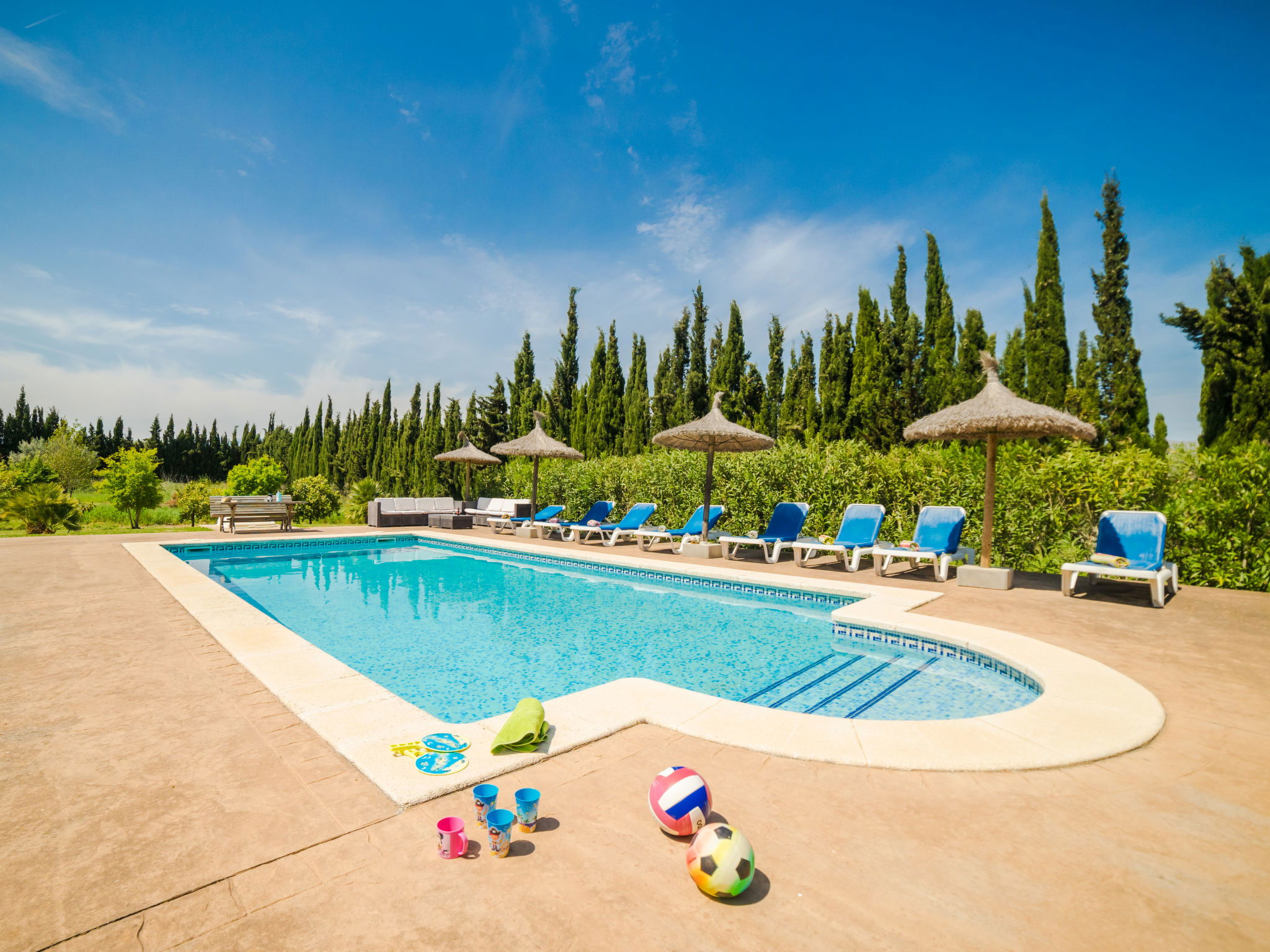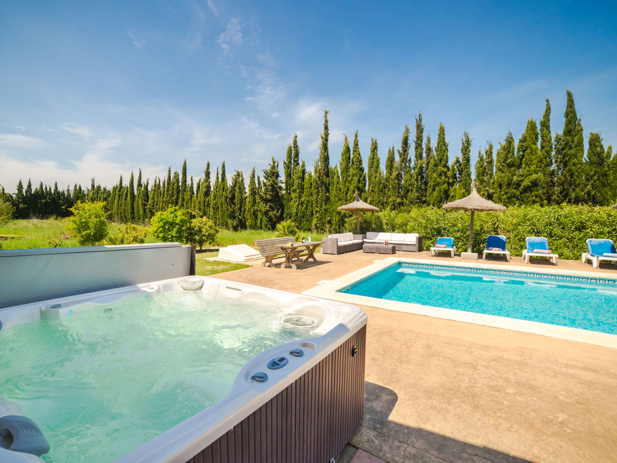 Alcúdia 5 km from Alcúdia-Pollença: Very large, beautiful, comfortable villa "Can Banzer", 2 storeys, renovated. Outside the resort, 4 km from the centre of Alcúdia, in a quiet, sunny position, 3 km from the edge of the forest, 7 km from the sea, 7 km from the beach, in the countryside. Private: property 14'250 m2 (fenced), large garden with lawn and wildlife garden, swimming pool angular (8 x 4 m, seasonal availability: 01.Jan. - 31.Dec.). Shower/WC in the pool area, outdoor shower, hot tub, table tennis, patio, arbour, pergola, barbecue. In the house: internet access, WiFi, storage room for bicycles, central heating system, air conditioning, burglar alarm system, washing machine. Parking at the house on the premises. Shop 5 km, grocery 5 km, supermarket 5 km, restaurant 5 km, bus stop 5 km, sandy beach 6.5 km, shingle beach 7 km. Sports harbour 6.5 km, golf course (18 hole) 7 km, riding stable 4 km, children's playground 4 km. Please note: suitable for families, suitable for seniors. Object suitable for 8 adults groups of teenagers on request only. Loading and unloading of baggage is possible at the holiday house. Animals in the neighbourhood. Airfield 55 km from the property.