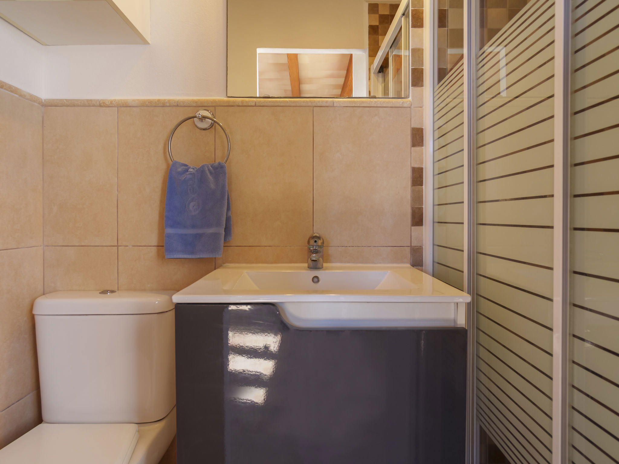 "Can Banzer", 6-room villa 340 m2 on 2 levels. Object suitable for 8 adults. Spacious and bright, fully renovated, very comfortable and cosy furnishings: open large living/dining room with panoramic window with dining table, TV, satellite TV, flat screen, hi-fi system, air conditioning and forced-air heating. Exit to the garden. Kitchen-/living room (oven, dishwasher, 3 ceramic glass hob hotplates, toaster, kettle, microwave, freezer, electric coffee machine) with dining table. Exit to the garden. Bath/shower/WC. Upper floor: 1 large double bedroom with panoramic window with 1 double bed (180 cm, length 200 cm), bath/shower/WC, TV, flat screen, air conditioning and forced-air heating. Exit to the terrace. 1 large double bedroom with panoramic window with 1 french bed (150 cm, length 200 cm), bath/shower/WC, air conditioning and forced-air heating. 1 large double bedroom with panoramic window with 1 french bed (150 cm, length 200 cm), air conditioning and forced-air heating. 1 large double bedroom with panoramic window with 2 beds (90 cm, length 190 cm), air conditioning and forced-air heating. Exit to the terrace. Bath/shower/bidet/WC, double hand-basin. Large terrace, large patio, lawn, porch. Terrace furniture, barbecue (portable), deck chairs, covered balcony. Distant view of the mountains and the countryside. Facilities: washing machine, dryer, sauna, iron, children's high chair, baby cot, hair dryer. Internet (WiFi, free). Parking (fenced). Please note: suitable for families. Non-smoking house. ETV/10312 // Reg. Nr.: ESFCTU0000070430000930710000000000000000000ETV/103127