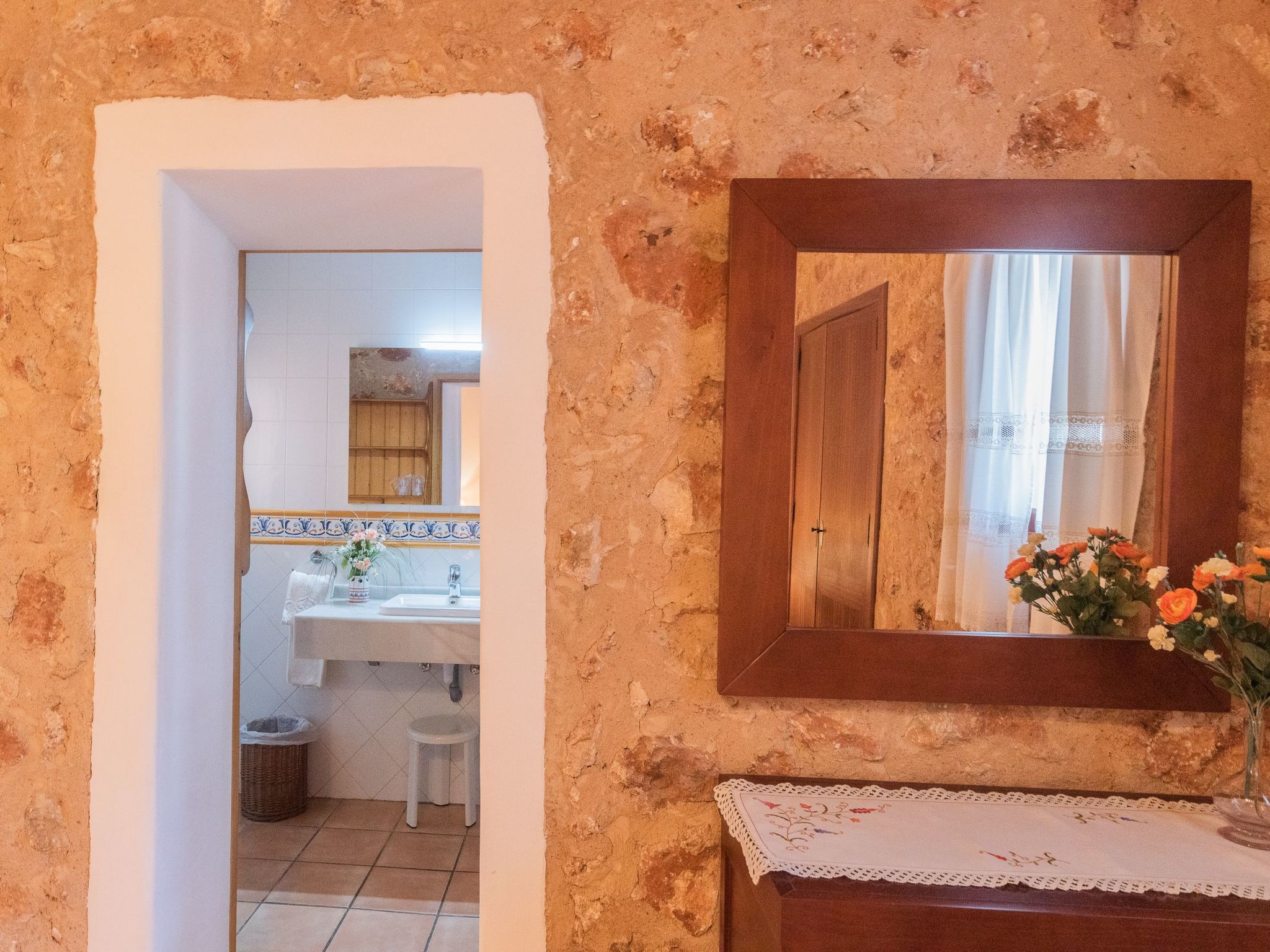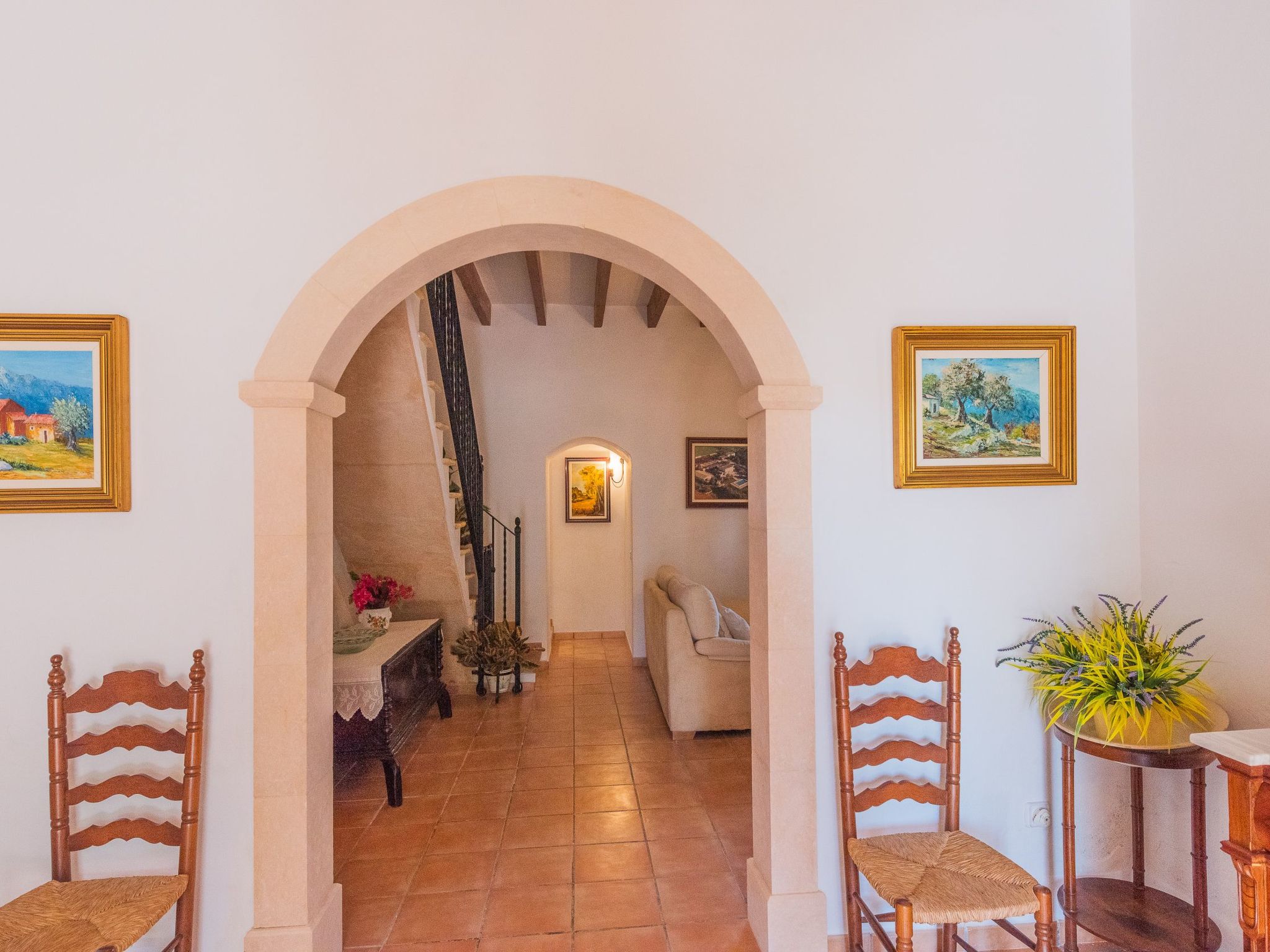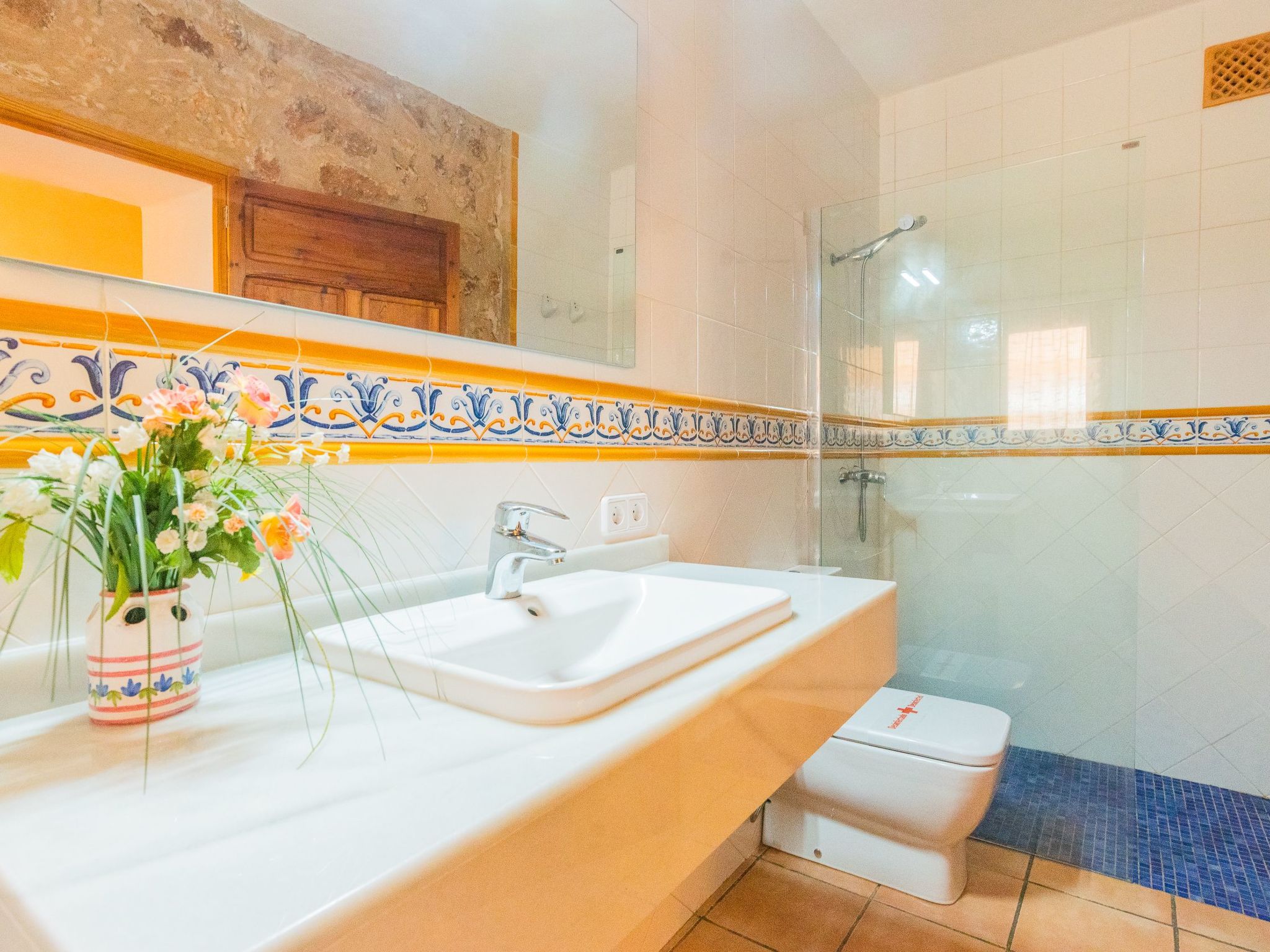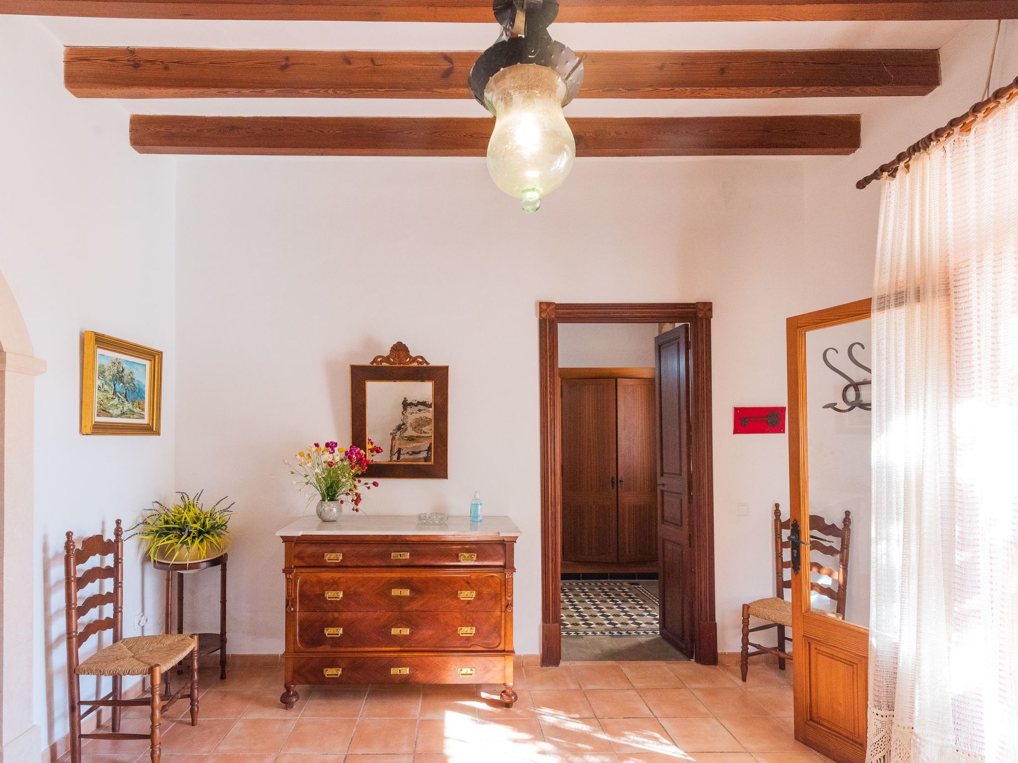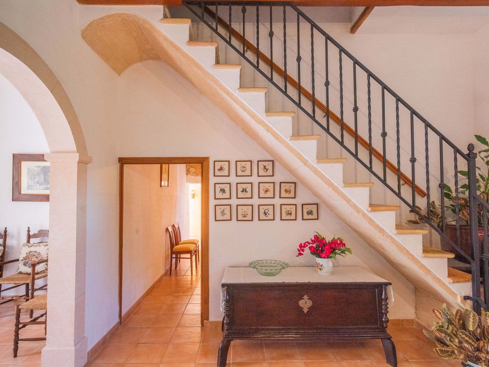 The house is partly furnished in a romantic Mallorcan style, while more recent styles, such as natural walls, create a cosy atmosphere and the bathrooms are of course modern. On the ground floor there is a living room with a seating area and open fireplace, which can be used on cooler evenings. A step leads to the fully equipped kitchen. There is also a dining room and three bedrooms, two of which have double beds and the third has two single beds. There is also a full bathroom and a shower room. One of the bedrooms has access to the beautiful garden. The upper floor of the house is not in use.
