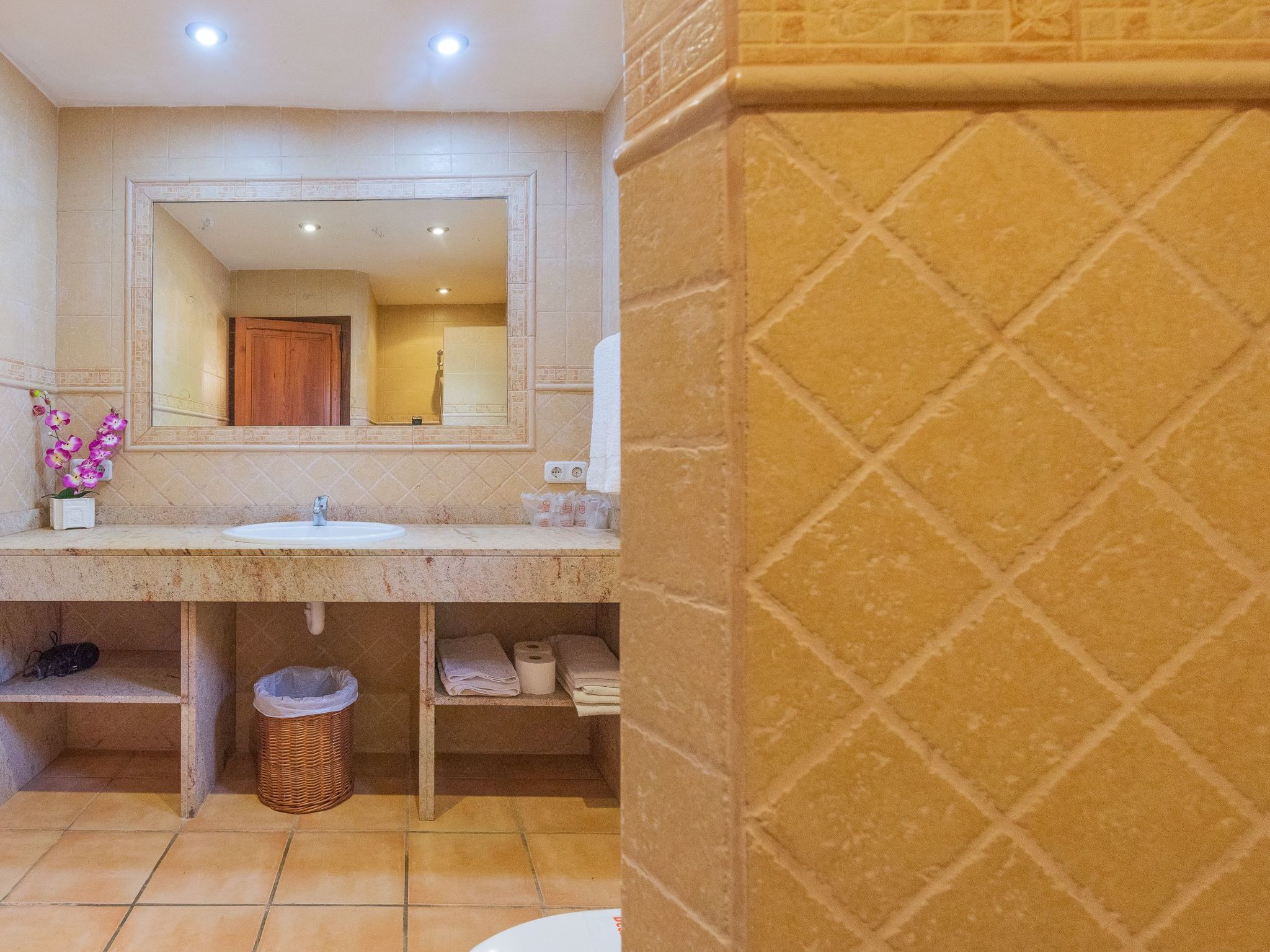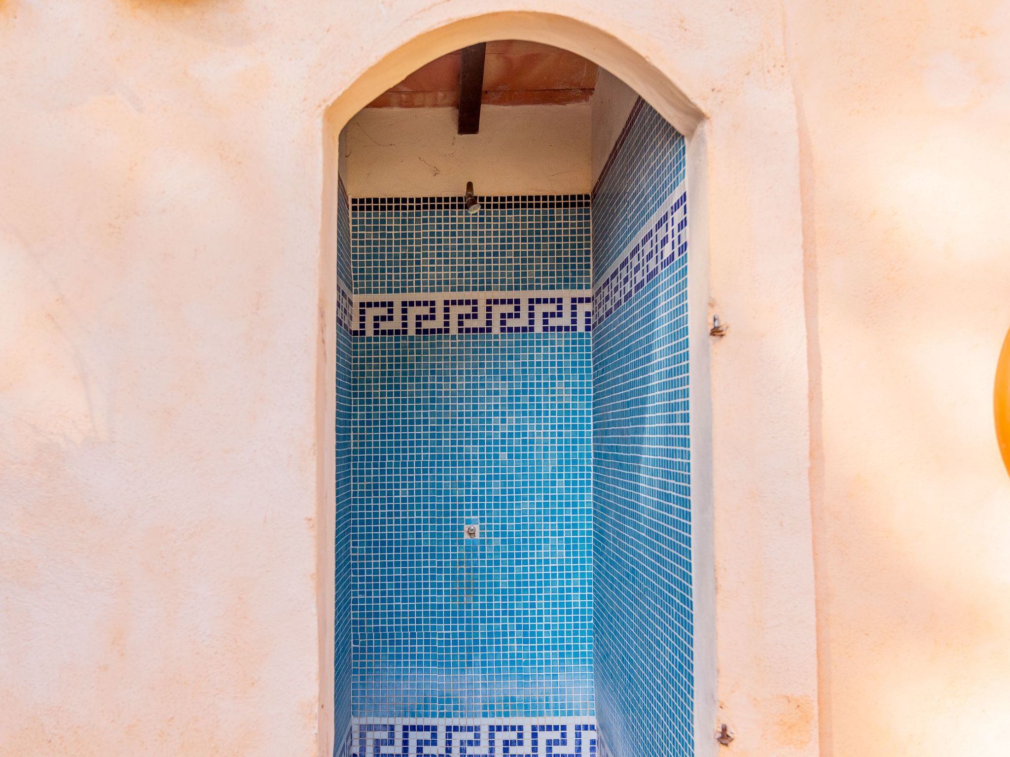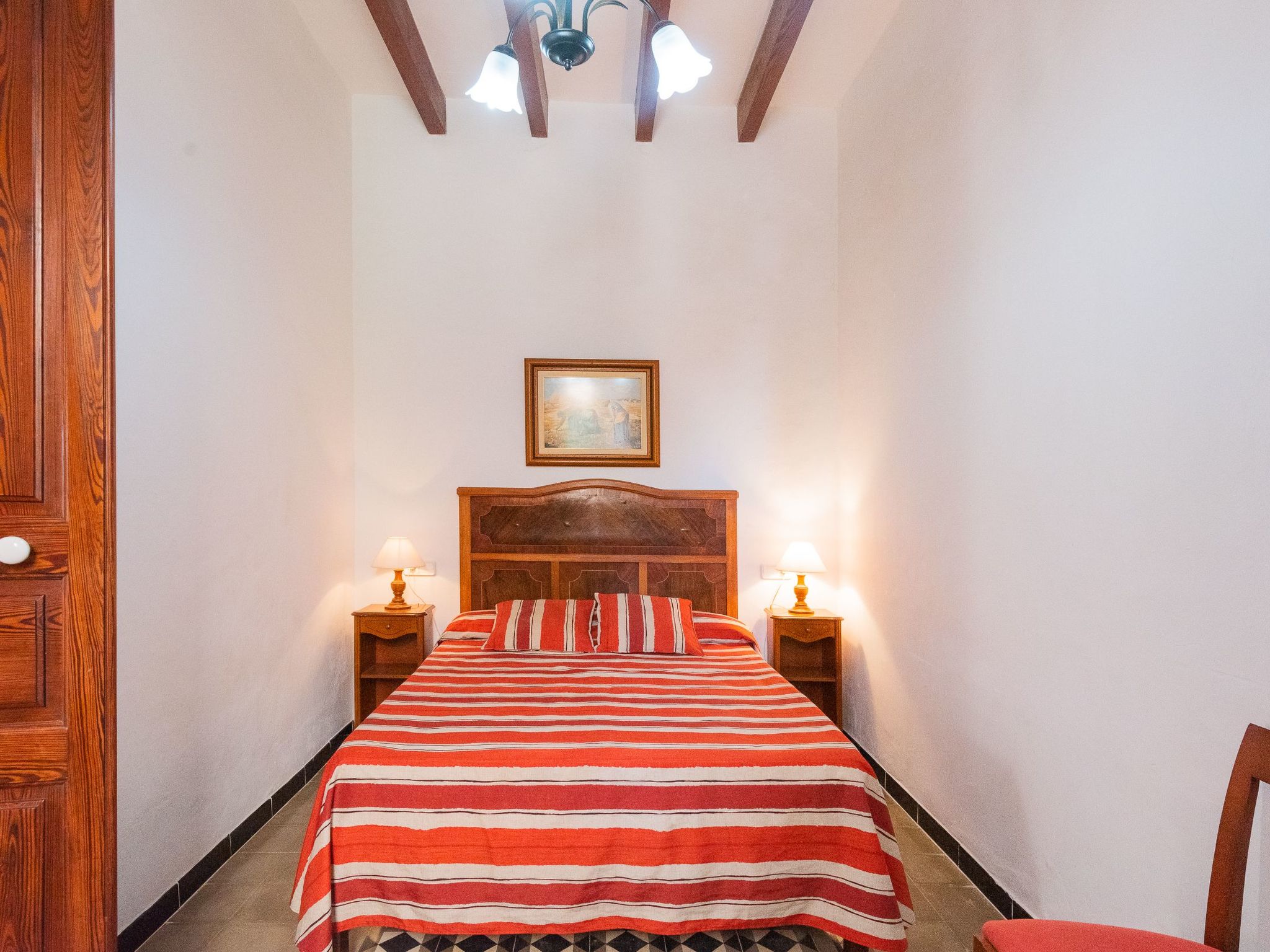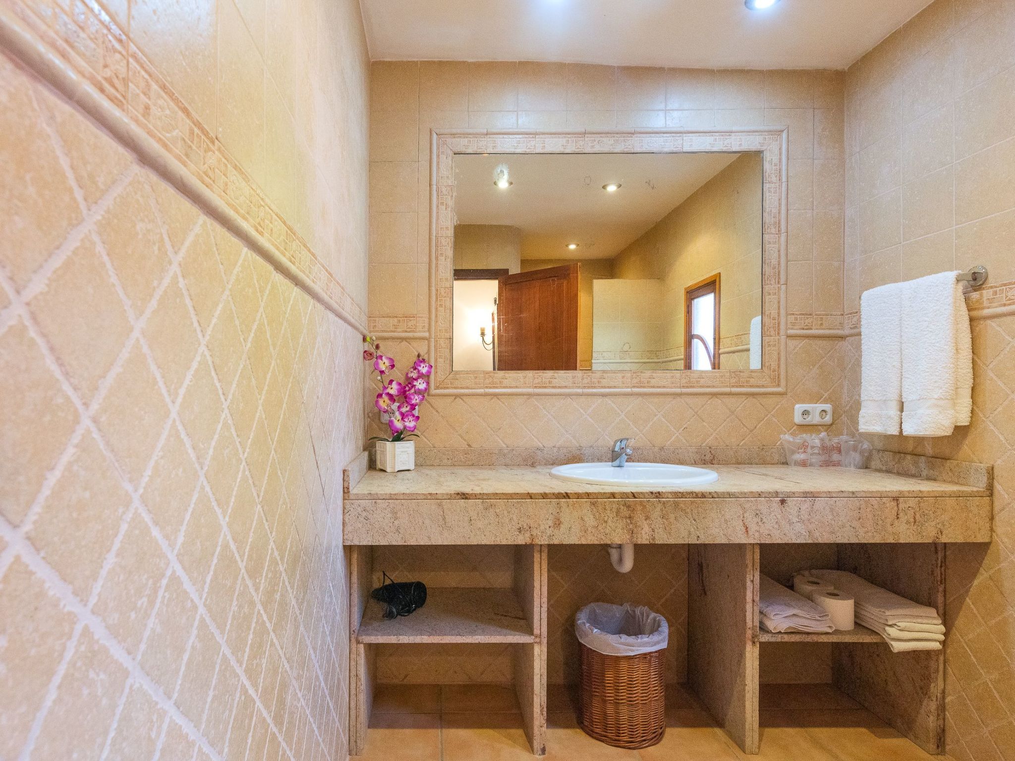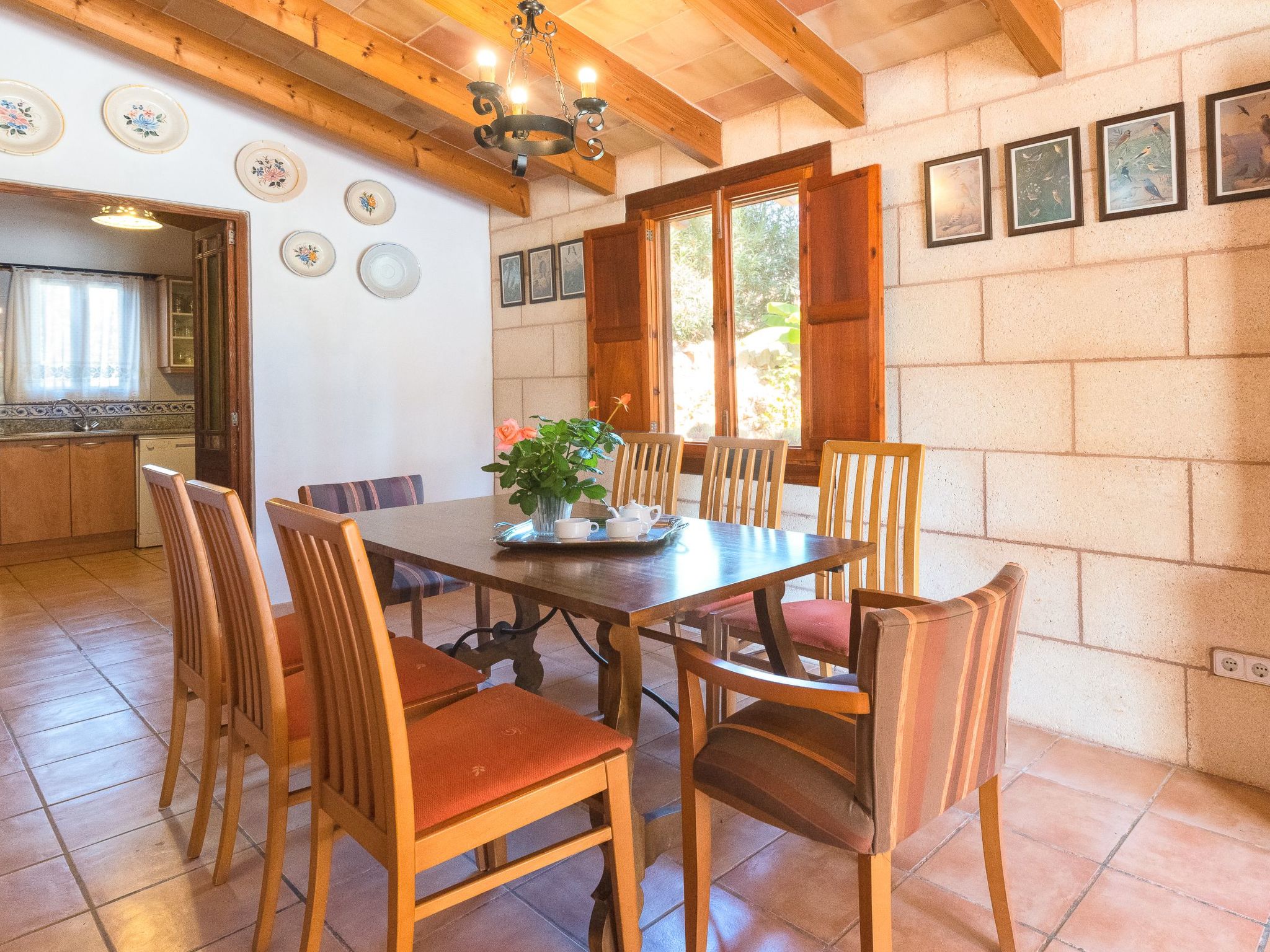 The house is partly furnished in a romantic Mallorcan style, while more recent styles, such as natural walls, create a cosy atmosphere and the bathrooms are of course modern. On the ground floor there is a living room with a seating area and open fireplace, which can be used on cooler evenings. A step leads to the fully equipped kitchen. There is also a dining room and three bedrooms, two of which have double beds and the third has two single beds. There is also a full bathroom and a shower room. One of the bedrooms has access to the beautiful garden. The upper floor of the house is not in use.