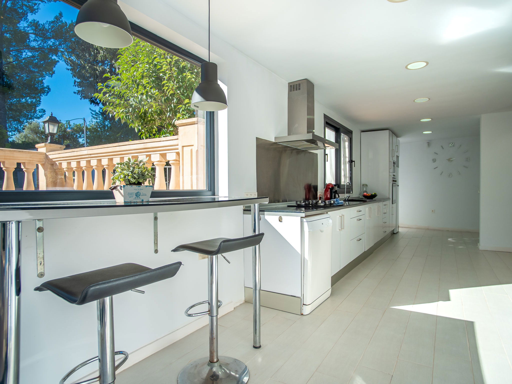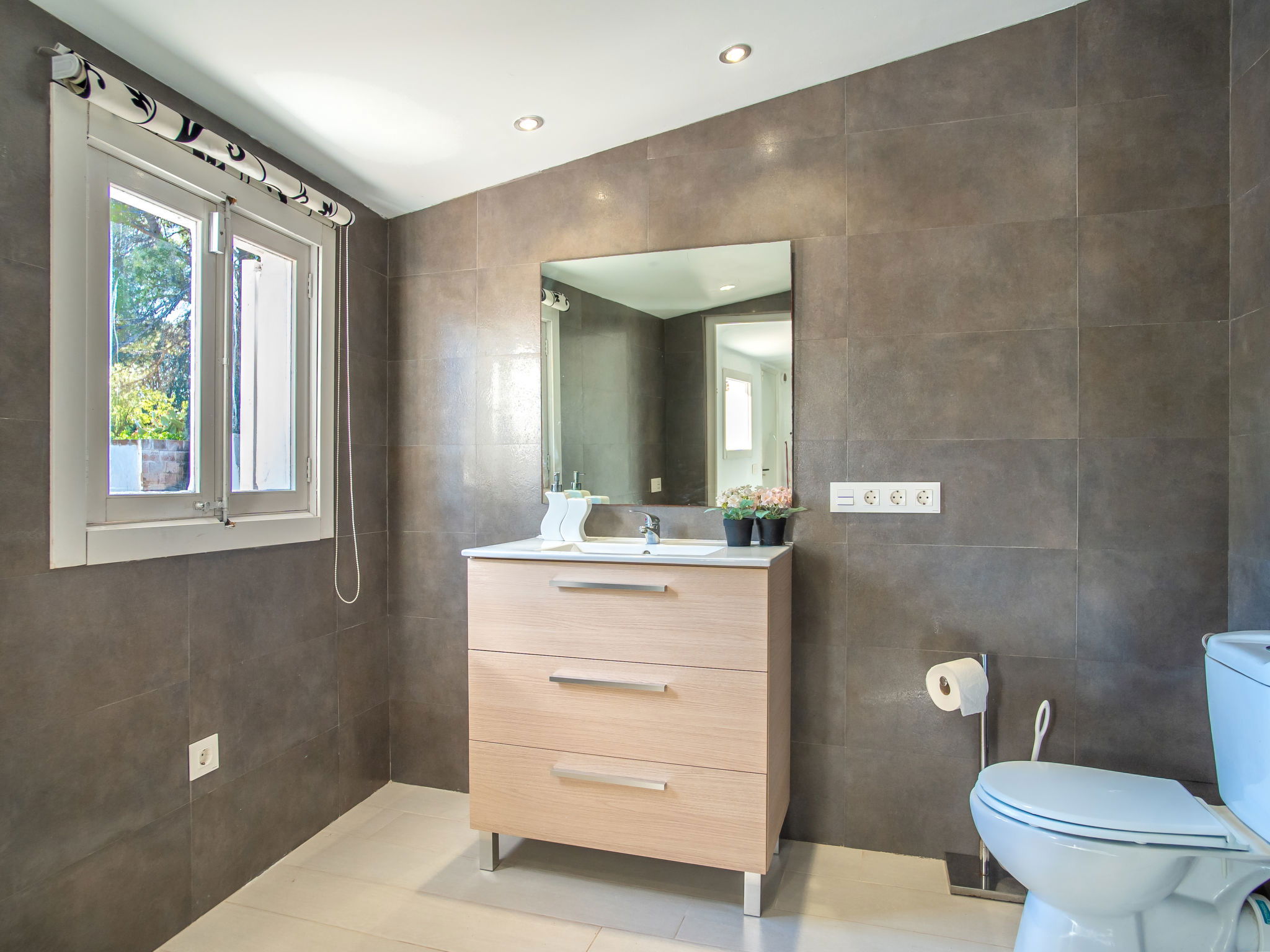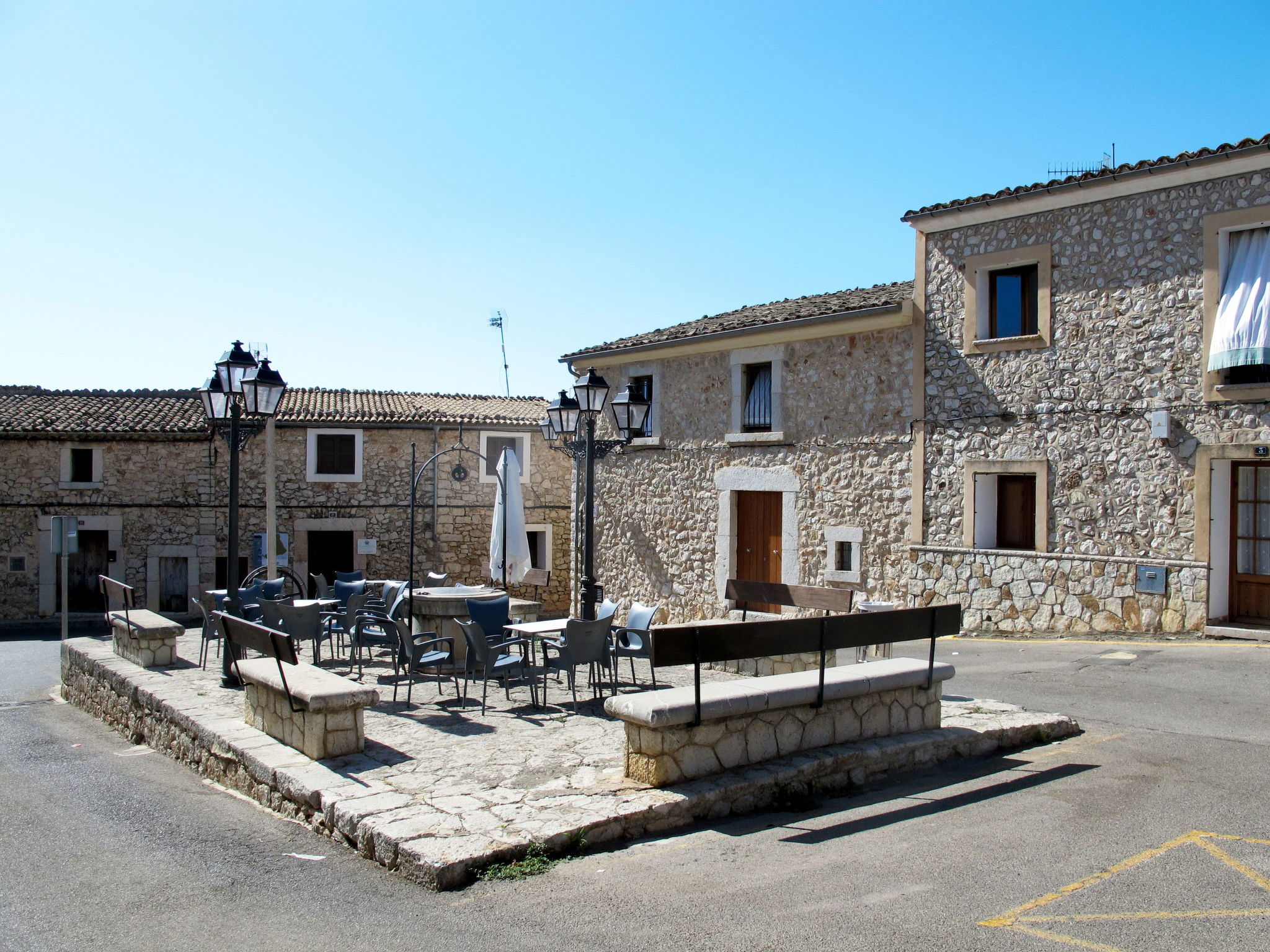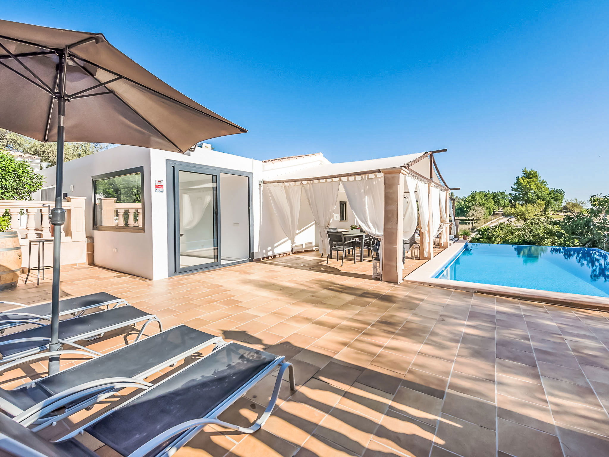 2 km from Lloseta: Modern, cosy, comfortable farm estate "Can Bernat", surrounded by trees. Outside the resort, 2 km from the centre of Lloseta, in a quiet, sunny position, traffic calmed area, 3 km from the edge of the forest, 25 km from the sea, 25 km from the beach, in the countryside. Private: natural state property with trees, natural garden, swimming pool angular (7 x 4 m, depth 100 - 160 cm, seasonal availability: 01.Jan. - 31.Dec.) with salt water and salt-electrolysis pool-cleaning system. Outdoor shower, table tennis, patio, arbour, garden furniture, barbecue, pool maintenance by the owner/gardener. In the house: air conditioning, burglar alarm system, washing machine. 150 m long bumpy motor access. Parking on the premises. Shop 2 km, grocery 2 km, supermarket 2 km, restaurant 2 km, bar 2 km, bakery 2 km, café 2 km, pub garden 2 km, bus stop "Inca" 2.5 km, railway station "Lloseta" 2 km, sandy beach "Puerto Alcudia" 25 km, rocky beach 30 km. Sports harbour 30 km, marina 30 km, golf course (18 hole) 31 km, riding stable 2.5 km, walking paths from the house 1 m. Nearby attractions: Ciudad de Inca, Lloseta. 2.5 km. Hiking paths: Sa Comuna de Biniamar 3.5 km, Lluc, Escorca. Please note: car recommended. Suitable for families, suitable for seniors baby equipment on request (included). Object suitable for 4 adults groups of teenagers on request only. The owner does not accept any youth groups. Loading and unloading of baggage is possible at the holiday house. Animals in the neighbourhood. Airfield 39 km from the property.