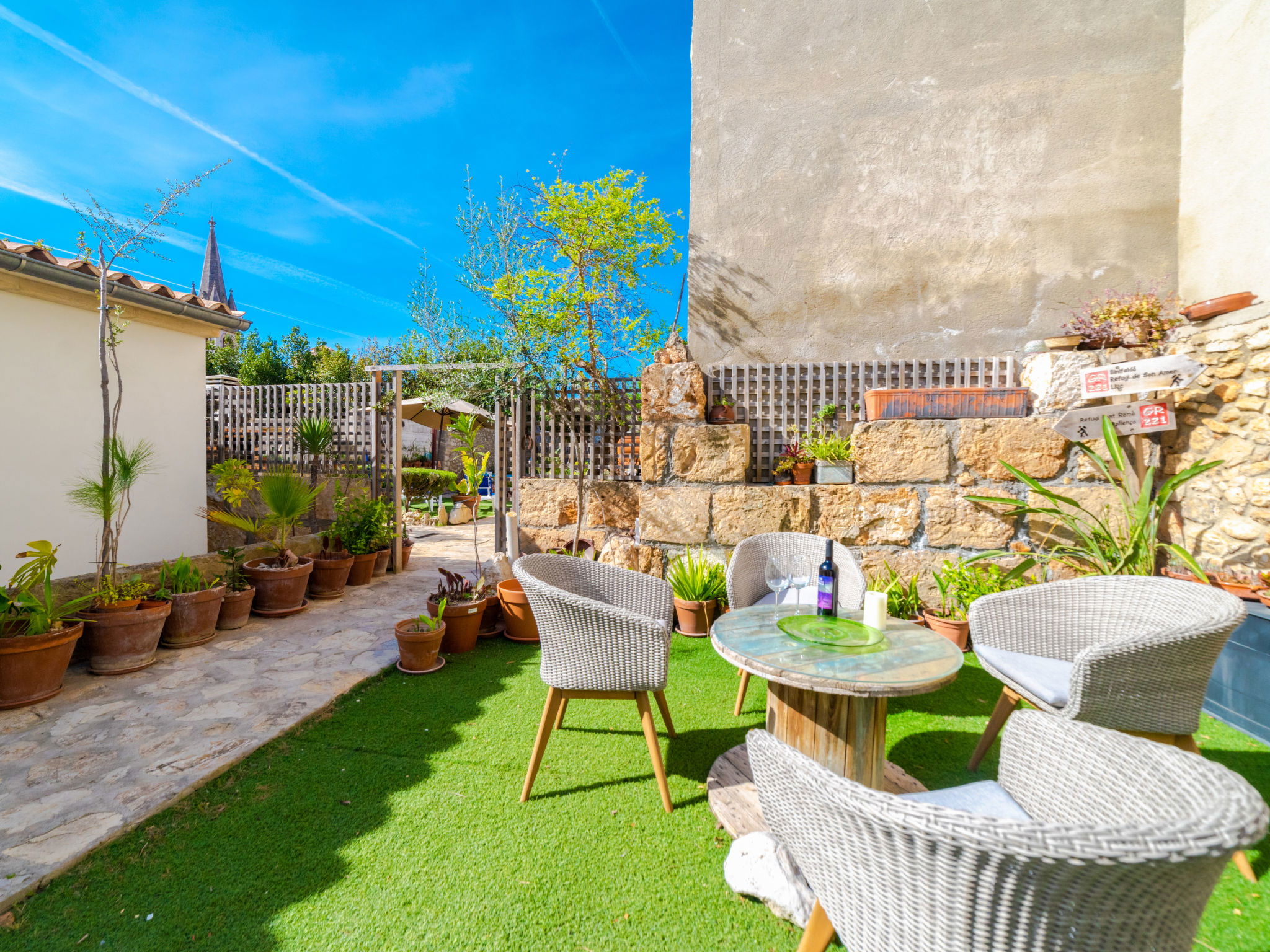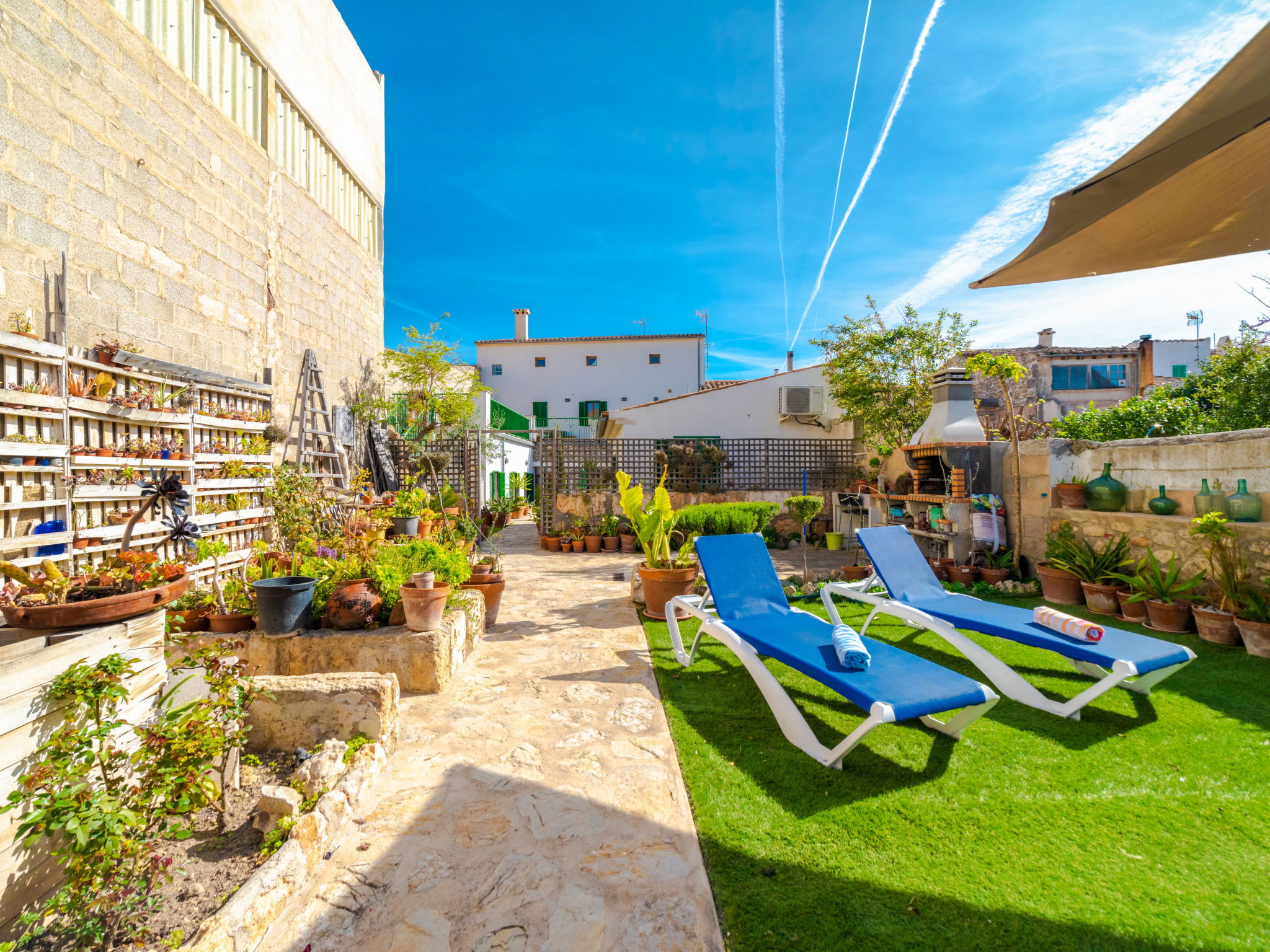 Binissalem: Large, very beautiful, comfortable 2-family house "Can Canto", renovated. In the centre, in a quiet, sunny position, excellent location: right in the centre but still quiet, in the heart of the city, 2 km from the edge of the forest, 30 km from the sea, 30 km from the beach. Private: large, beautiful garden with wildlife garden, swimming pool (above ground) round (3 m diameter, depth 160 cm, seasonal availability: 01.Apr. - 31.Dec.). Outdoor shower, patio, garden furniture, barbecue. In the house: internet access, WiFi, air conditioning, washing machine. Public car park, public parking on the road. Shop 300 m, grocery 350 m, supermarket 500 m, restaurant 200 m, bar 150 m, bakery 250 m, pedestrian zone, 4 minute walk to the centre, bus stop 210 m, railway station, ferry 30 km, sandy beach 30 km, rocky beach 30 km. Sports harbour 30 km, marina 30 km, golf course (18 hole) 35 km, tennis 950 m, sports centre 950 m, walking paths from the house, cycle lane 700 m, children's playground 500 m. Nearby attractions: Bodegas y Viñedos D.O. Binissalem, Mercado Local (Viernes, 9.00-13.30h). 250 m, Centro Comercial, ocio y cinemas. 13 km, Ciudad de Inca 7 km, Pueblos de Alaró, Consell, Santa María. Hiking paths: Serra de Tramuntana. Please note: suitable for families, suitable for seniors. Object suitable for 5 adults. The owner does not accept any youth groups. Airfield 27 km from the property. Neighbourhood highly sensitive to noise. Quietness and good behaviour expected.