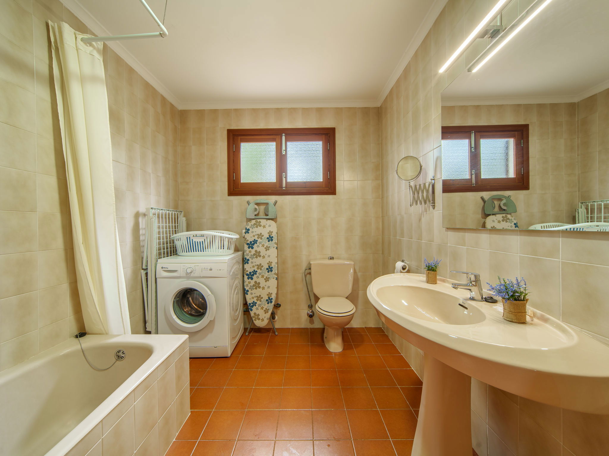 Santanyi: Large, cosy, simple house "Cas Padrins de Santanyi". 20 m from the sea, direct access to the beach. In the house: WiFi, air conditioning, washing machine. Parking at the house. Shop 6 km, grocery 6 km, supermarket 6 km, shopping centre 6 km, restaurant 700 m, bar 550 m, bus stop "Cala Figuera" 800 m, sandy beach "Ses Covetes" 3 km, shingle beach "Es mitjorn" 30 m, rocky beach "Cala Figuera" 25 m. Marina 200 m.