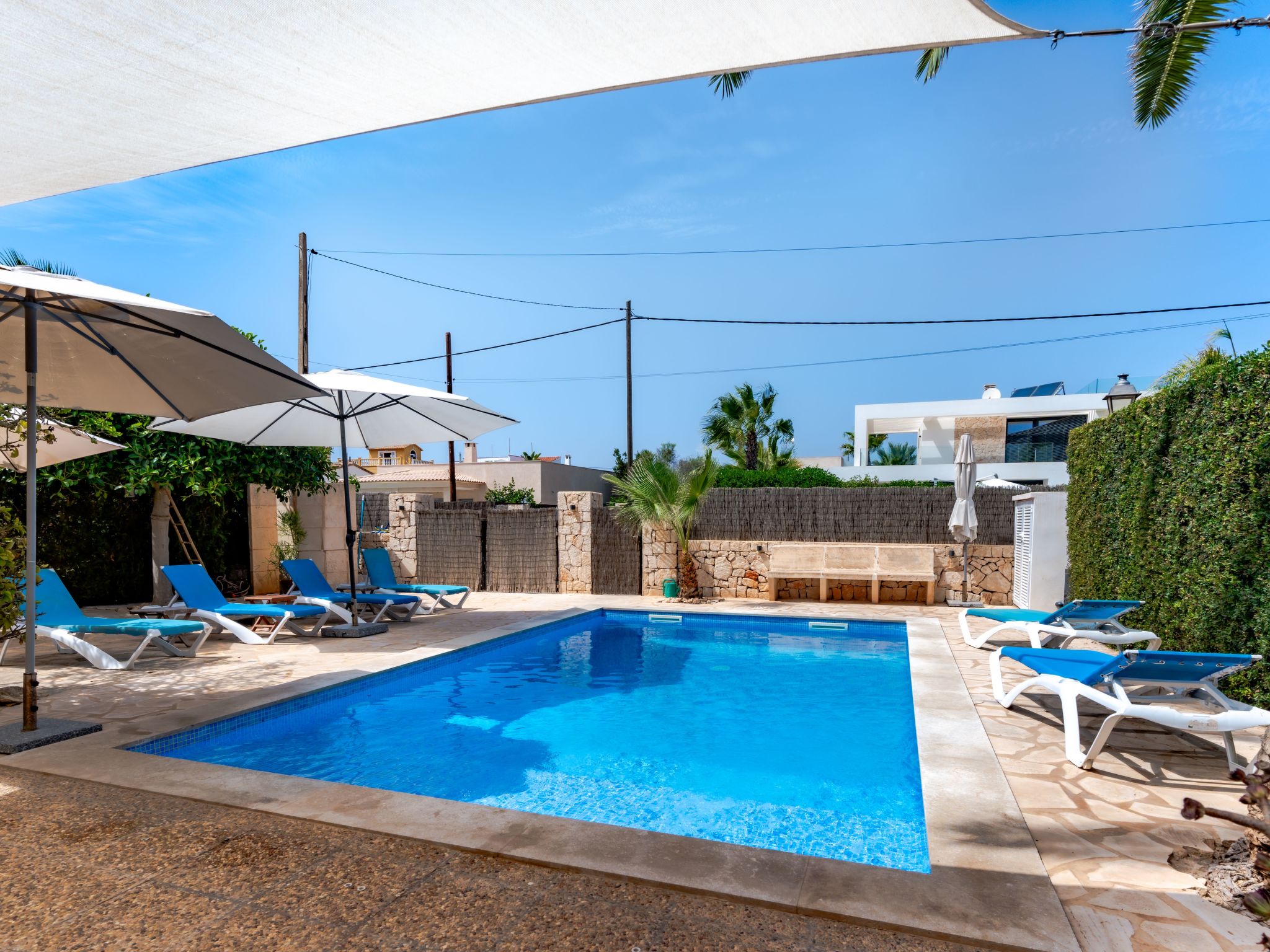 Our holiday home is located in the small village of Cala Llombards in the south-east of Mallorca. Cala Llombards is a small, quiet and tranquil place, which is mainly a weekend resort for Mallorcans. It is a beautiful coastal town for swimming, hiking or cycling and is surrounded by almond groves, which invite you to take long walks during the almond blossom in spring. The shallow beach in the Cala Llombards bay is ideal for children, while older teenagers will enjoy jumping into the sea from the rocky cliffs.