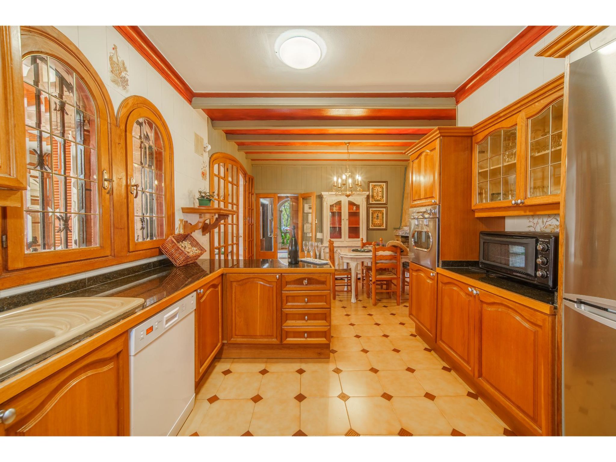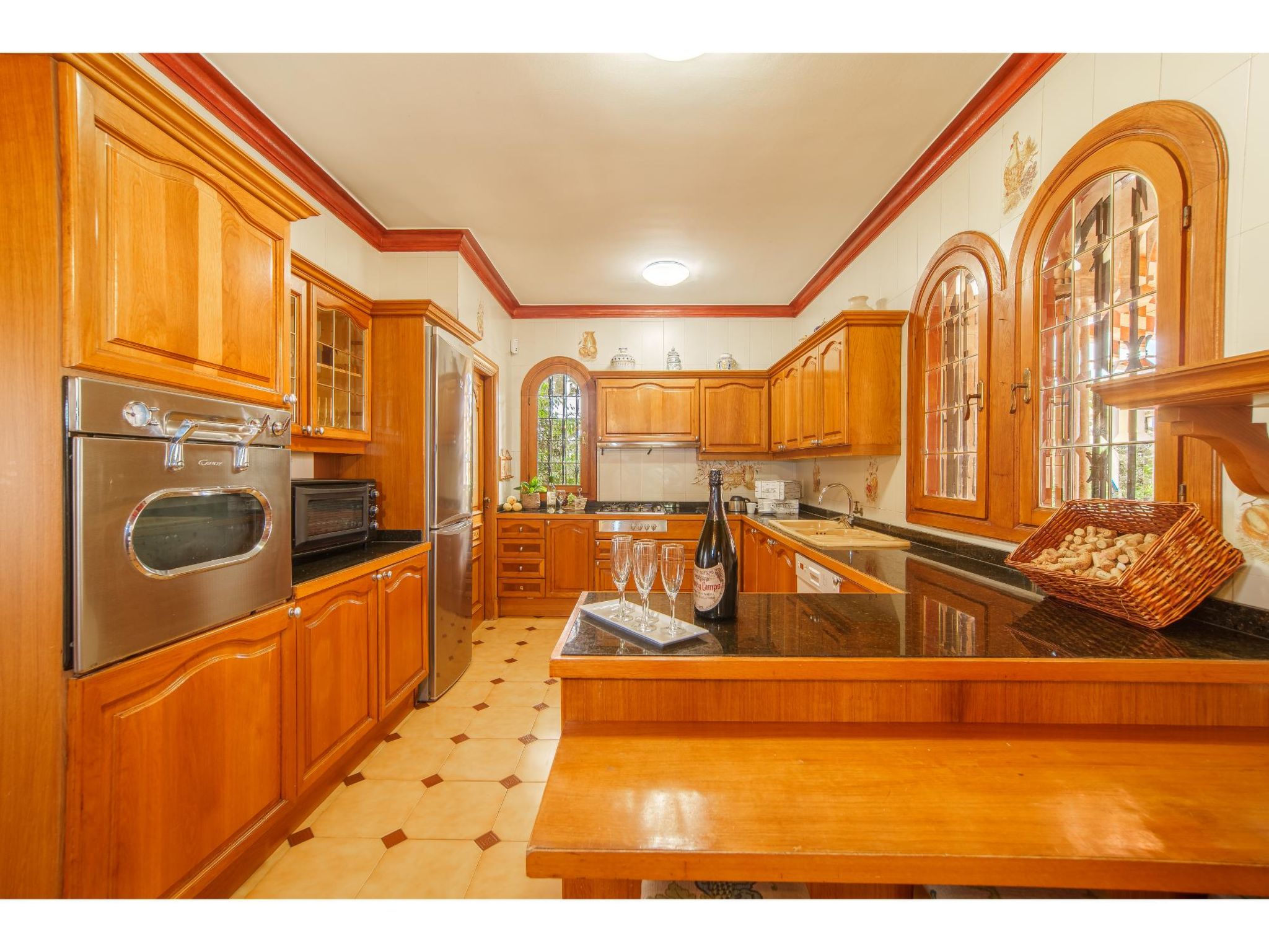 "Villa Munar I", 7-room house 220 m2 on 3 levels. Comfortable furnishings: living/dining room with open-hearth fireplace (only for decoration), dining table, satellite TV and air conditioning. Exit to the terrace. Living/dining room. 1 room with 1 french bed (135 cm), air conditioning. Open kitchen (oven, dishwasher, 4 gas rings, toaster, kettle, microwave, freezer, electric coffee machine) with small dining table, open-hearth fireplace. Shower/WC, sep. WC. Upper floor: 1 room with Dressing room with 1 french bed (150 cm), bath/WC, double hand-basin and air conditioning. 1 room with 2 beds. 1 room with 2 beds and air conditioning. Bath/WC, double hand-basin. 2nd upper floor: 1 open room with 3 beds. Oil heating. Terrace 15 m2, roofed. Terrace furniture, barbecue, deck chairs (9). Facilities: washing machine, iron. Internet (WiFi, free). Please note: suitable for families. Non-smoking house. Fire extinguisher. VT1544