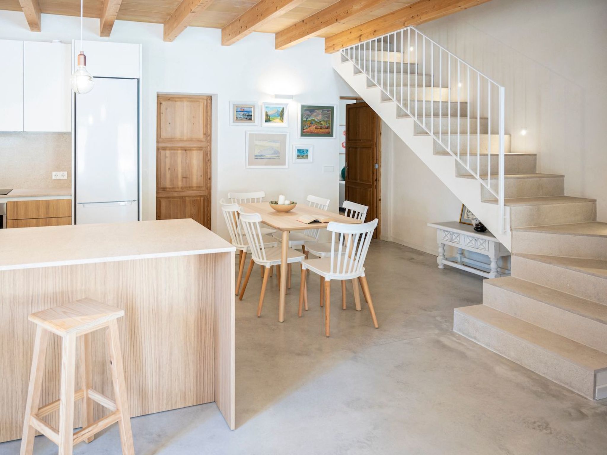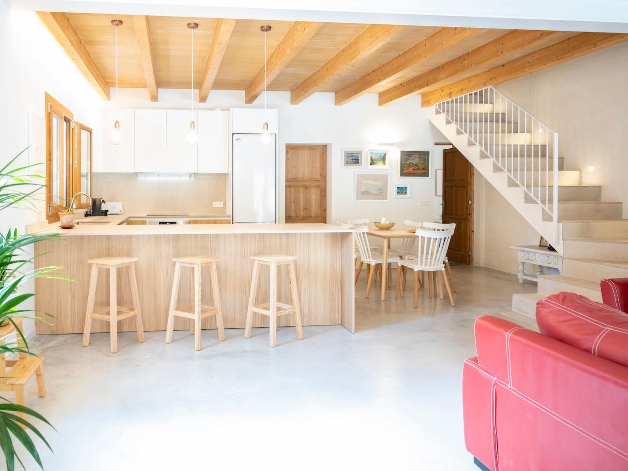 The house was renovated and completed in June 2022 using high quality materials and in compliance with new energy and environmental regulations. The interior is spacious and bright, with modern furnishings. All bedrooms are located on the ground floor (please note that there is a locked and inaccessible storage room on the upper floor). The living-dining room has a cosy sitting area with Smart TV and hot and cold air conditioning for pleasant evenings during the autumn or spring holidays or the hottest days of summer. The modern kitchen is equipped with appliances such as dishwasher and oven. There are three nice bedrooms, two bedrooms with single beds and another bedroom with a double bed and a bathroom en suite. There is another bathroom with shower. This is a perfect option for families who want to have their own private villa and pool but also have the beautiful bay of Cala Molins nearby, why not have it all?