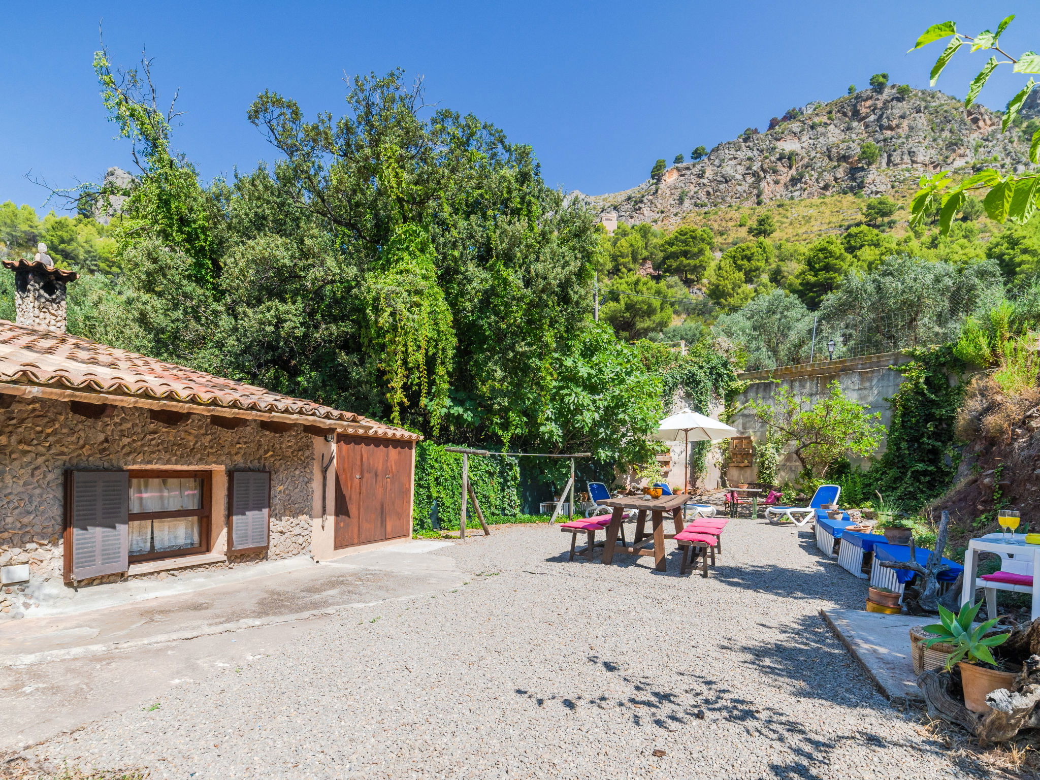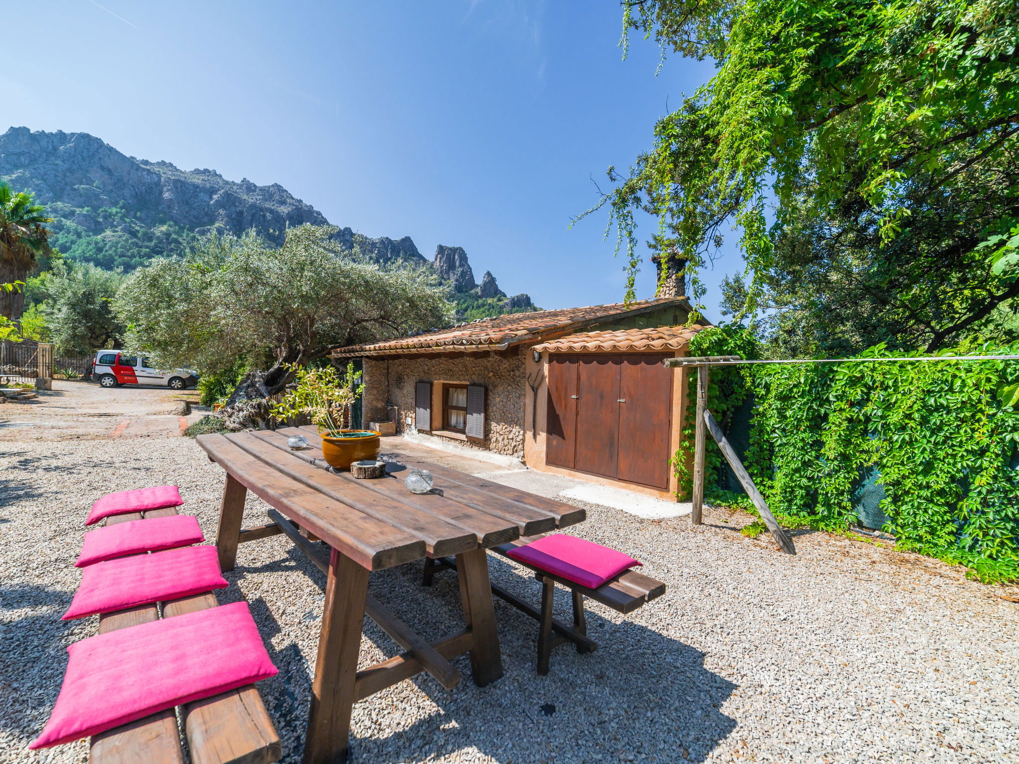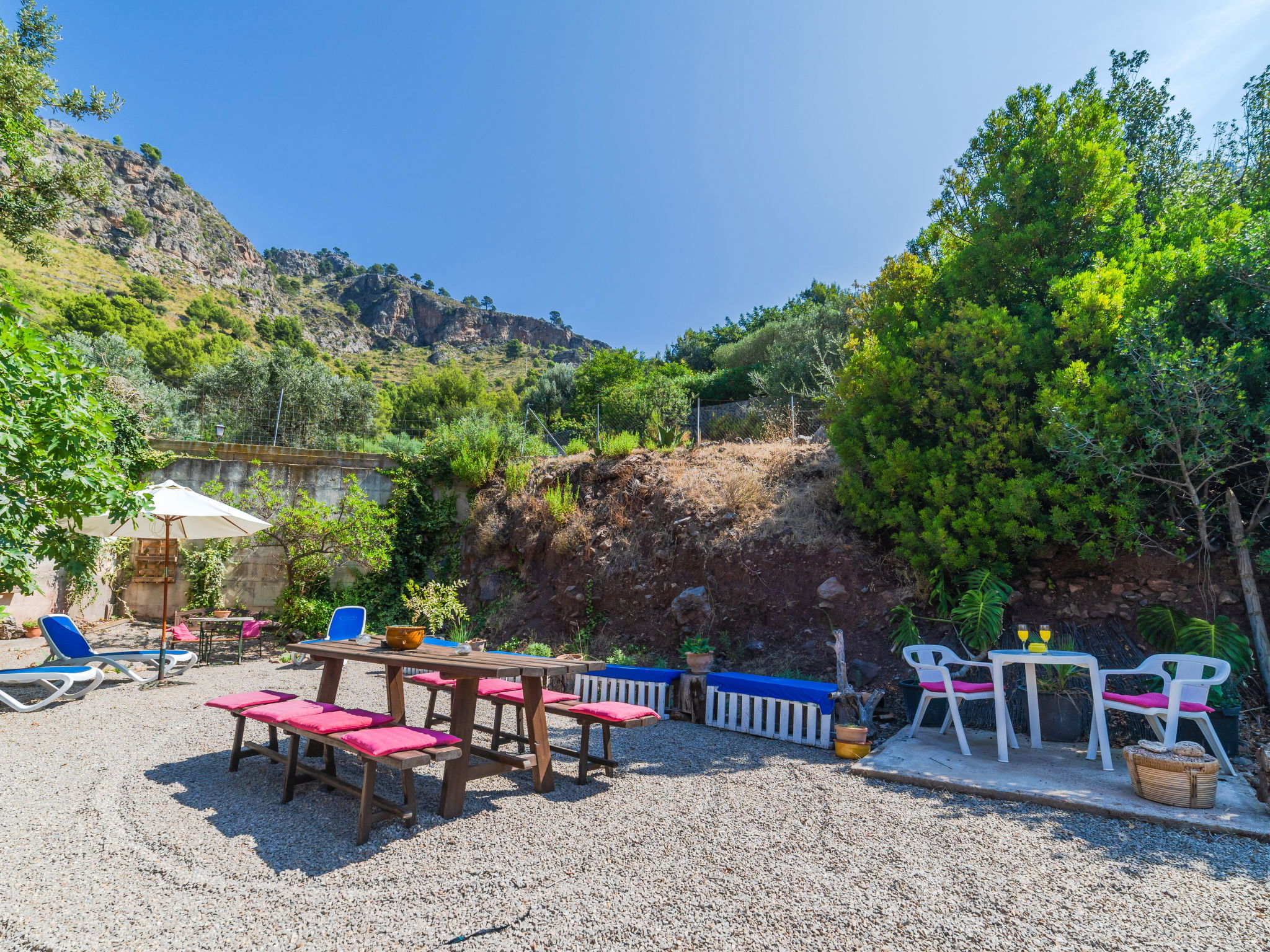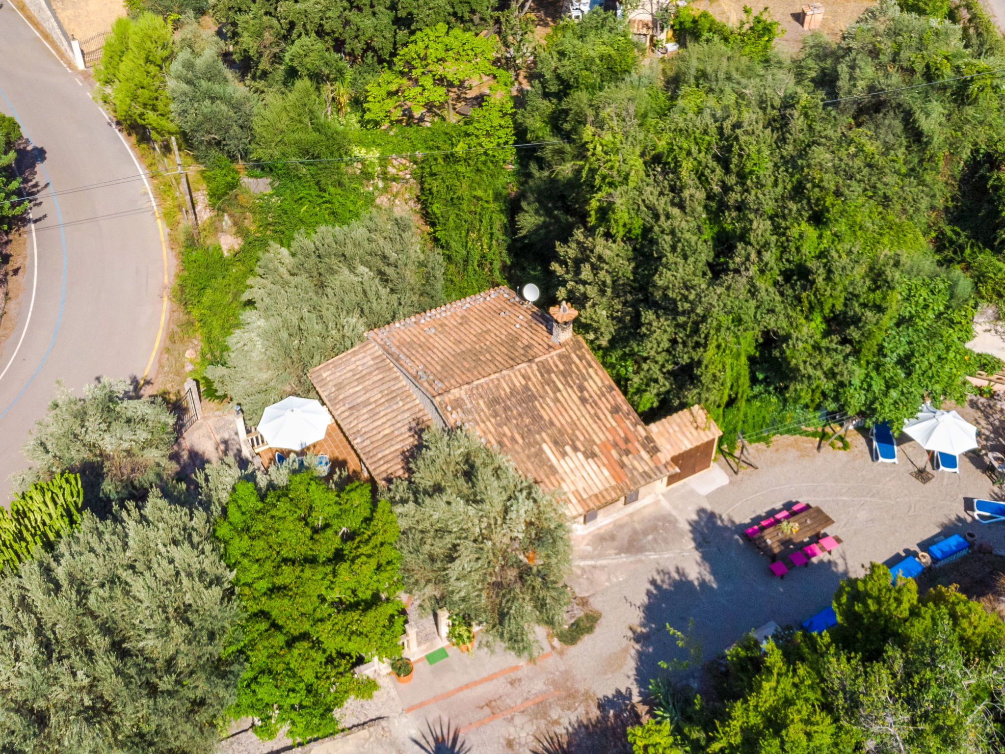 Cala Tuent 27 km from Lluc: Very cosy, rustic farm estate 2 storeys, detached, surrounded by trees and meadows. In the district of Cala Tuent, in a secluded, quiet, sunny position on top of a hill, 200 m from the sea, from the beach. Private: natural state property (fenced), natural garden (fenced). Patio, pergola, garden furniture, barbecue. In the house: internet access, WiFi, air conditioning, laundry, washing machine, tumble dryer. Steep, narrow motor access. Parking (for 2 cars) on the premises. Shop 26.9 km, grocery 26.9 km, supermarket 26.9 km, restaurant, bar 300 m, bakery 26.9 km, café, pub garden 300 m, bus stop "Lluc" 26 km, railway station "Soller" 40 km, shingle beach "Cala Tuent" 200 m. Walking paths from the house, cycle lane 100 m. Nearby attractions: Sa Calobra 6.4 km, Torrent de Pareis 7.6 km, Santuario de Lluc 26.1 km. Please note: car recommended. Suitable for families. Object suitable for 6 adults groups of teenagers on request only. Loading and unloading of baggage is possible at the holiday house. Animals in the neighbourhood. Main road close by. Airfield 75 km from the property.