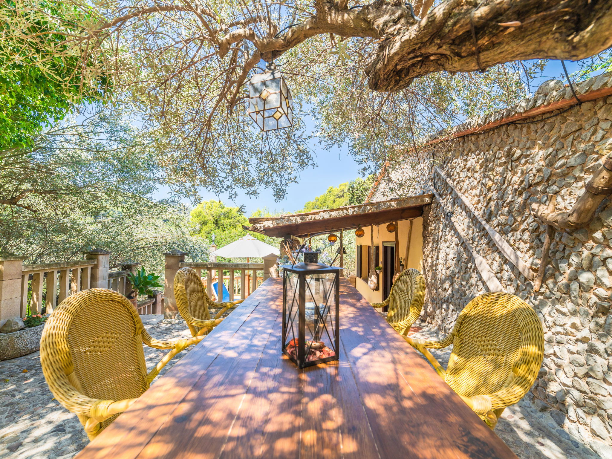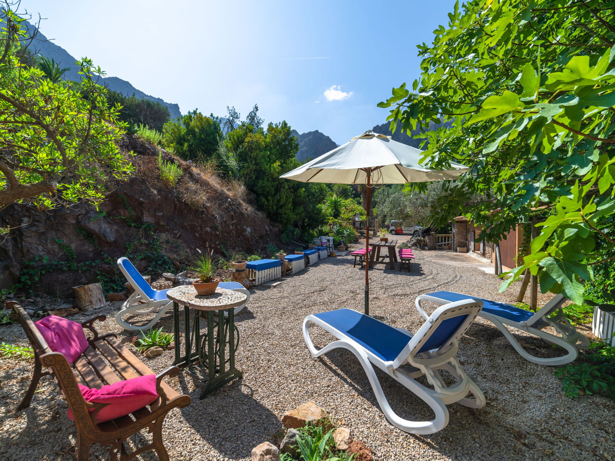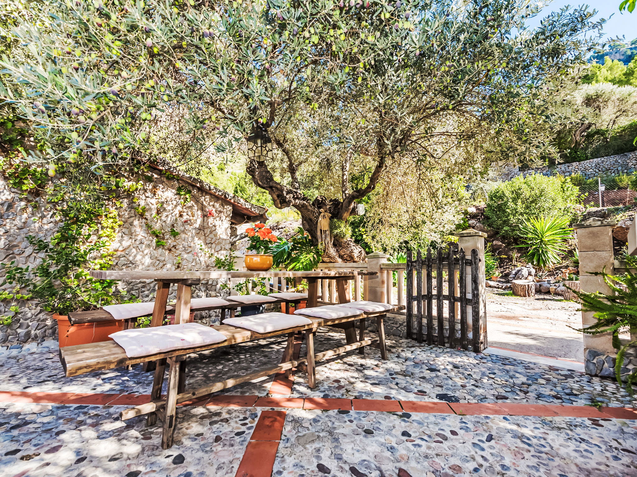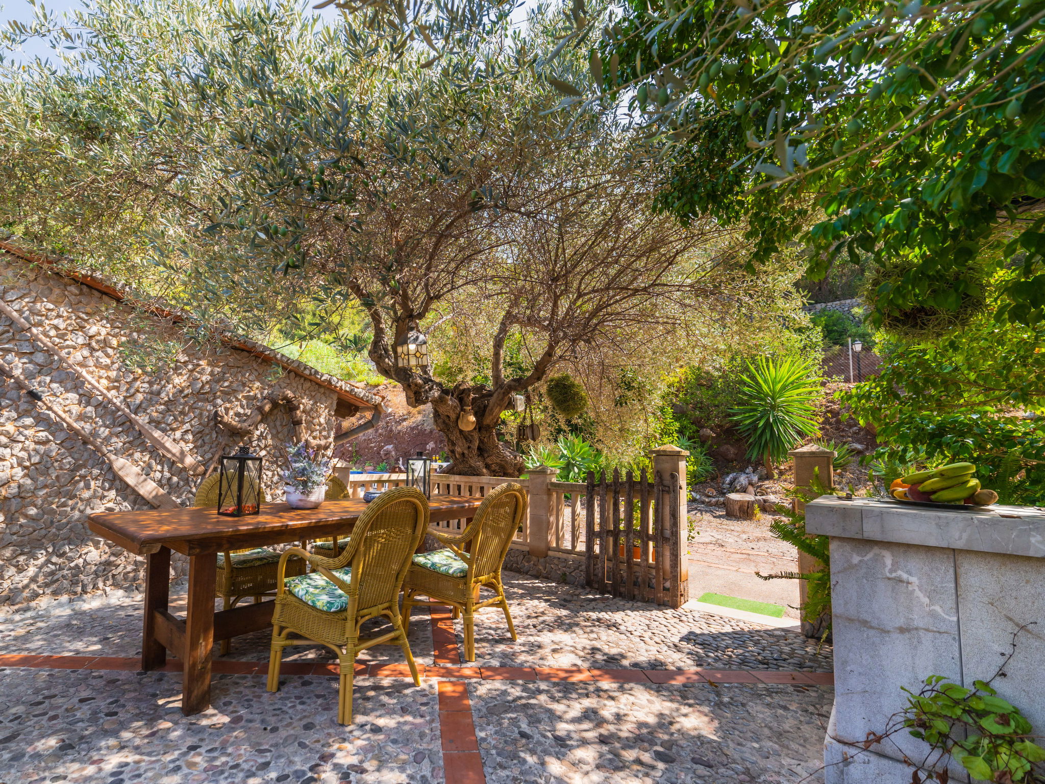 Cala Tuent 27 km from Lluc: Very cosy, rustic farm estate 2 storeys, detached, surrounded by trees and meadows. In the district of Cala Tuent, in a secluded, quiet, sunny position on top of a hill, 200 m from the sea, from the beach. Private: natural state property (fenced), natural garden (fenced). Patio, pergola, garden furniture, barbecue. In the house: internet access, WiFi, air conditioning, laundry, washing machine, tumble dryer. Steep, narrow motor access. Parking (for 2 cars) on the premises. Shop 26.9 km, grocery 26.9 km, supermarket 26.9 km, restaurant, bar 300 m, bakery 26.9 km, café, pub garden 300 m, bus stop "Lluc" 26 km, railway station "Soller" 40 km, shingle beach "Cala Tuent" 200 m. Walking paths from the house, cycle lane 100 m. Nearby attractions: Sa Calobra 6.4 km, Torrent de Pareis 7.6 km, Santuario de Lluc 26.1 km. Please note: car recommended. Suitable for families. Object suitable for 6 adults groups of teenagers on request only. Loading and unloading of baggage is possible at the holiday house. Animals in the neighbourhood. Main road close by. Airfield 75 km from the property.