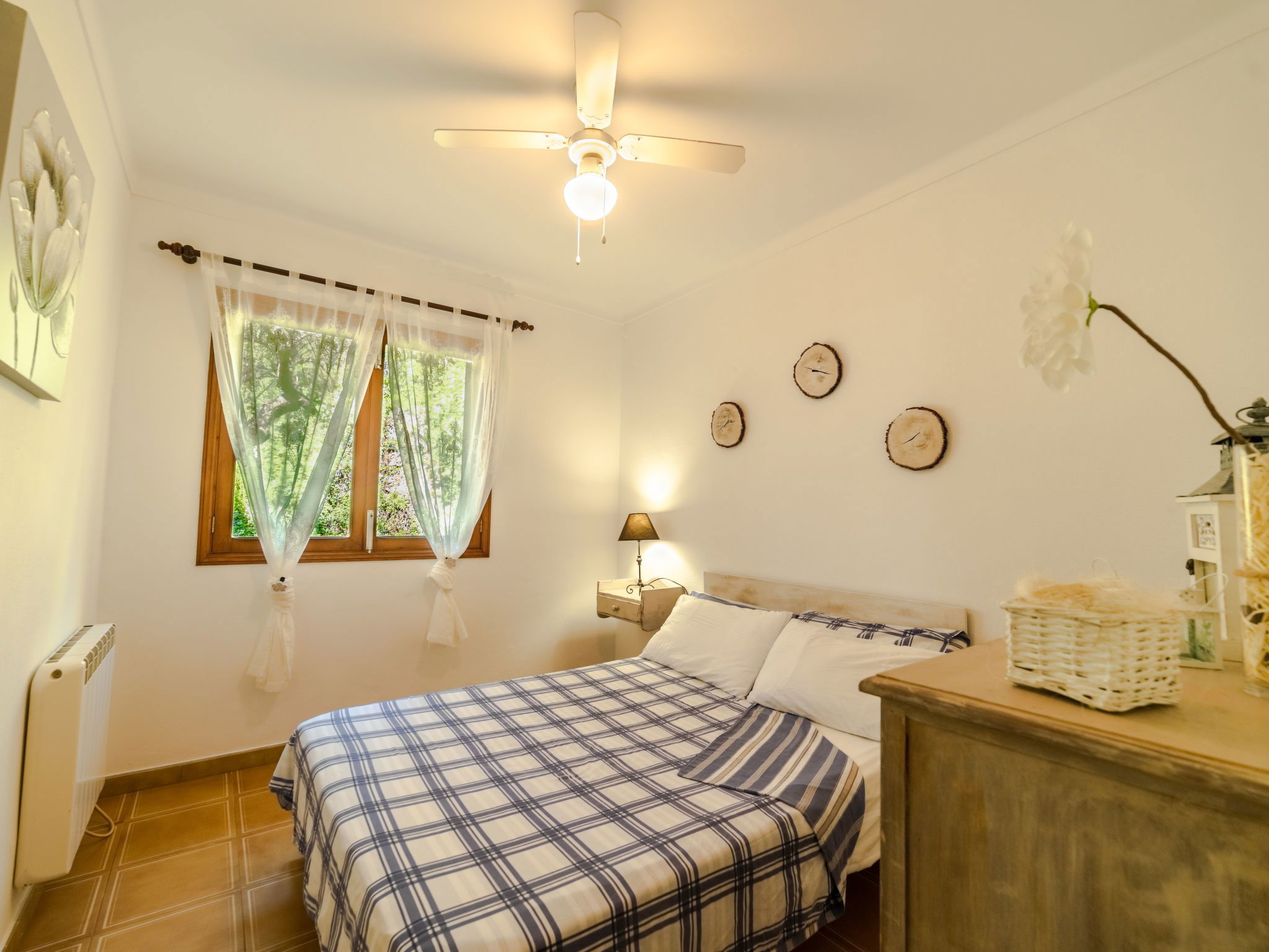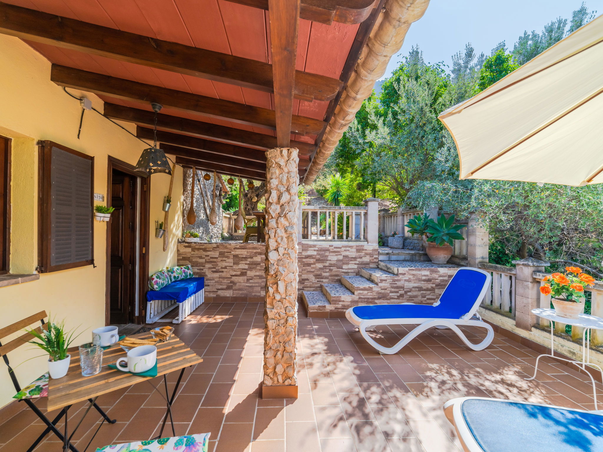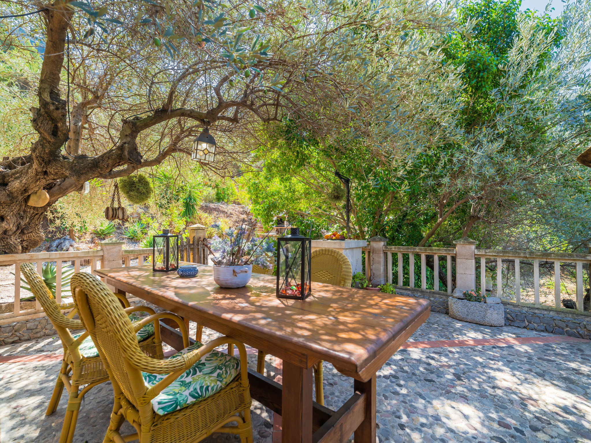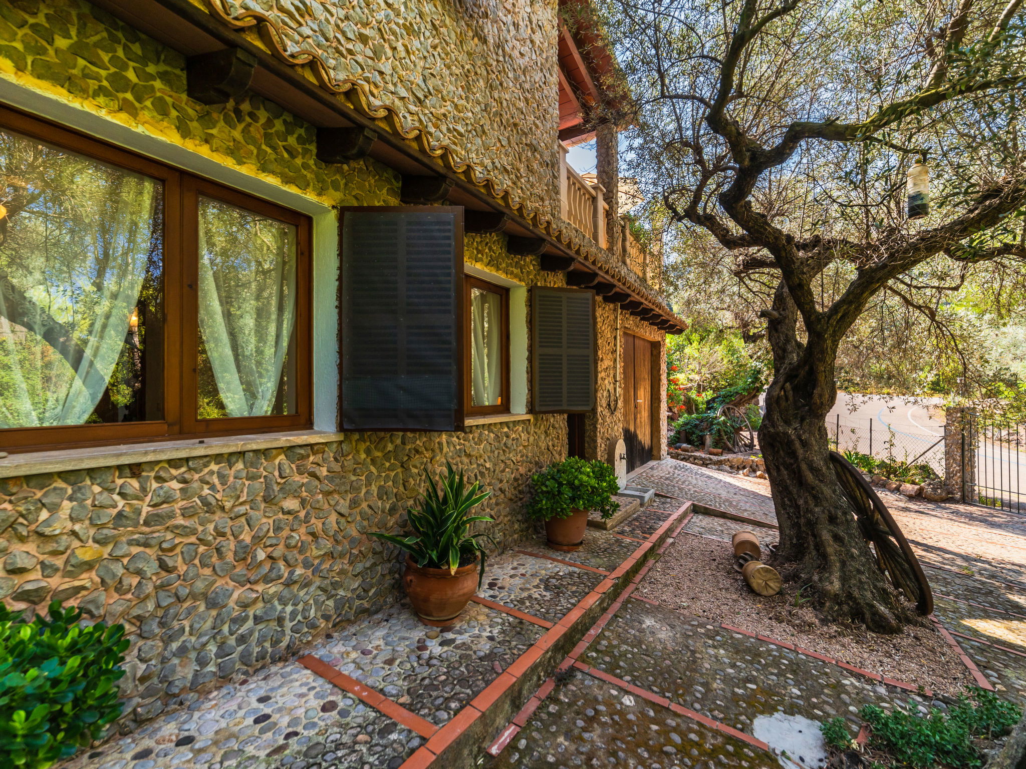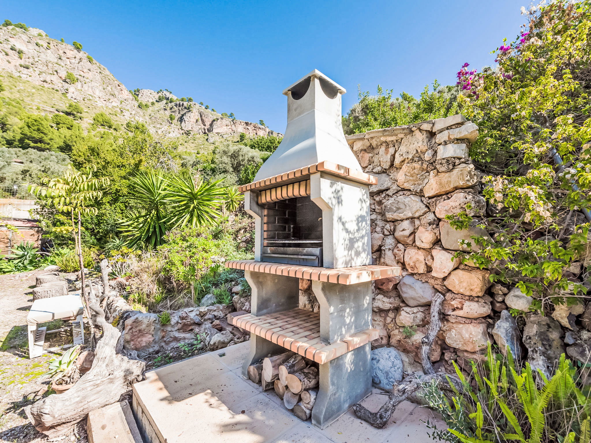 Cala Tuent 27 km from Lluc: Very cosy, rustic farm estate 2 storeys, detached, surrounded by trees and meadows. In the district of Cala Tuent, in a secluded, quiet, sunny position on top of a hill, 200 m from the sea, from the beach. Private: natural state property (fenced), natural garden (fenced). Patio, pergola, garden furniture, barbecue. In the house: internet access, WiFi, air conditioning, laundry, washing machine, tumble dryer. Steep, narrow motor access. Parking (for 2 cars) on the premises. Shop 26.9 km, grocery 26.9 km, supermarket 26.9 km, restaurant, bar 300 m, bakery 26.9 km, café, pub garden 300 m, bus stop "Lluc" 26 km, railway station "Soller" 40 km, shingle beach "Cala Tuent" 200 m. Walking paths from the house, cycle lane 100 m. Nearby attractions: Sa Calobra 6.4 km, Torrent de Pareis 7.6 km, Santuario de Lluc 26.1 km. Please note: car recommended. Suitable for families. Object suitable for 6 adults groups of teenagers on request only. Loading and unloading of baggage is possible at the holiday house. Animals in the neighbourhood. Main road close by. Airfield 75 km from the property.