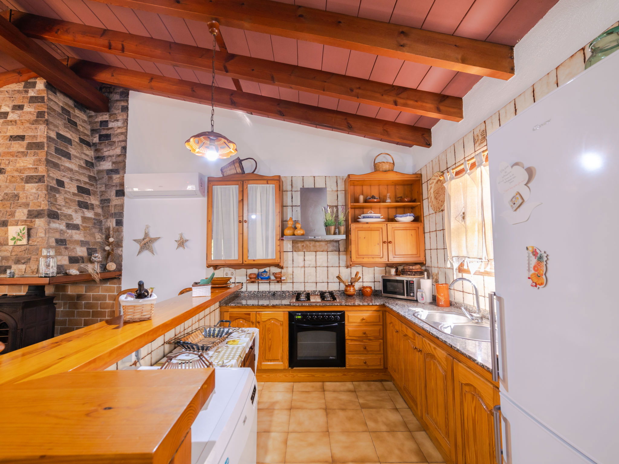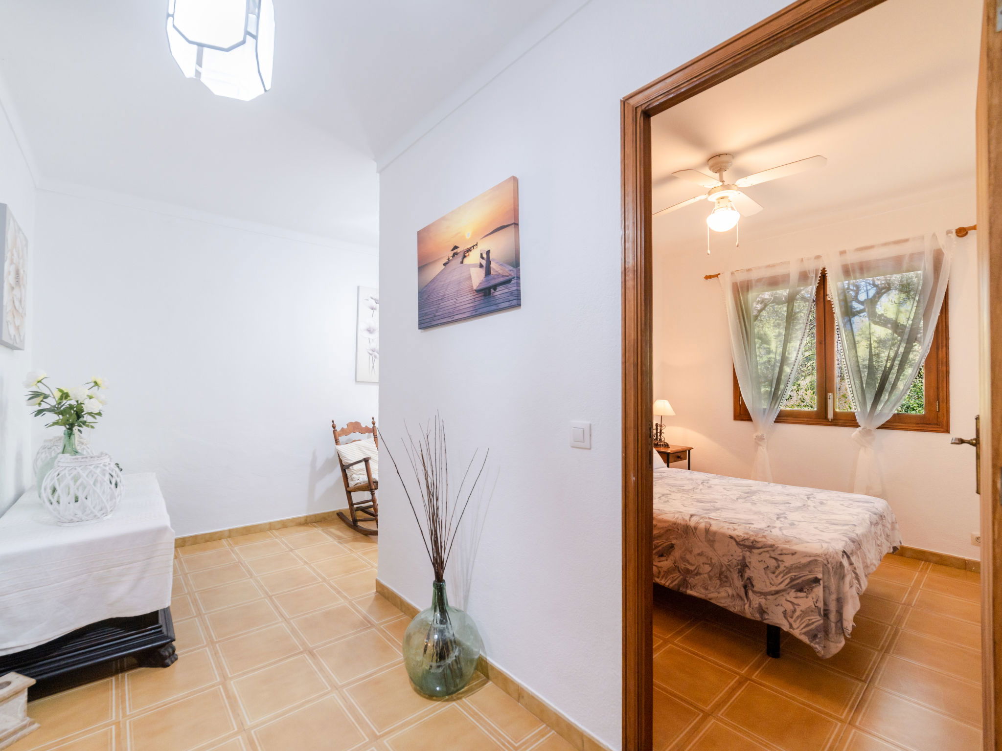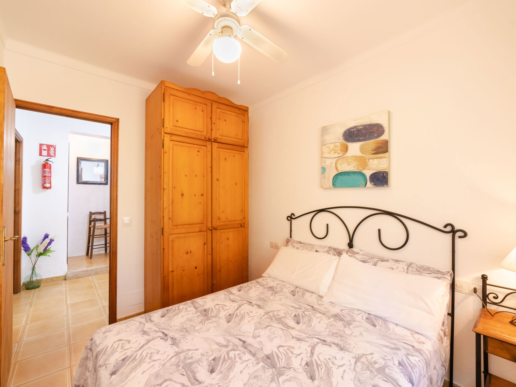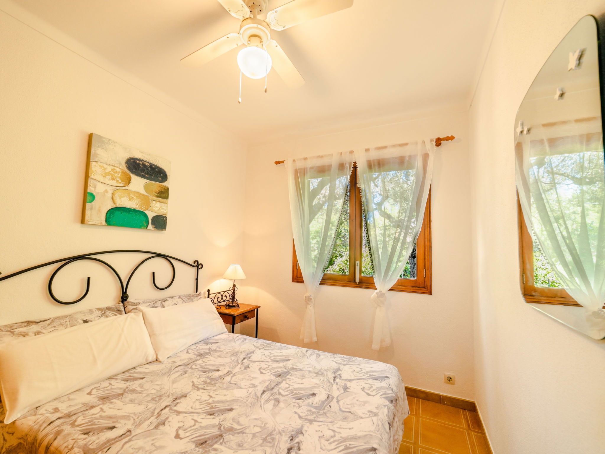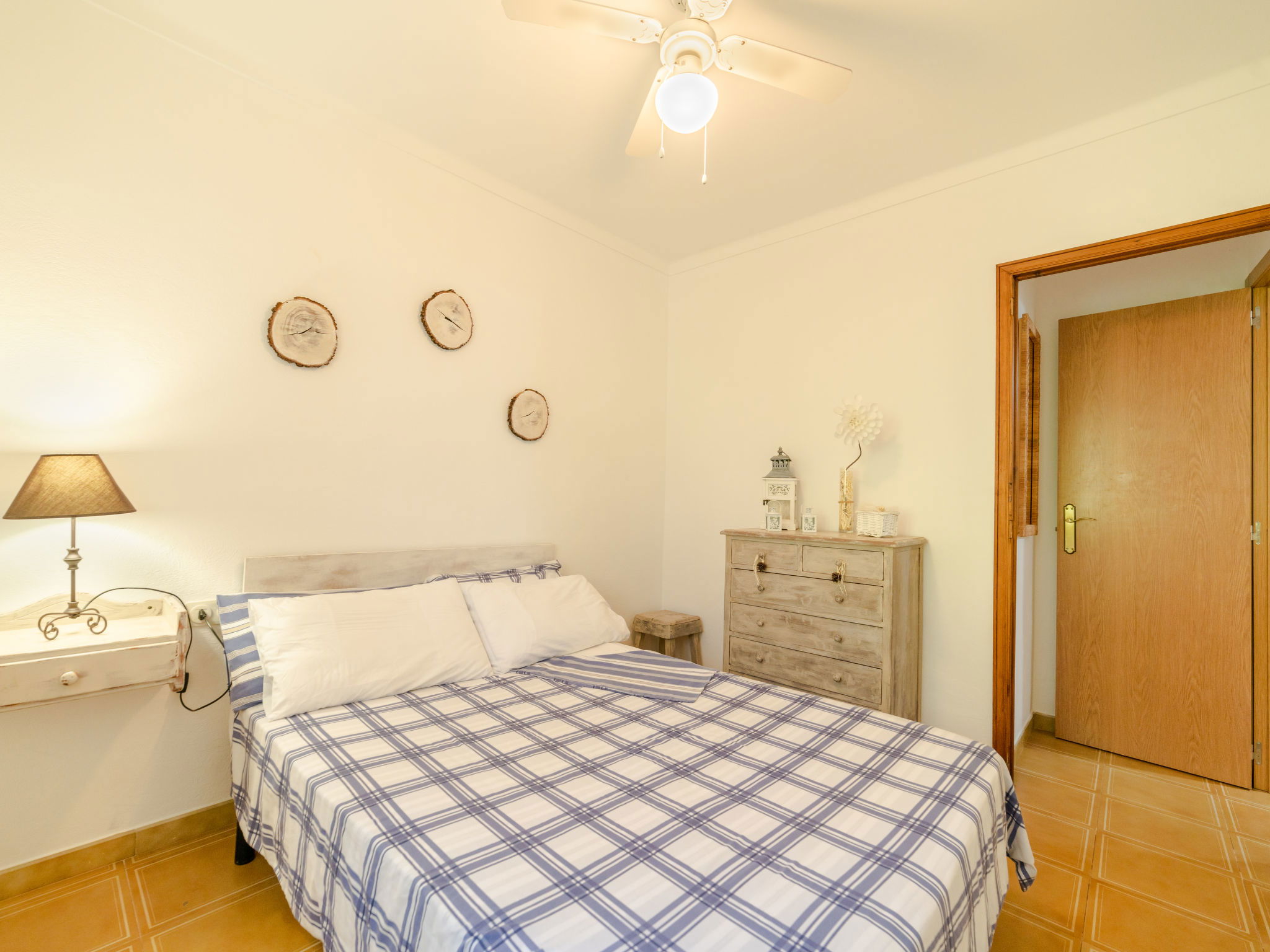 4-room house 130 m2. Very rustic and cosy furnishings: open large living/dining room with panoramic window with open-hearth fireplace, dining table, cable TV, digital TV, flat screen, air conditioning and forced-air heating. Exit to the patio. Open kitchen (4 hot plates, oven, dishwasher, toaster, kettle, microwave, freezer, electric coffee machine) with bar. Exit to the patio. On the lower ground floor: 1 double bedroom with panoramic window with 2 beds (90 cm), fan. 1 double bedroom with panoramic window with 1 french bed (135 cm), fan. 1 double bedroom with panoramic window with 2 beds (90 cm), fan. Bath/shower/WC. Comfortable furnishings in the country house style. This house has a portable A/C. Cala Tuent area is a little isolated from the city and has few services. Cala Tuent is the perfect place to relax in nature. ETV11203 // Reg. Nr.: ESFCTU0000070220002134360000000000000000000ETV/112033