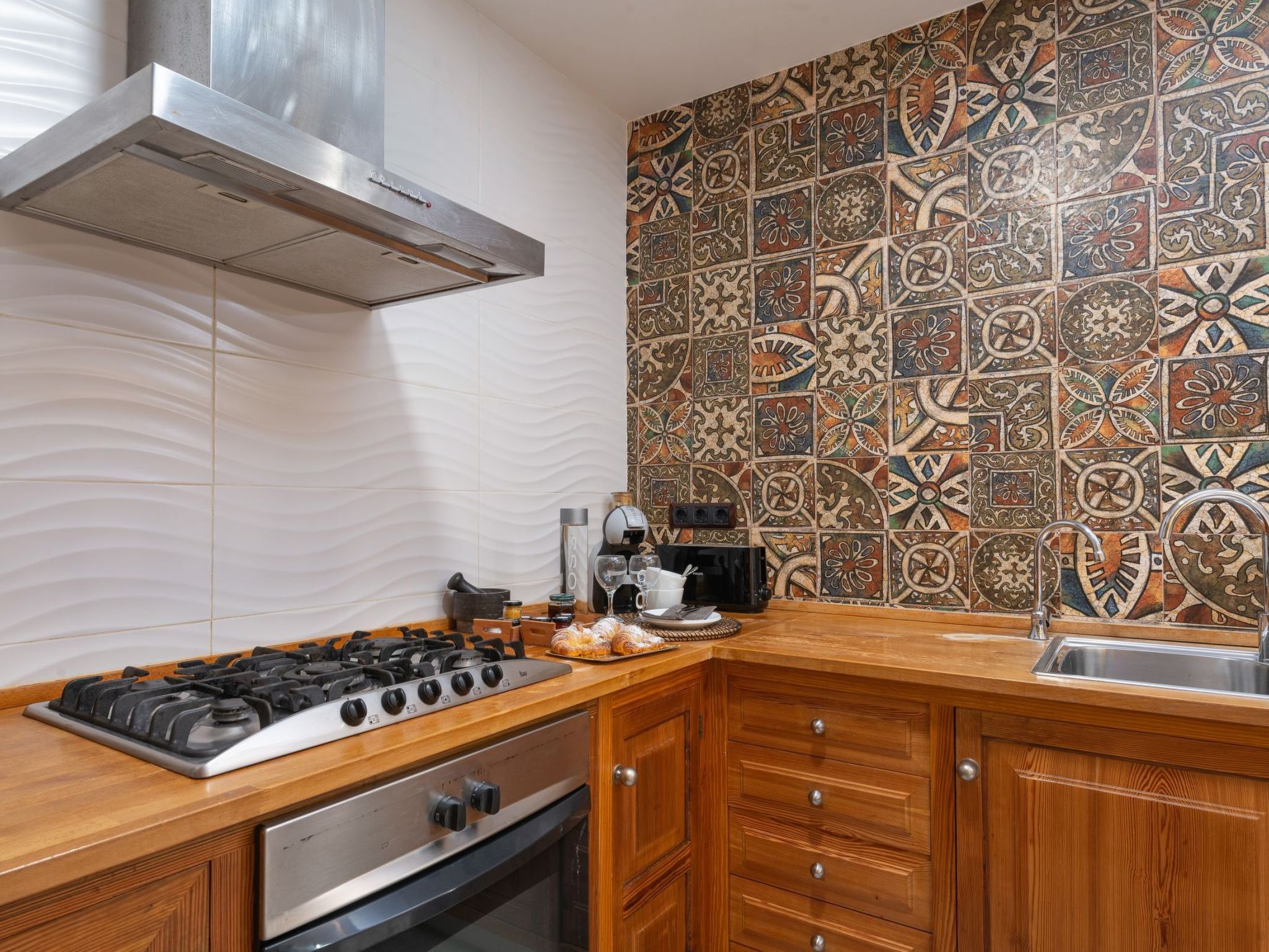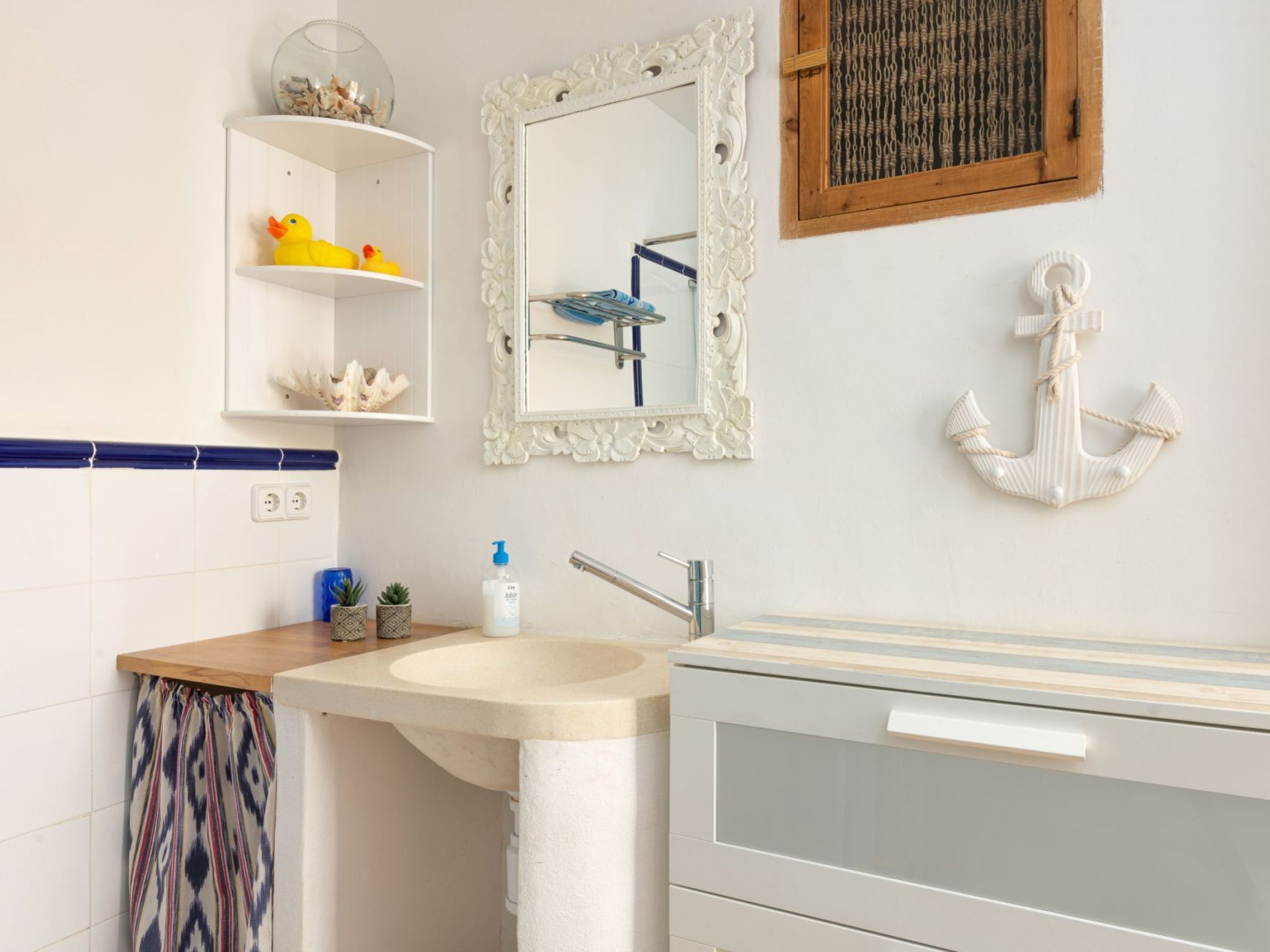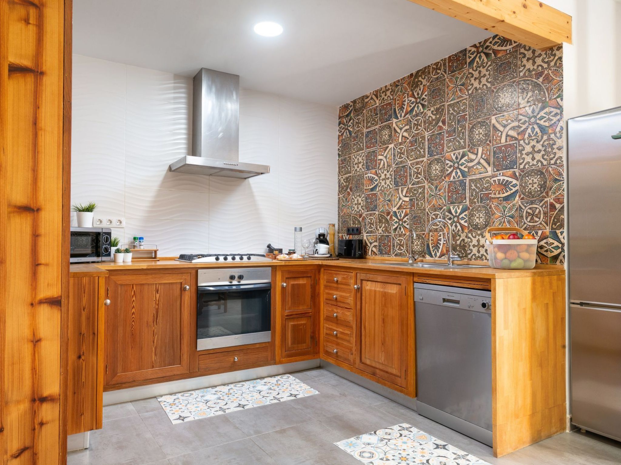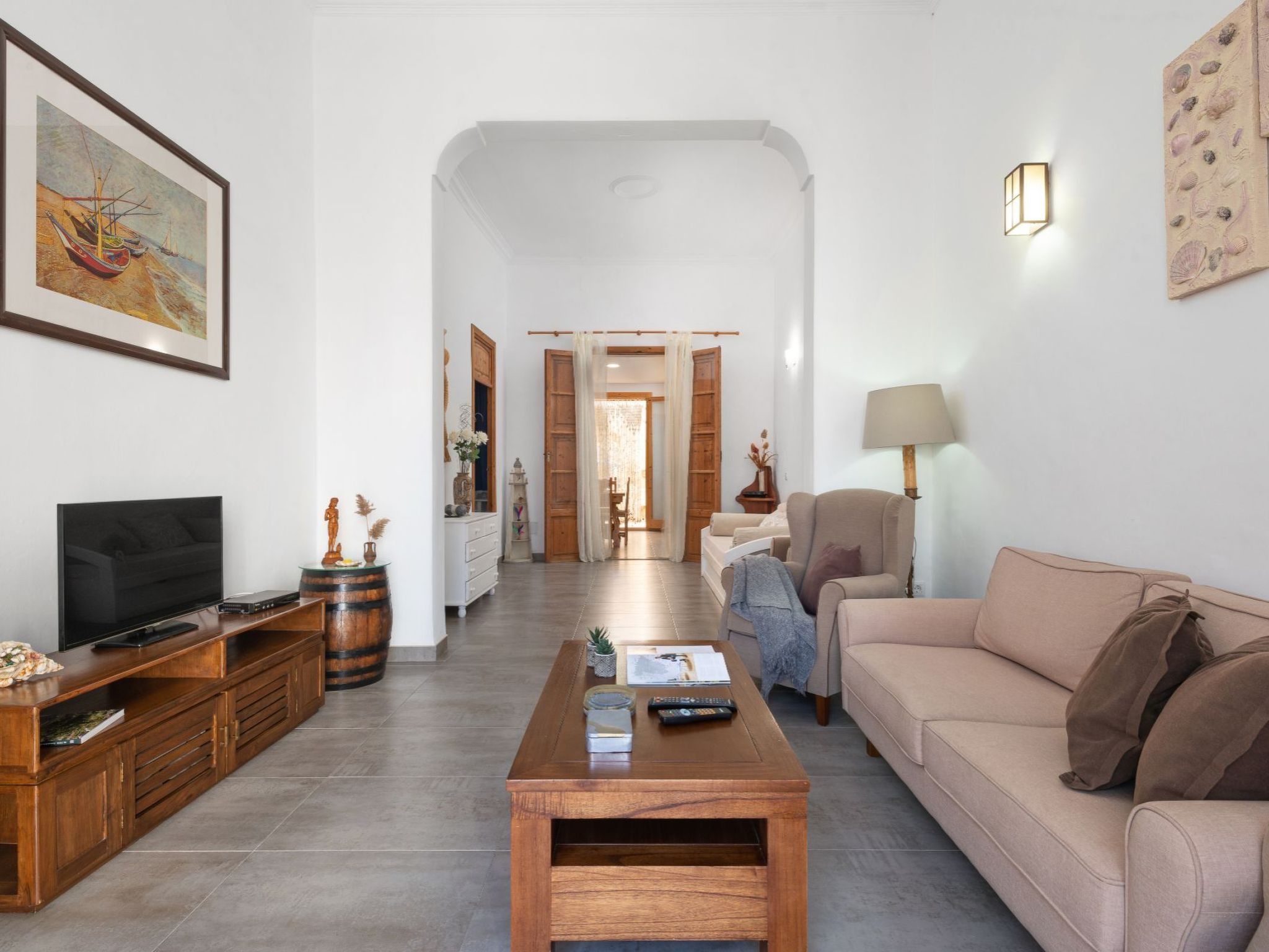 Inside, Ca Na Velutina welcomes you with its quaint charm and all the comforts of home. The space boasts several inviting living areas and a cozy, well-appointed double bedroom. A step further reveals a brightly renovated kitchen, equipped with everything you need for culinary exploration and dining pleasure. The house's unique layout and the breeze-cooling effect of its traditional construction ensure a comfortable stay even on the hottest days, without the need for air conditioning.