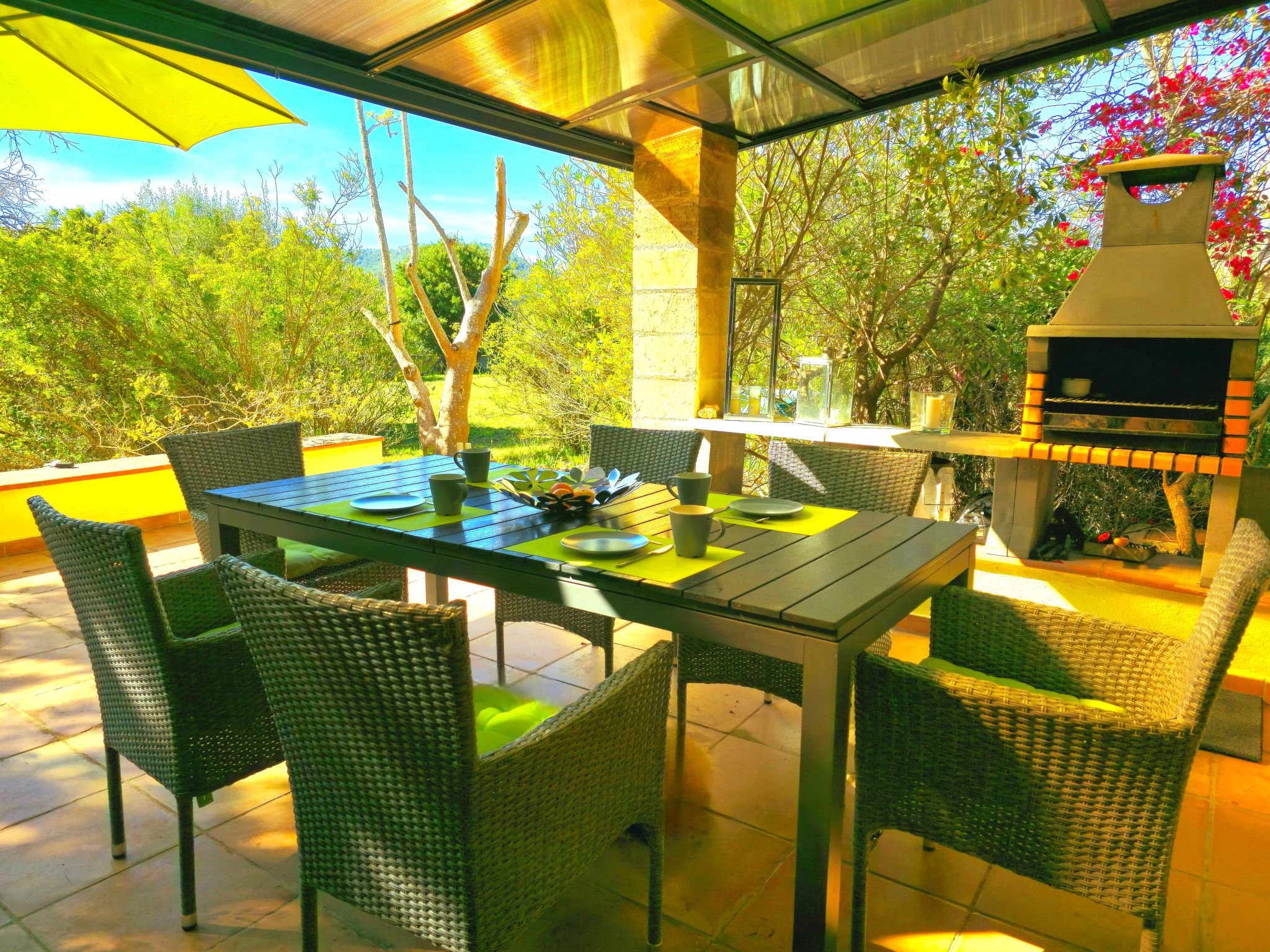 The spaciousness of the finca is perfect for anyone who wants to spend a harmonious holiday alone or with their children, with their parents or with friends. The 2 additional sun and shade terraces in the living/dining area with barbecue, electric grill, lockable patio cover and further terraces in the pool area offer plenty of space for socialising. The 8 x 4 metre pool with easy access via steps and outdoor shower invites you to take a refreshing dip. An automated pool control system ensures consistently good water quality. Depending on your preference, you can choose between sunny and shady spots on the many terrace areas and relax from the stresses of everyday life. In the hot season, the Persians protect all rooms from the sun's rays and still provide pleasant fresh air. The bedrooms are also equipped with air conditioning. The cosy open fireplace in the living/dining area and the oil central heating in all rooms ensure a comfortable atmosphere in the cooler seasons.