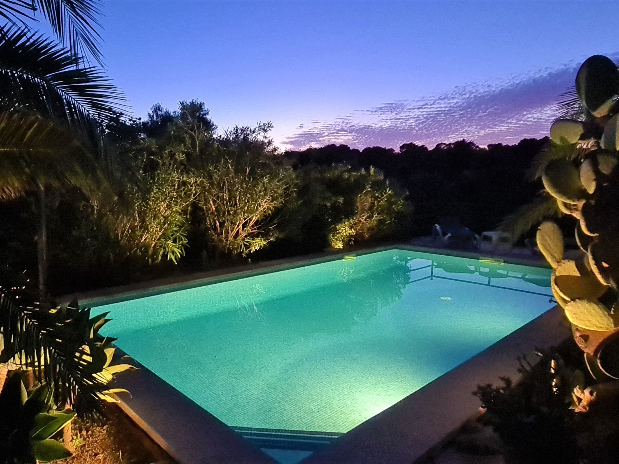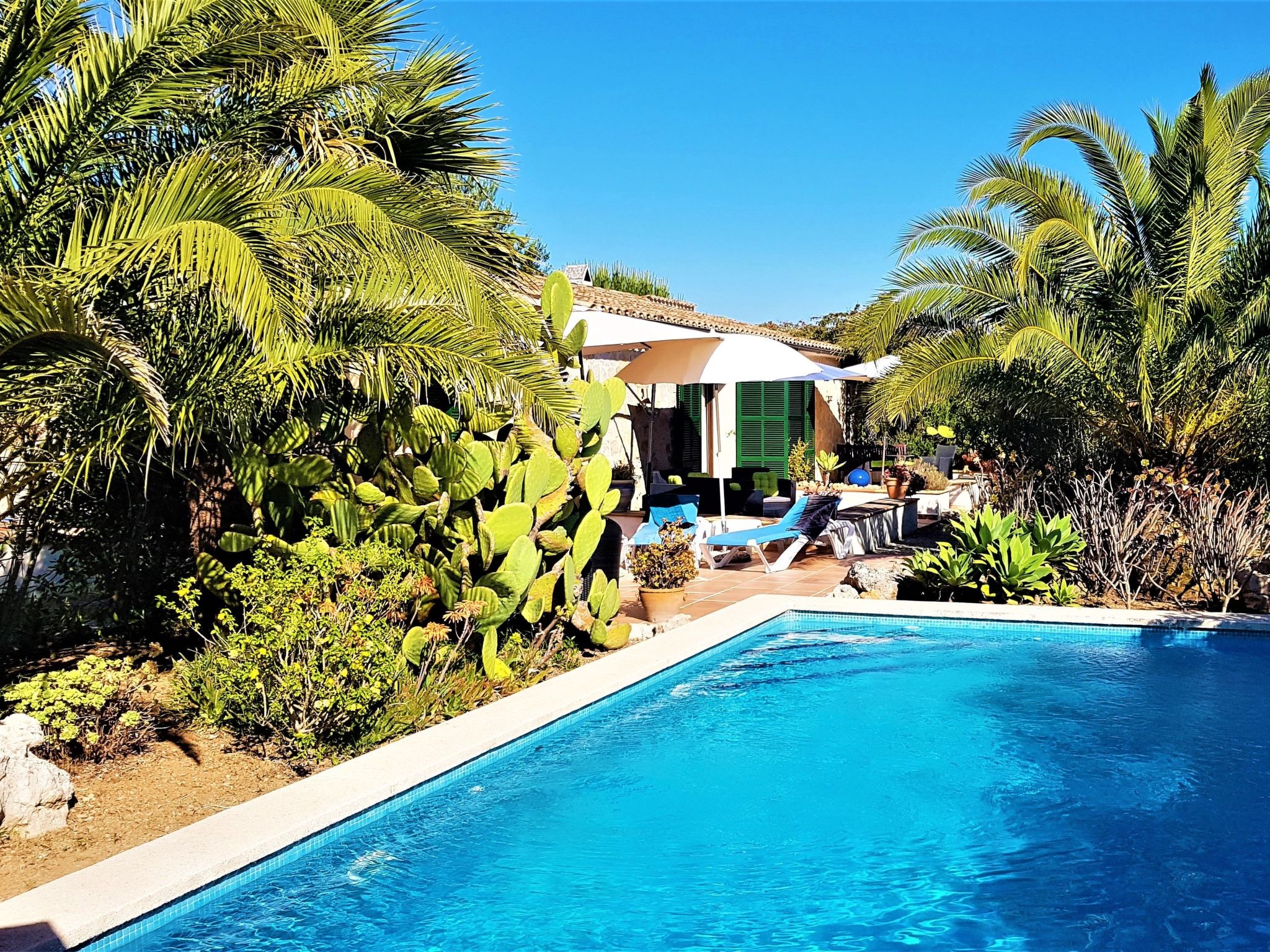 Your holiday begins when the automatic gate of the 7,100 m² plot opens and you drive along the small gravel path to the finca. The entire property is characterised by typical Mediterranean plants. You can explore and enjoy the Mallorcan countryside throughout the property, surrounded by numerous different palm trees, fig trees, almond trees, oleander bushes and much more. There are a total of 7 terrace areas around the entire house.