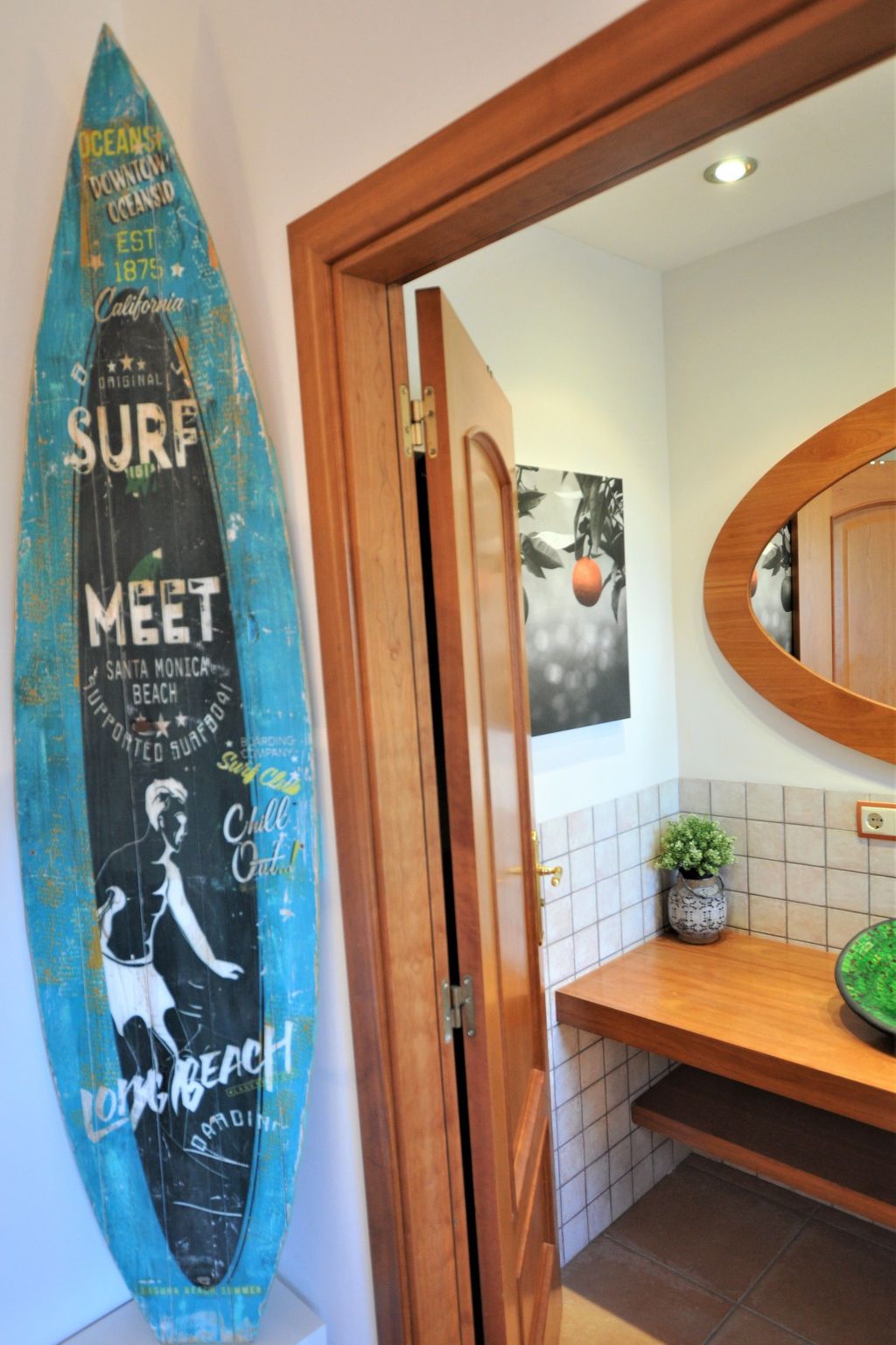 Inside, the clever room layout creates a relaxing atmosphere. The open-plan kitchen harmoniously adjoins the spacious and high-quality furnished living area with open fireplace (decoration). It is fully equipped and, with a large table, invites you to enjoy a cosy meal with family and friends. The technical equipment includes a Senseo coffee machine, an electric juicer, free WLAN (IBRED, LTE, unlimited download from April to October), satellite TV, flat screen, DVD player and high-quality air conditioning (hot/cold) with air filter, as well as a washing machine and a free safe. All windows have high-quality fly screens. For your entertainment you will find a small library (including children's books) and a collection of DVDs. The property has three charmingly furnished bedrooms, each with its own modern bathroom, separated by a door. The double bed is 200 x 200 cm and the single beds are 90 x 200 cm. All bedrooms have fitted wardrobes with large mirrors, wooden hangers, shoe racks and additional storage space. A baby cot is also available. The comfortable bathrooms, all with natural light, are equipped with showers without thresholds, hairdryers and towel warmers and also have large shelves. A bathtub is also available.