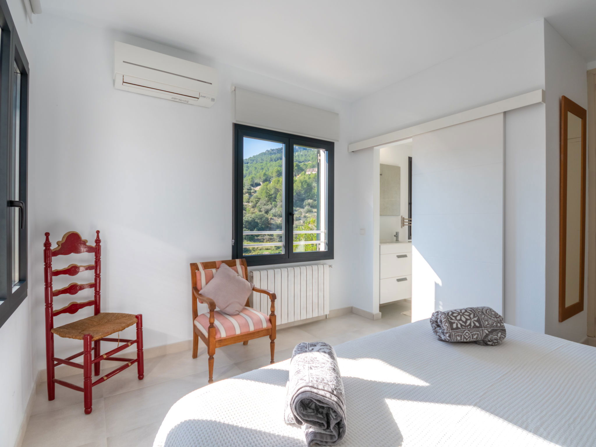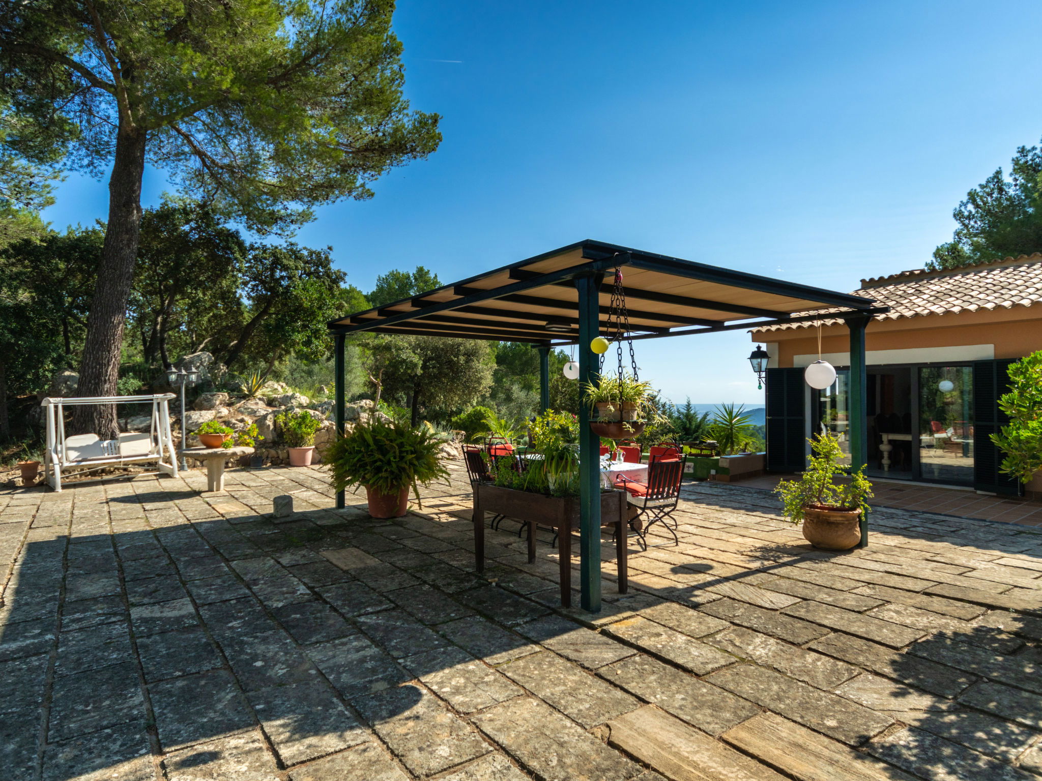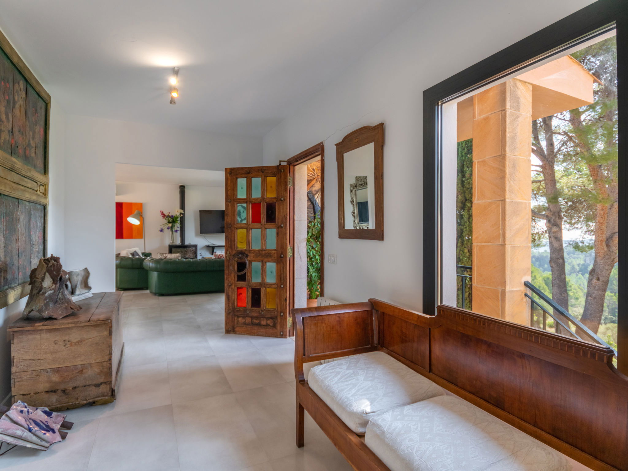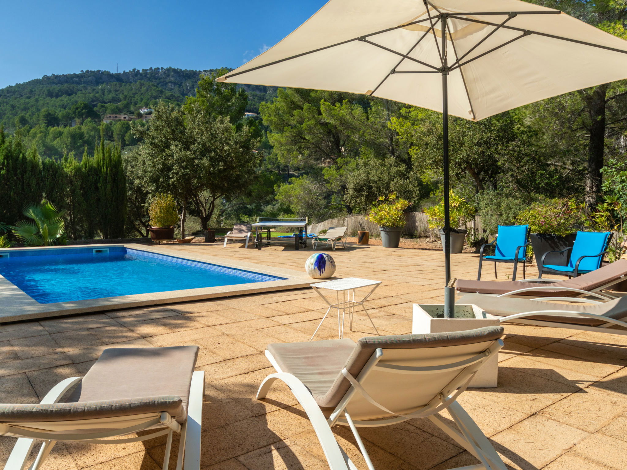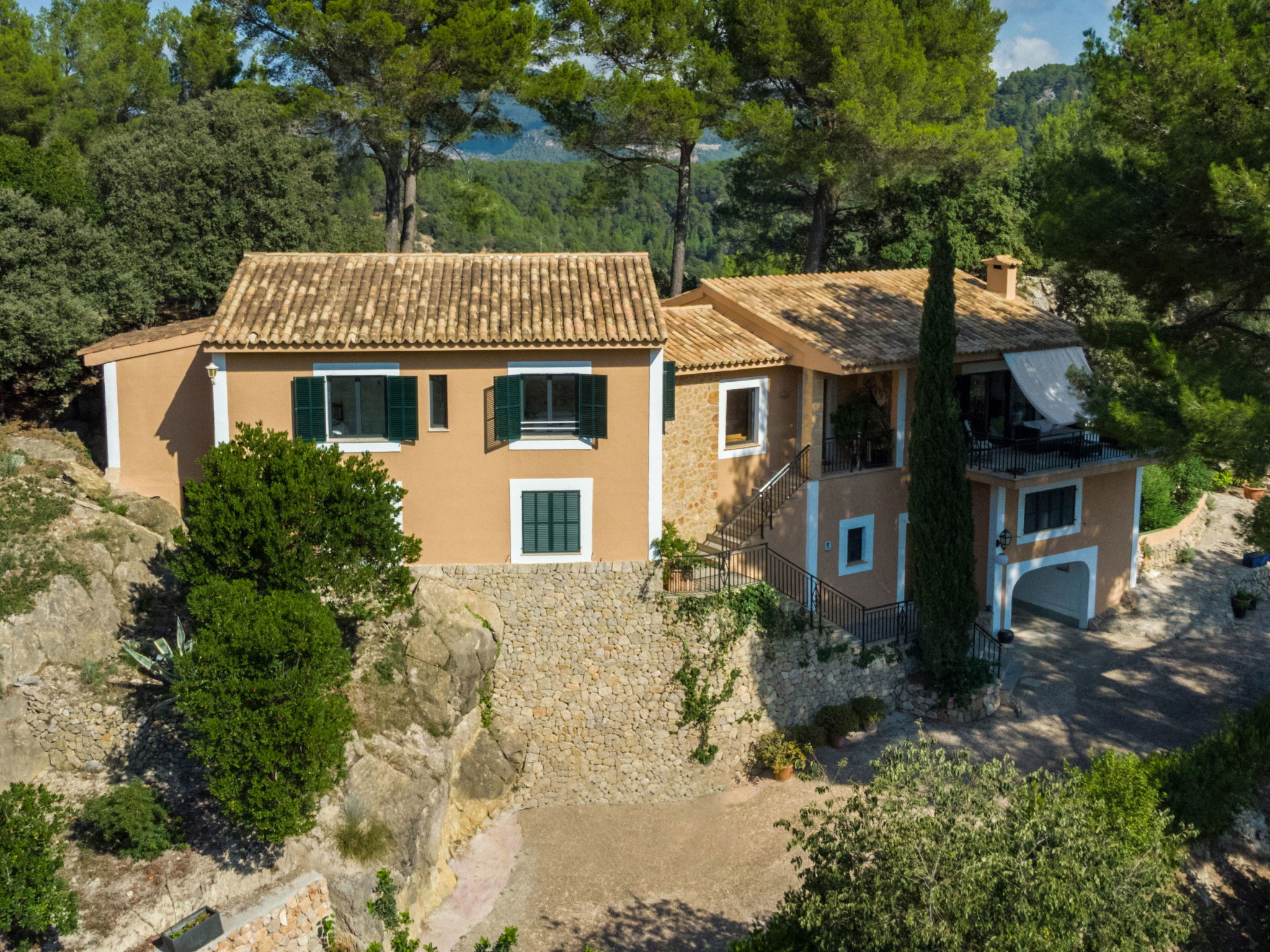 Farm estate "Short des Verger", detached. Above Esporles 3.5 km from the centre of Esporles, 19 km from the centre of Valldemossa, 26 km from the centre of Palma, on a slope, 13 km from the sea. Private: property 15'000 m2, garden (not fenced) wildlife garden and trees, natural garden, swimming pool (10 x 4 m, seasonal availability: 01.Jan. - 31.Dec.) with salt-electrolysis pool-cleaning system. Outdoor shower, table tennis. In the house: central heating system, air conditioning. Parking on the premises. Shop 4.5 km, restaurant 4.5 km, bus stop "S'esgleita" 6 km, sandy beach "Playa de Palma" 28 km pebble beach "Port de's Canonge" 13 km. Hiking paths: Camí des Correu 4.5 km. Please note: car recommended.