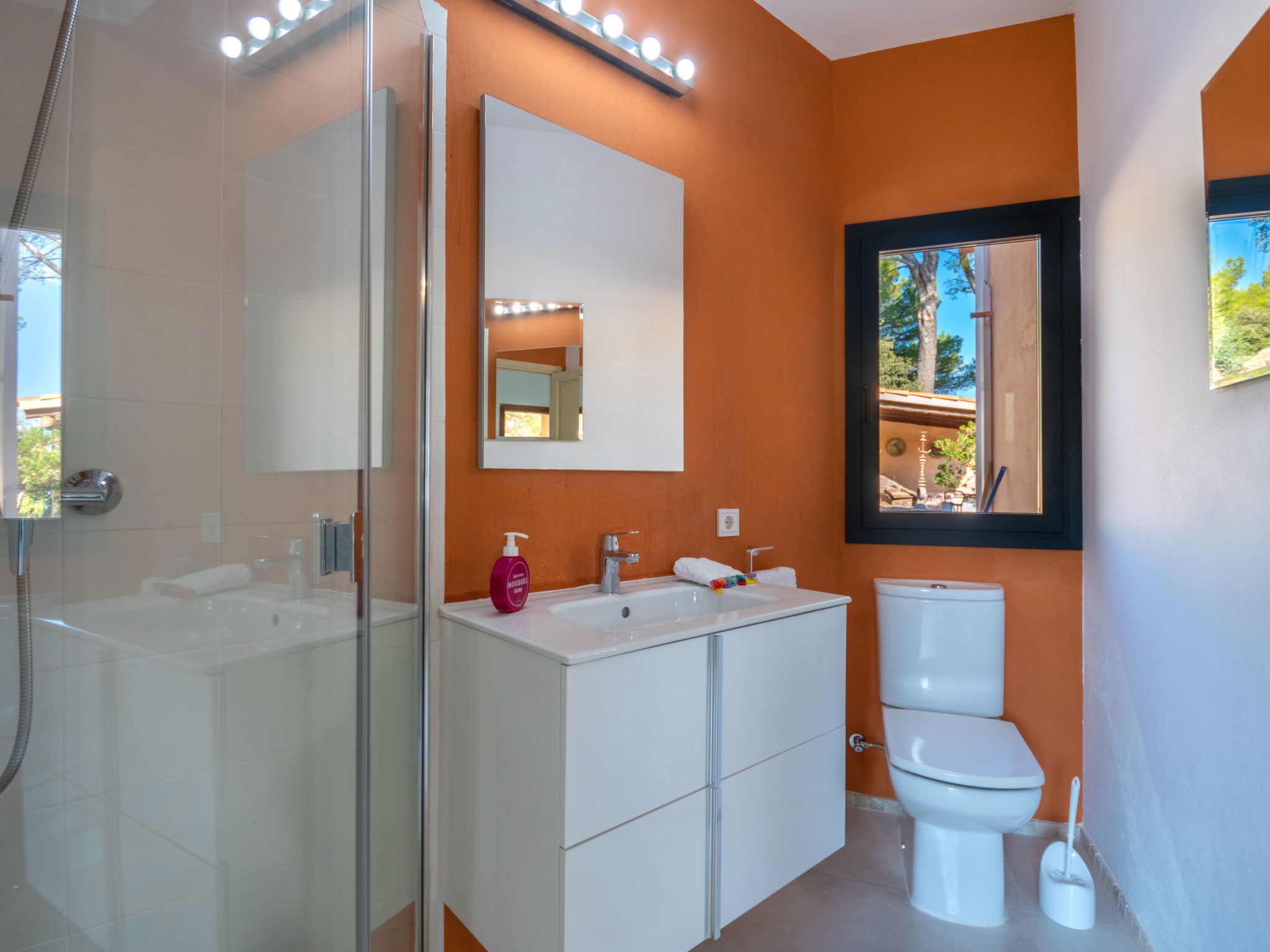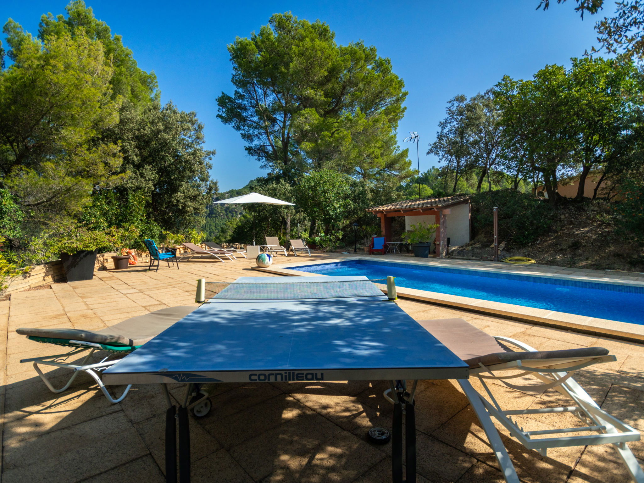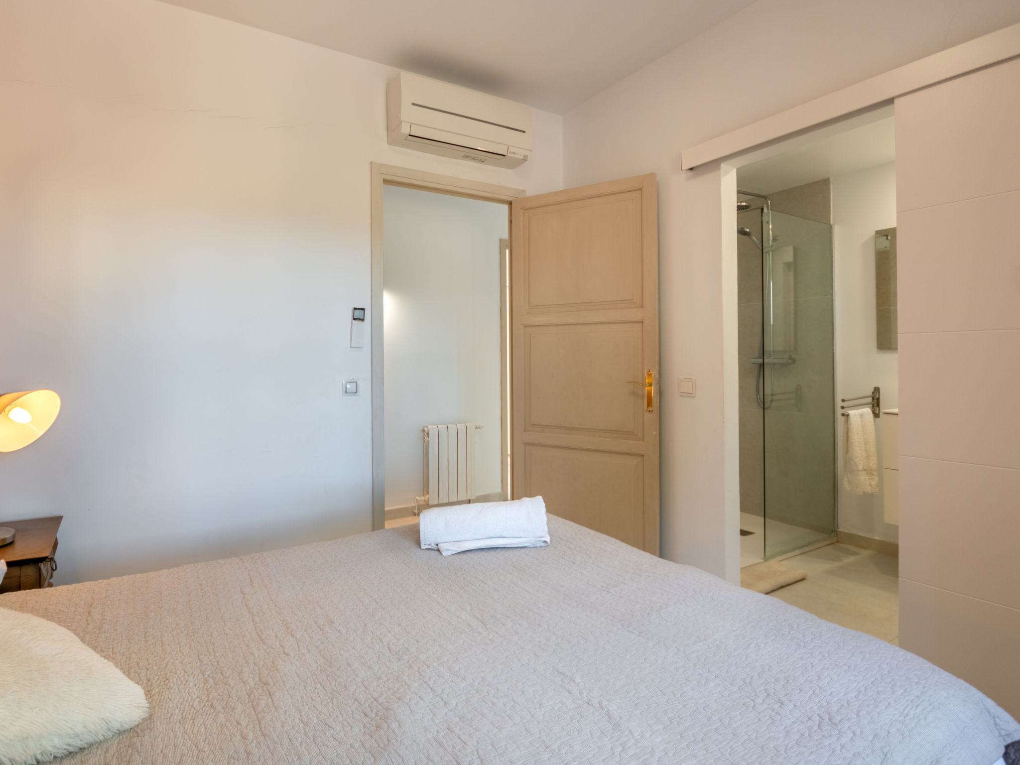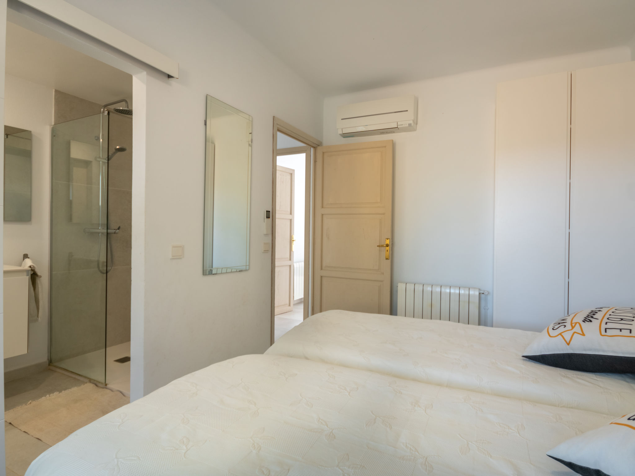 Farm estate "Short des Verger", detached. Above Esporles 3.5 km from the centre of Esporles, 19 km from the centre of Valldemossa, 26 km from the centre of Palma, on a slope, 13 km from the sea. Private: property 15'000 m2, garden (not fenced) wildlife garden and trees, natural garden, swimming pool (10 x 4 m, seasonal availability: 01.Jan. - 31.Dec.) with salt-electrolysis pool-cleaning system. Outdoor shower, table tennis. In the house: central heating system, air conditioning. Parking on the premises. Shop 4.5 km, restaurant 4.5 km, bus stop "S'esgleita" 6 km, sandy beach "Playa de Palma" 28 km pebble beach "Port de's Canonge" 13 km. Hiking paths: Camí des Correu 4.5 km. Please note: car recommended.