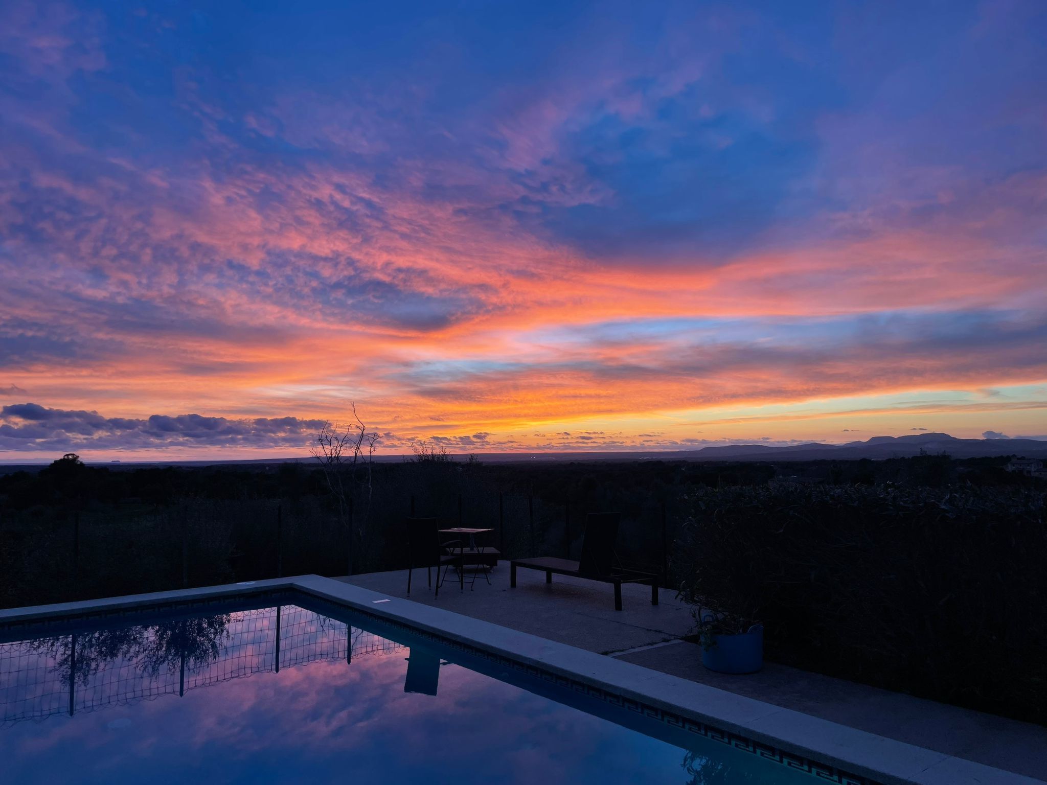 "Moli de sa Cova", 8-room farmhouse 160 m2. Object suitable for 9 adults. Spacious and bright, beautiful and rustic furnishings: living/dining room with satellite TV and gas heating. Exit to the patio. Interconnecting room with satellite TV and gas heating. 1 double bedroom with 1 french bed (1 x 150 cm, length 200 cm), bath/WC, gas heating and fan. 1 double bedroom with 1 double bed (1 x 180 cm, length 200 cm), bath/WC and gas heating. 1 double bedroom with 2 beds (90 cm, length 200 cm), gas heating. Interconnecting room, Low door height 130 cm with 1 bed (100 cm, length 190 cm), 1 double bed (1 x 150 cm, length 190 cm), gas heating. Kitchen (oven, dishwasher, 4 ceramic glass hob hotplates, toaster, kettle, microwave, electric coffee machine). Exit to the patio, to the swimming pool. Bath/WC. Gas heating. Natural stone floors. Comfortable furnishings in the country house style. Large terrace, large patio. Terrace furniture, barbecue, deck chairs (7), covered balcony, sitting area. Panoramic view of the mountains, the countryside and the ocean. Facilities: washing machine, iron, children's high chair, baby cot for up to 2 year olds, hair dryer. Internet (WiFi, free). Parking at the house. Please note: suitable for families. Non-smoking house. Instead of an enclosed bedroom, some sleeping areas are located in an open-plan area (gallery, alcove, etc.). VT/429 // Reg. Nr.: ESFCTU000007008000591767000000000000000000000VT/4290