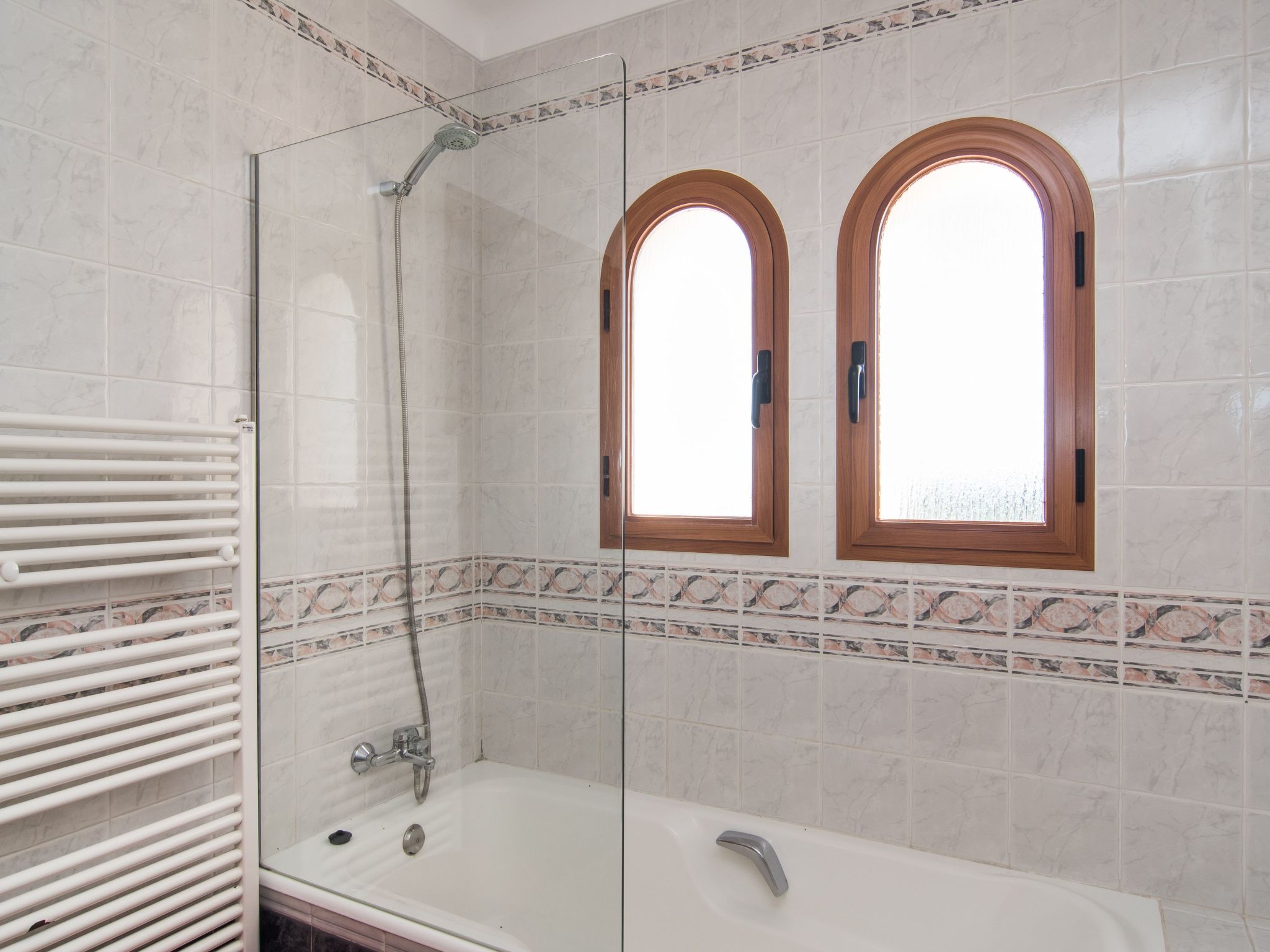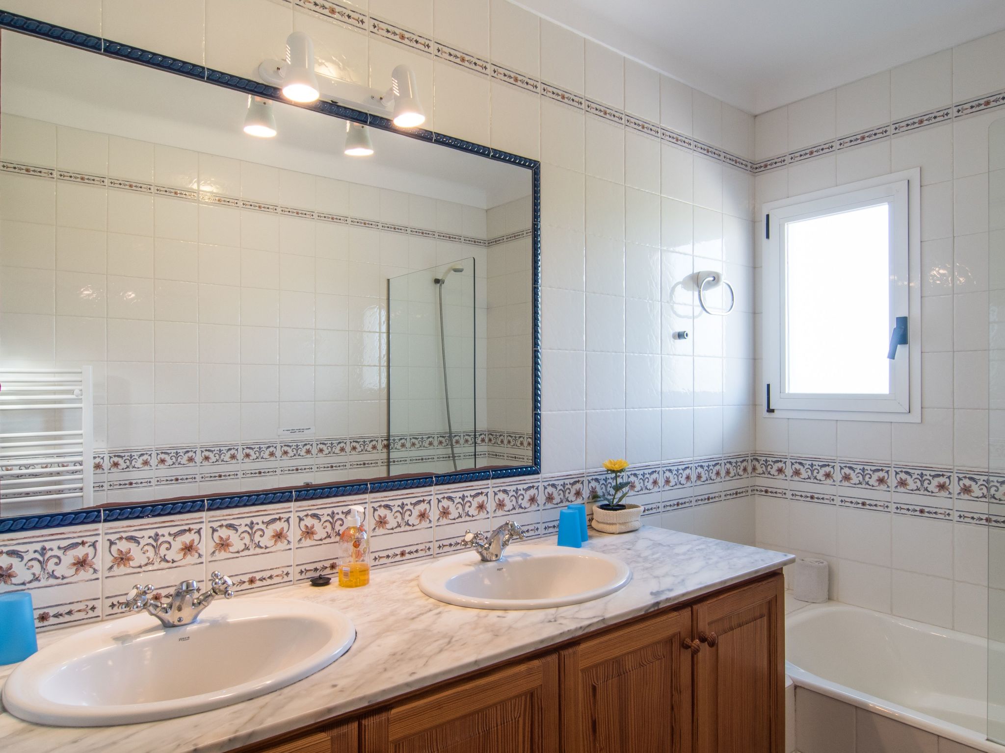 The house has 170 m² living space, spread over two floors and can accommodate 6 people. On the ground floor there: the hall, the kitchen, which is fully equipped (oven, refrigerator, dishwasher, kettle, toaster, microwave ...), a bathroom (with toilet and shower), in that toilet are also washing machine, a dining room and lounge with TV, satellite, dvd, play, books, sofas, fireplace ... On the floor are 3 bedrooms, two of them are equipped with two single beds (90 cm wide each), ie in total there are 4 beds of 90 cm over 2 bedrooms, and the other bedroom has a double bed of 1.50 cm siute bathroom (with bath, video, toilet ...). All bedrooms have air conditioning. On the floor there is another bathroom with bath, wc, vide ... and two terraces.