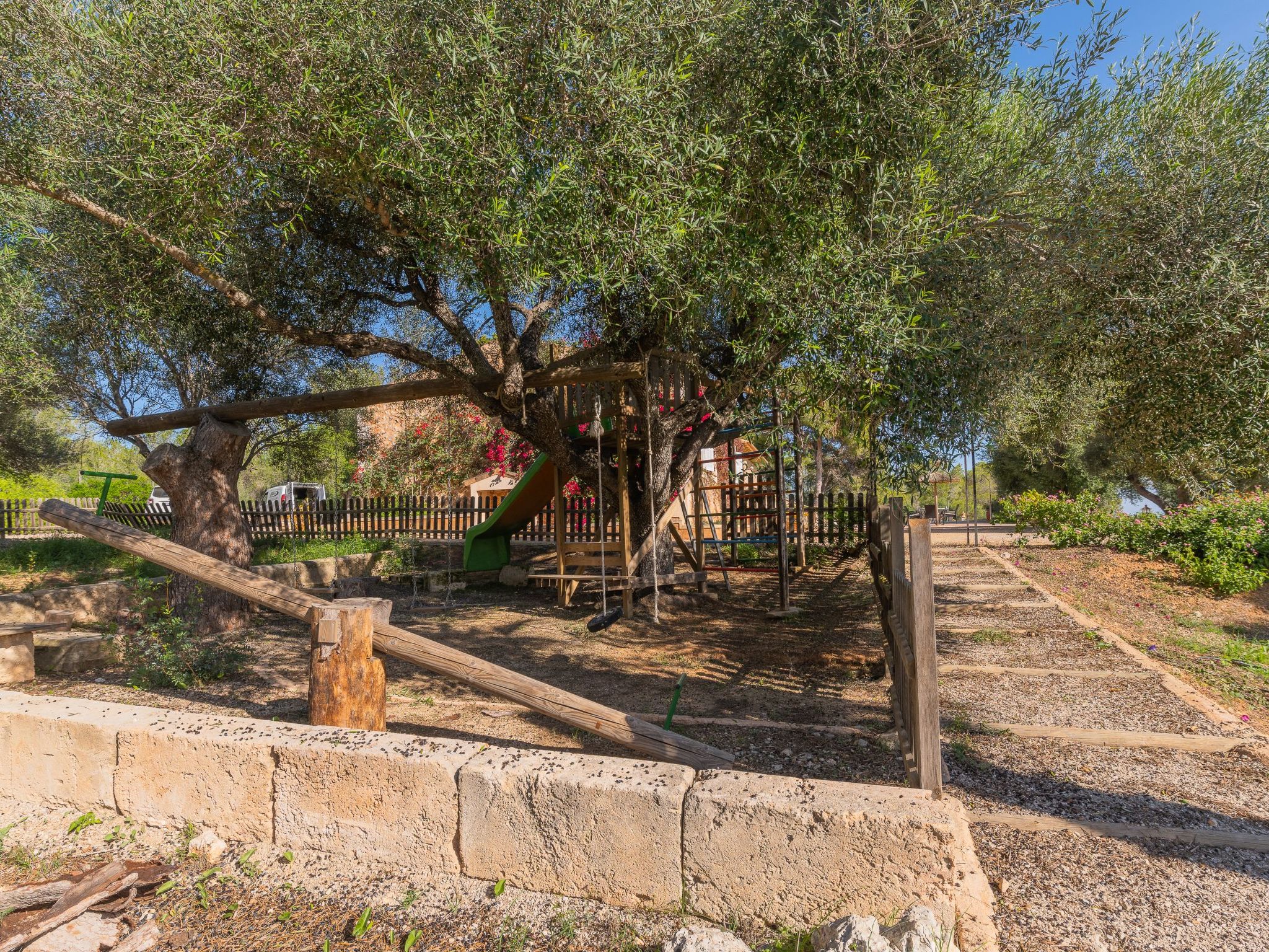 The inviting veranda with another dining table and chill-out area overlooks the pool and Calas de Mallorca with the coast in the background. There is a walled-in barbecue for cosy barbecue evenings. The highlight for the little ones is the great private children's playground with swing, slide and play area.