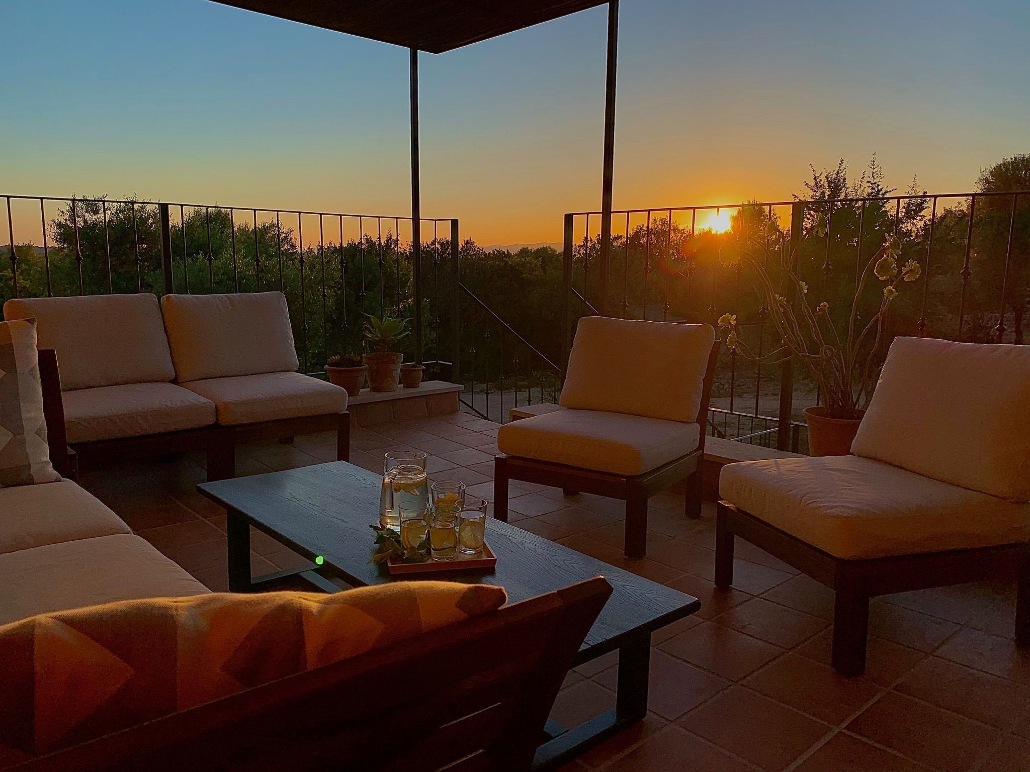 Enjoy the charm of an old Mallorcan farmhouse without sacrificing modern comforts. Find your favourite spot and relax on the large terrace, by the pool or on the spacious plot on a beautiful slope. The large garden with mature trees offers cosy seating areas. Or get active on the boules court and at the table tennis table.