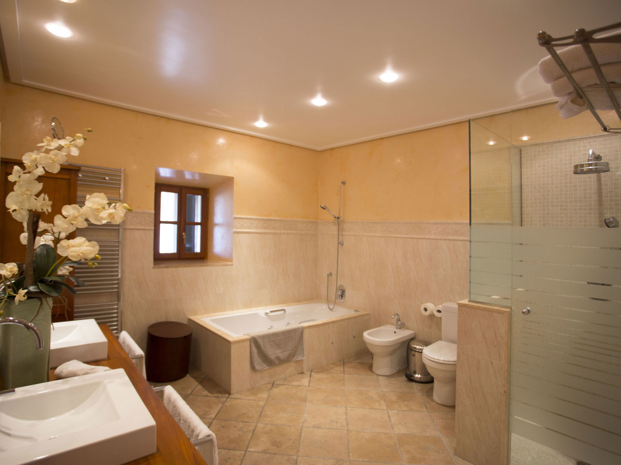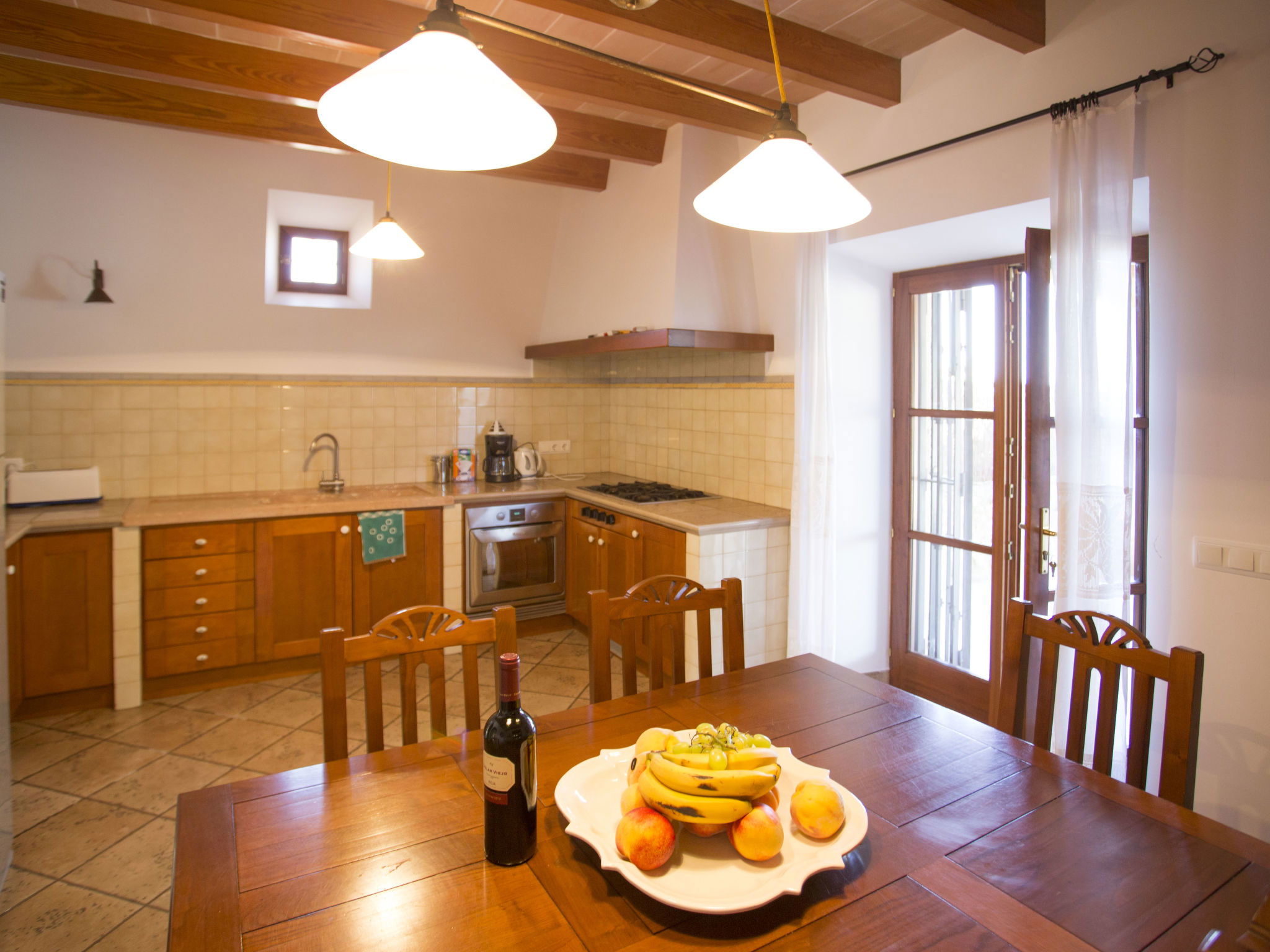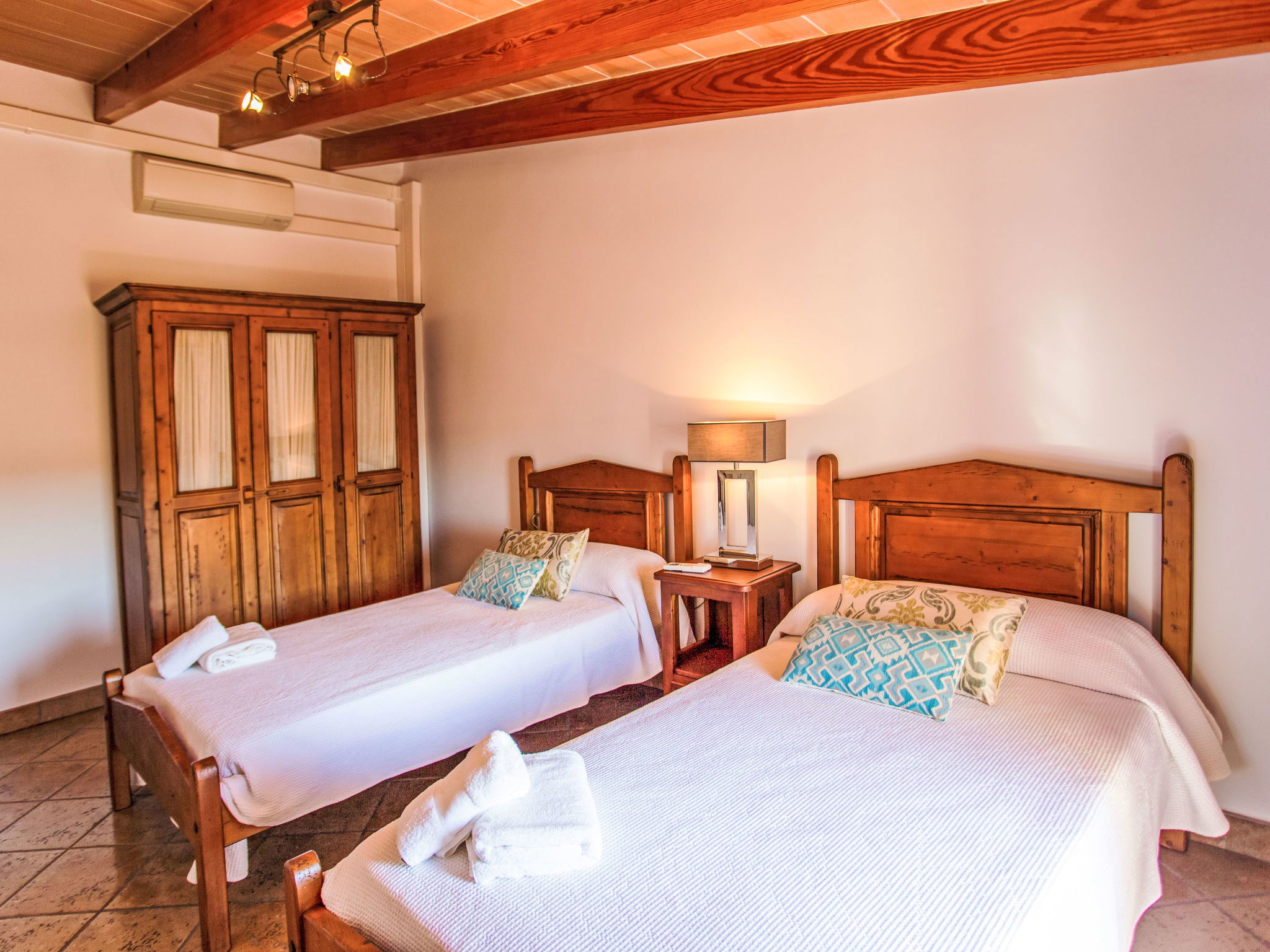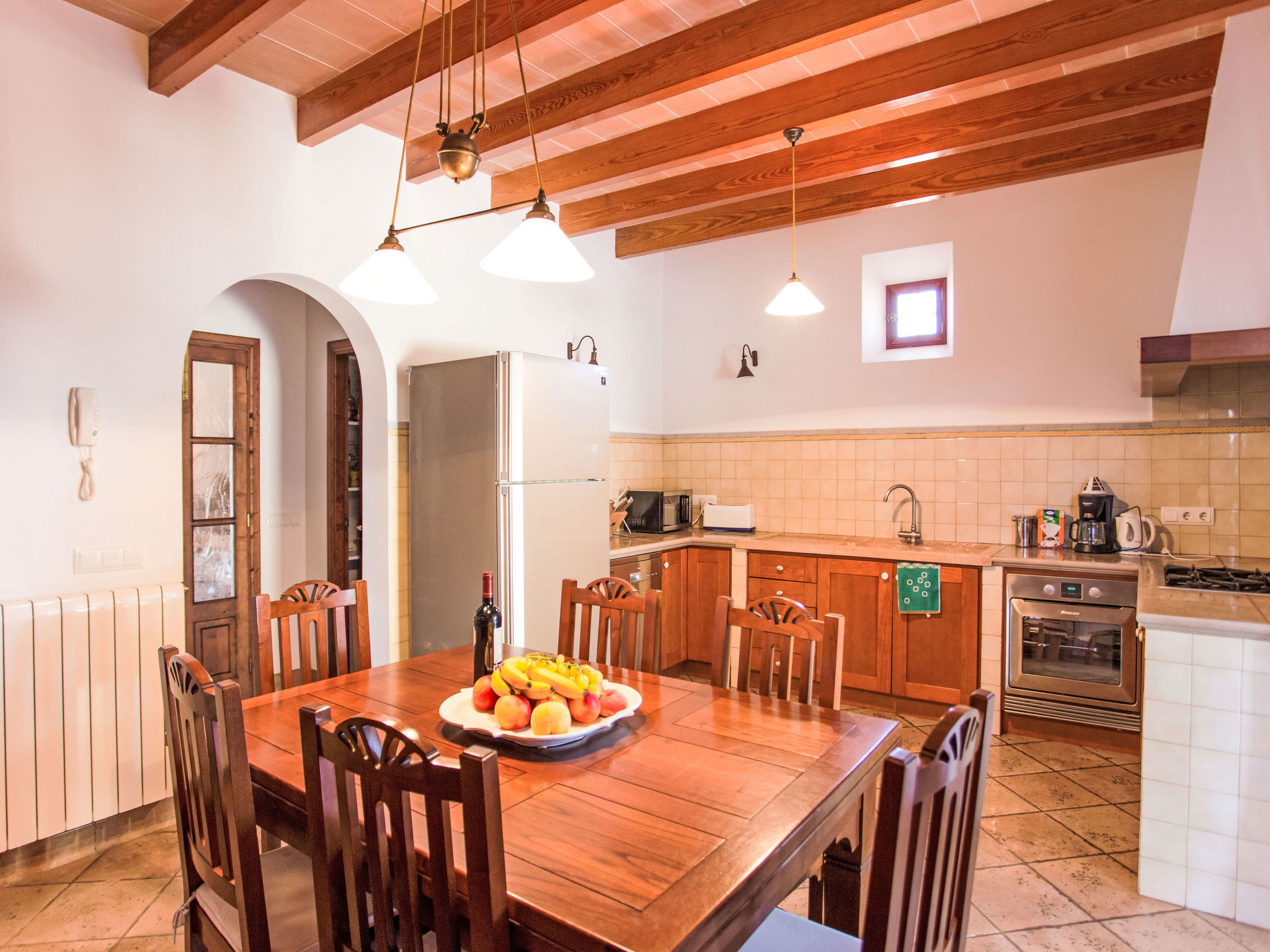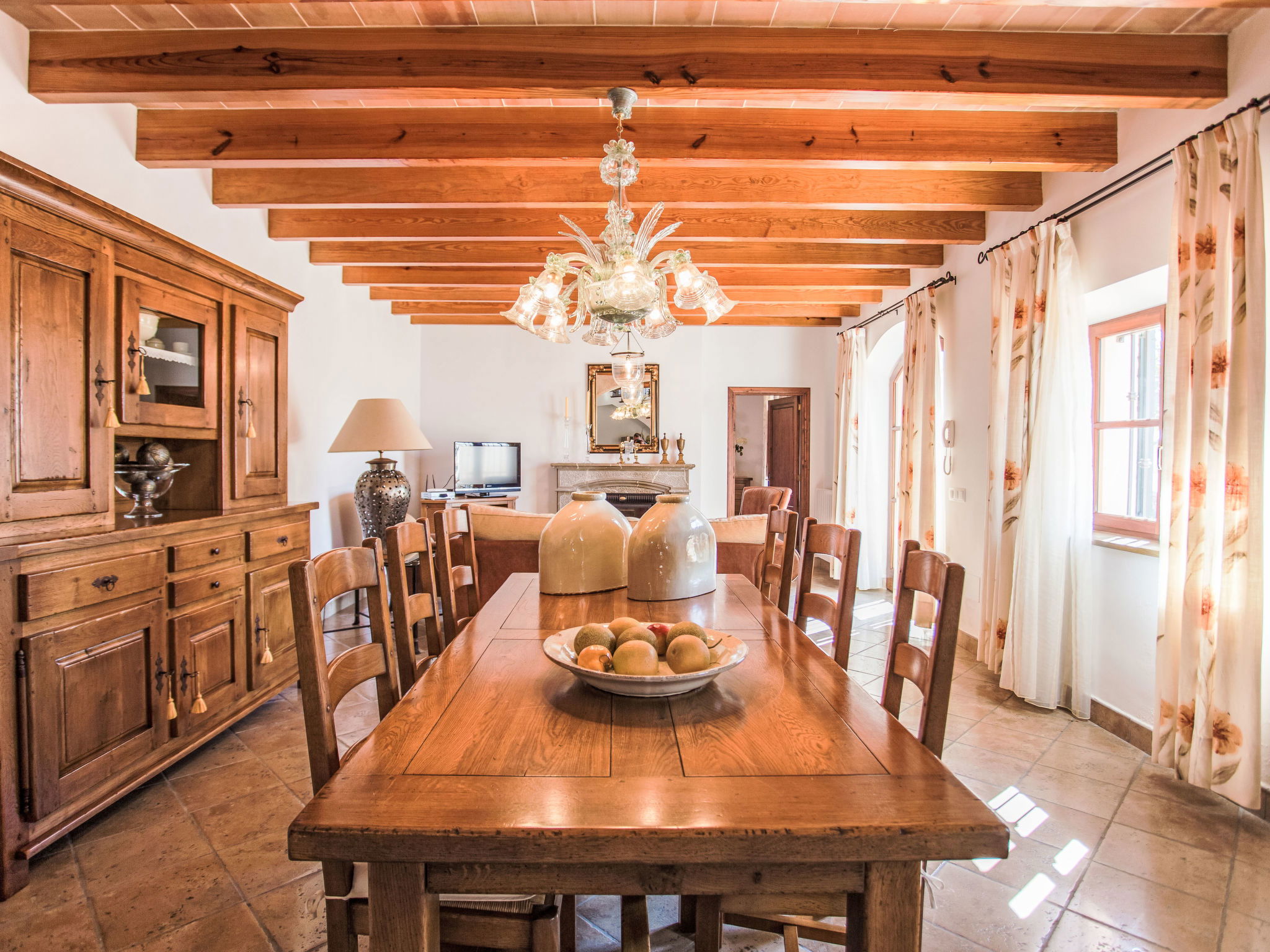 "Son Peroti", 6-room house 250 m2. Object suitable for 8 adults. Spacious and bright, comfortable and rustic furnishings: lounge. Dining room with open-hearth fireplace, dining table, satellite TV, paraffin heater, air conditioning and forced-air heating. Exit to the garden. 1 double bedroom with 1 french bed (1 x 160 cm, length 190 cm), air conditioning and forced-air heating. Large kitchen (oven, dishwasher, 4 ceramic glass hob hotplates, toaster, kettle, microwave, electric coffee machine). Bath/WC. Oil heating (extra), air-conditioning, forced-air heating. Upper floor: 2 double bedrooms, each room with 1 french bed (1 x 150 cm, length 190 cm), air conditioning and forced-air heating. 1 double bedroom with 2 beds (100 cm, length 190 cm), air conditioning and forced-air heating. Shower/bidet/WC, hydro massage bath. Air-conditioning, forced-air heating. Natural stone floors. Patio. Terrace furniture, balcony furniture, barbecue, deck chairs. Beautiful view of the countryside. Facilities: washing machine, iron, children's high chair, baby cot for up to 2 year olds, hair dryer. Internet (WiFi, free). Parking at the house. Suitable for families. ETV/1367