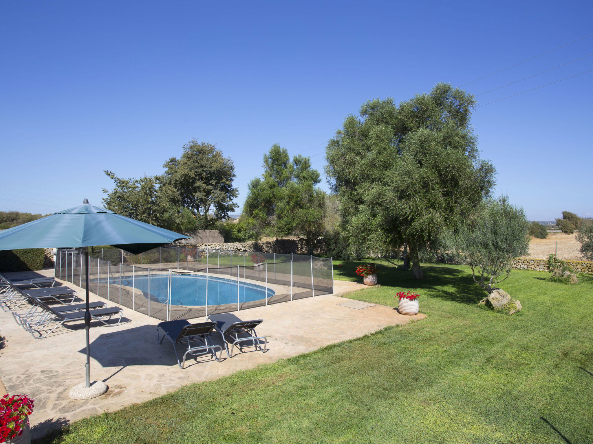 Manacor: Cosy, comfortable house "Son Peroti", 2 storeys, surrounded by trees and fields. On the outskirts Manacor, in a quiet position, 11 km from the sea, 11 km from the beach, in the countryside. Private: property (fenced), lawn for sunbathing, beautiful garden to relax, swimming pool (8 x 4 m, seasonal availability: 01.Mar. - 30.Oct.). Outdoor shower, patio, pergola, garden furniture, barbecue. In the house: internet access, WiFi, air conditioning. Parking on the premises. Shop 3 km, grocery 3 km, supermarket 3 km, restaurant 3 km, bus stop "Manacor" 3 km, railway station "Manacor" 3 km, sandy beach 13 km. Please note: car recommended. Suitable for families, suitable for seniors baby equipment (included). The owner does not accept any youth groups. Loading and unloading of baggage is possible at the holiday house. Airfield 46 km from the property.