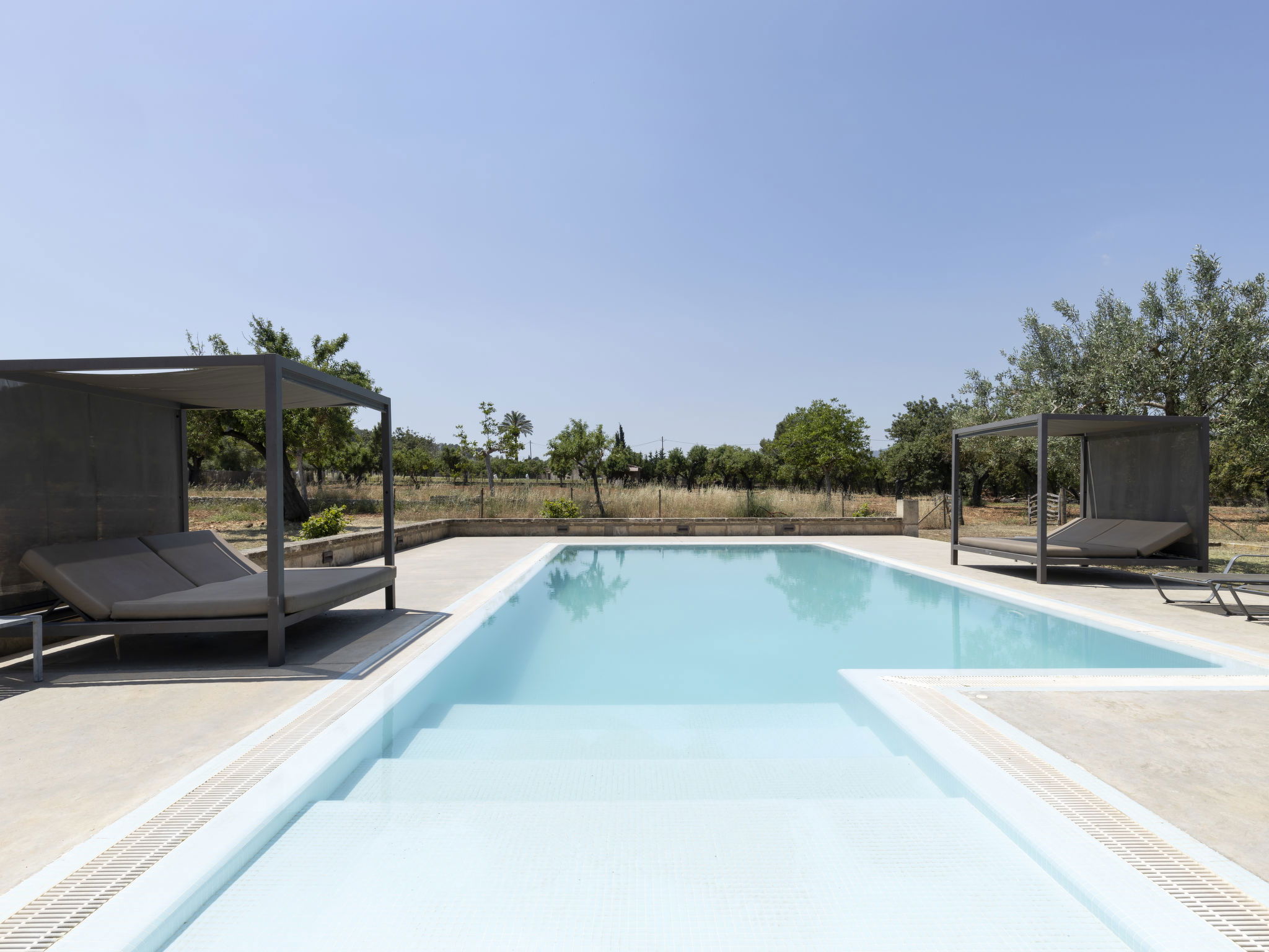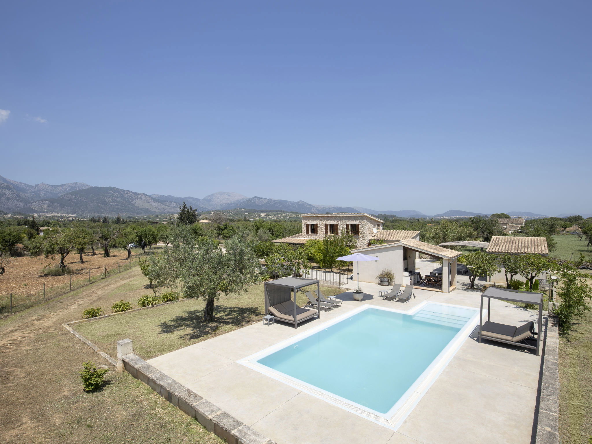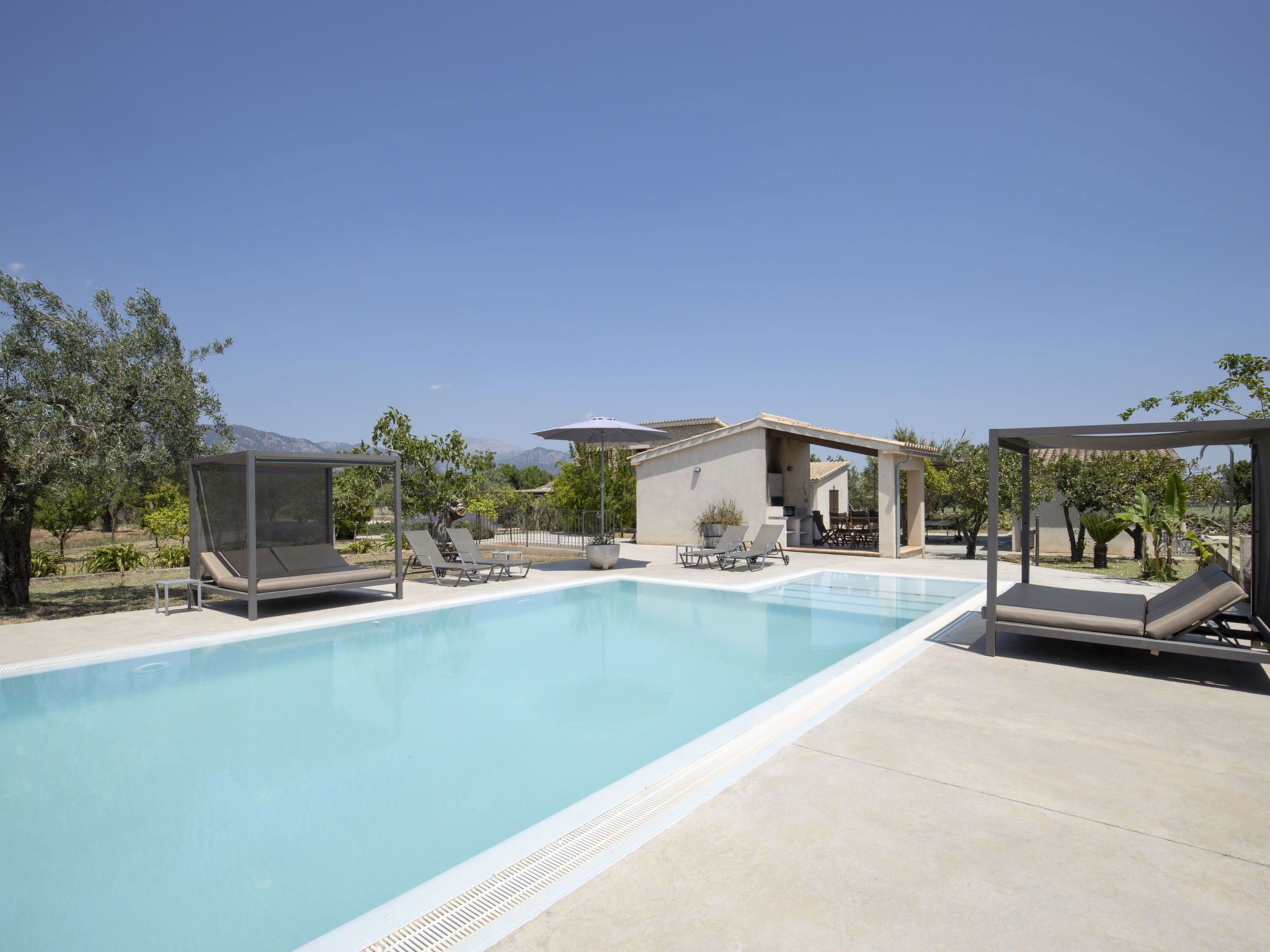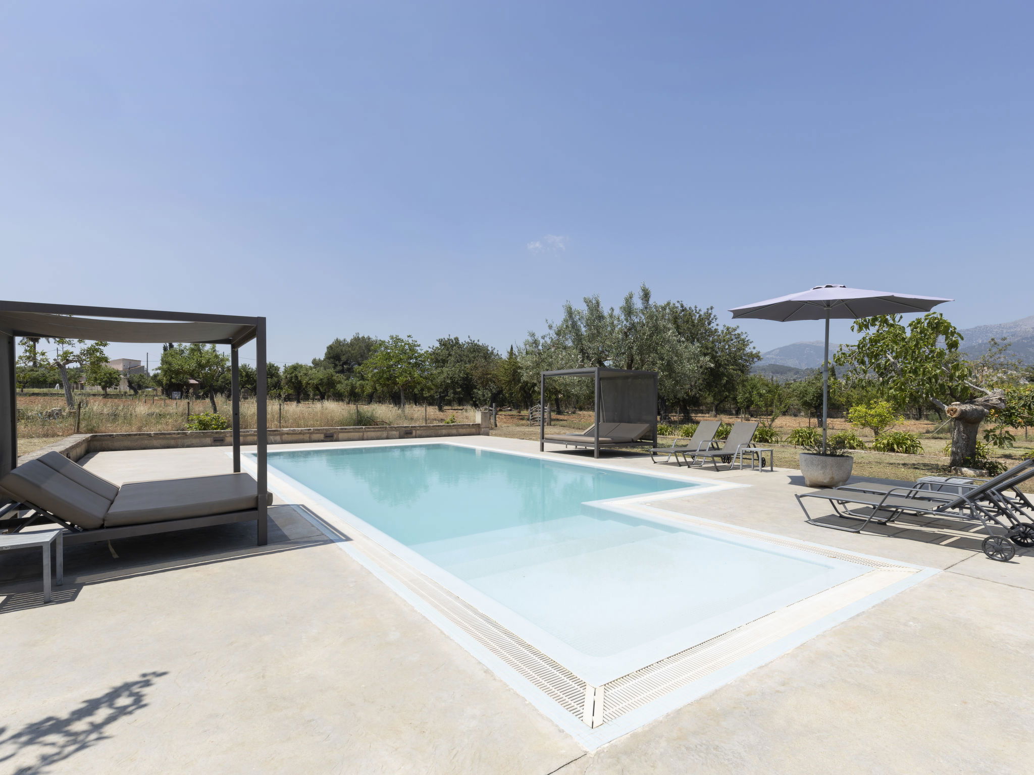 Large, modern, rustic farm estate "Cas Ciutada", built in 1850, renovated in 2015, surrounded by fields. Property composed of main house and outbuilding, outside the resort, 3 km from the centre of Selva, in a quiet, sunny position, 25 km from the sea, in the countryside. Private: natural state property (fenced) with lawn and wildlife garden, swimming pool (12 x 5 m, depth 50 - 180 cm, seasonal availability: 01.Jan. - 31.Dec.). WC in the pool area, outdoor shower, table tennis, patio, arbour, pergola, garden furniture, barbecue, barbecue house, pool maintenance by the owner/gardener. In the house: internet access, WiFi, storage room for bicycles, air conditioning. Parking at the house on the premises. Grocery 2 km, supermarket 3 km, restaurant 3 km, bar 3 km, bus stop "Selva 1 (58011)." 3 km, sandy beach "Playa de Port d'Alcúdia" 27.5 km. Sports harbour 27.8 km, golf course (18 hole) 24 km, tennis 4 km, riding stable 5 km, sports centre 5 km, walking paths from the house 4 km, cycle lane 100 m. Nearby attractions: Ciudad de Inca 4 km, Pueblos,Campanet,Caimari,Moscari,Mancor. Palma City 31 km, Mallorca Fashion Oulet & Cinemas 24 km, Playa de Formentor 35 km, Ermita de Lluc 15 km. Hiking paths: Serra de Tramuntana, Puig de Santa Magdalena. Please note: car recommended. Suitable for seniors. Object suitable for 8 adults. The owner does not accept any youth groups. Animals in the neighbourhood. Airfield 40 km from the property.