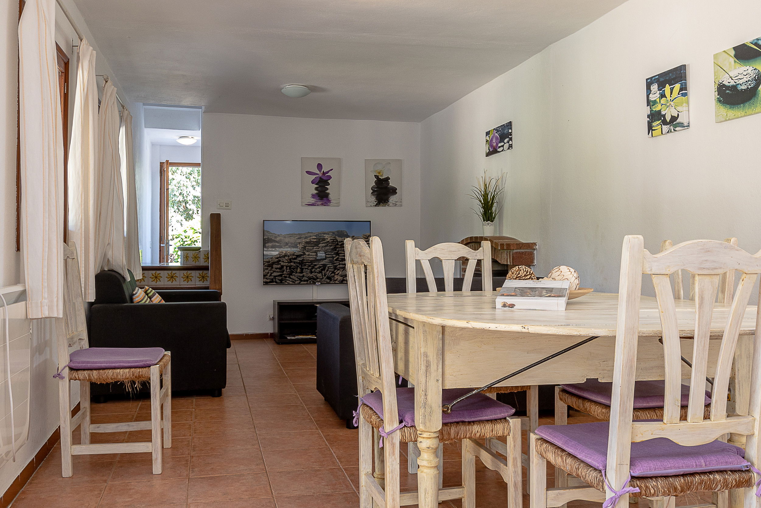 Spacious living-dining room with fireplace and air conditioning, ideal for both chilly winter nights and low-season stays.