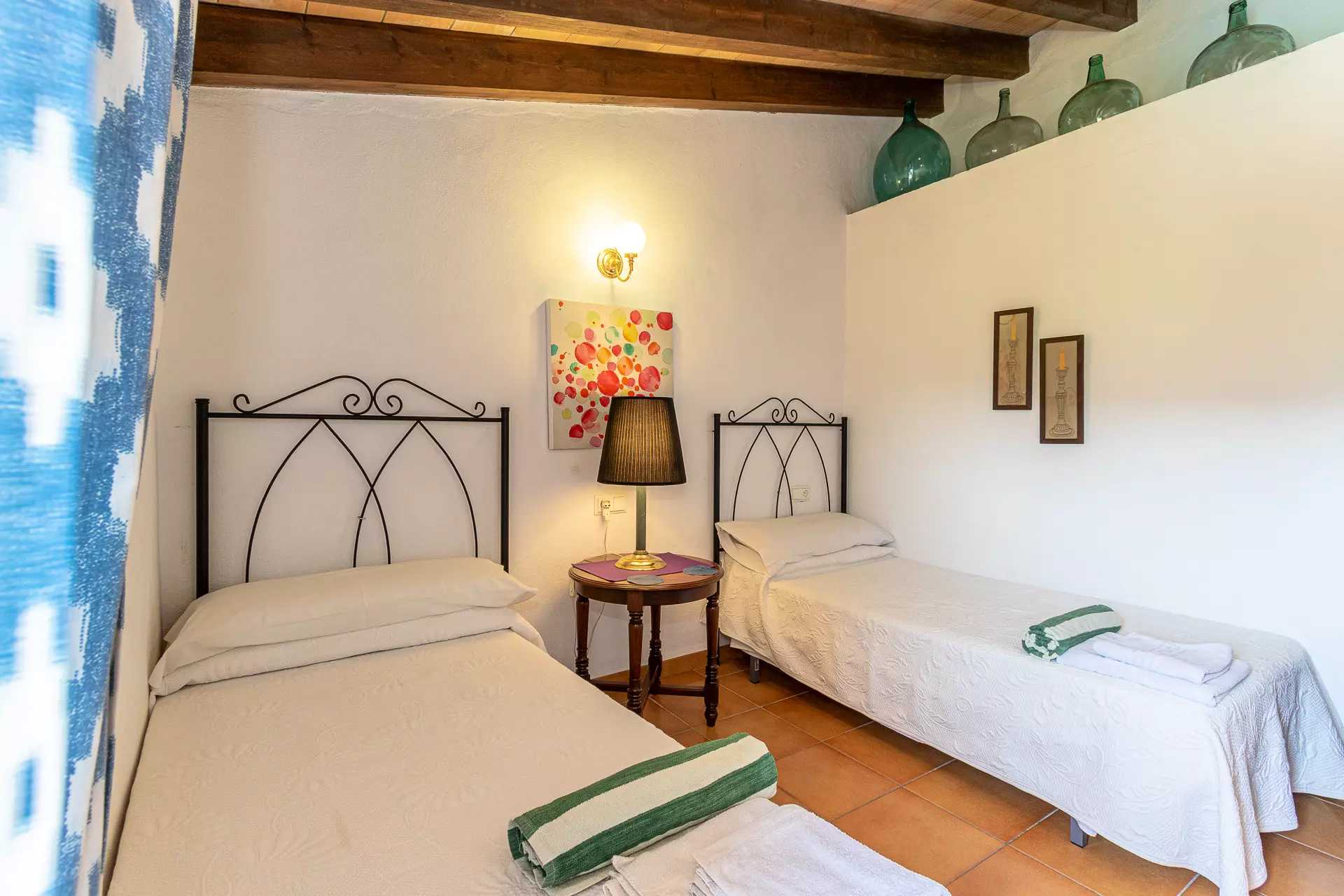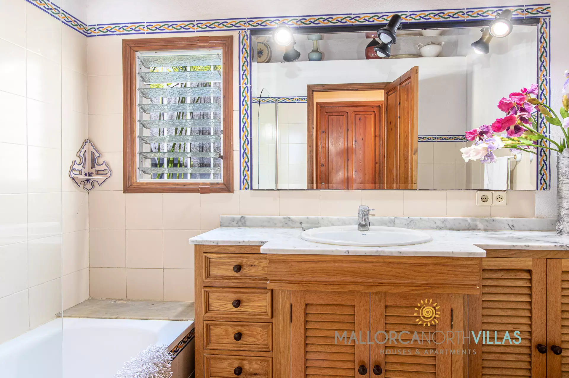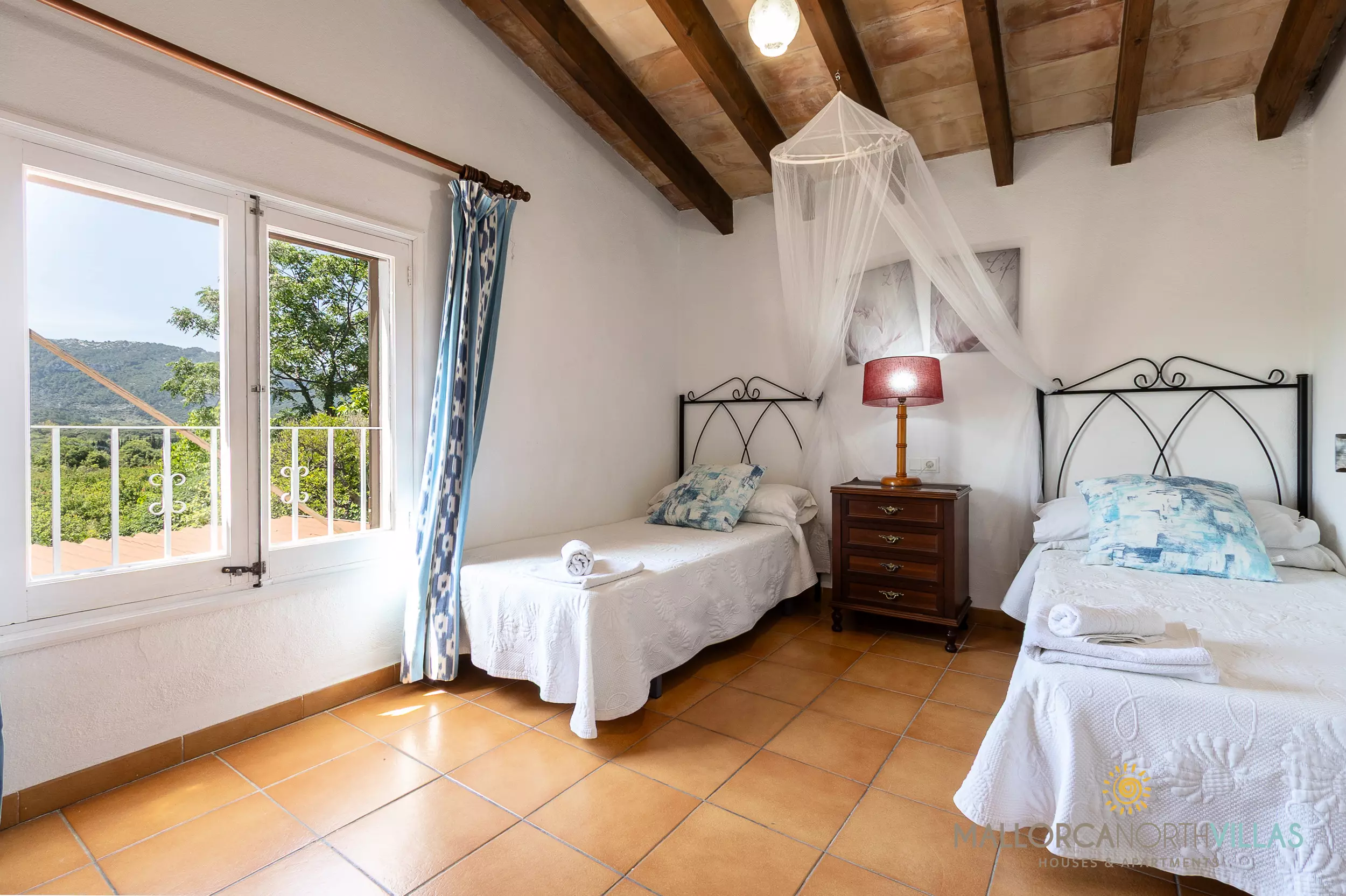Upstairs: three comfortable bedrooms (one with a double bed and two with single beds) and a second bathroom. All rooms offer spectacular views of the Serra de Tramuntana, the Mallorcan countryside, and the iconic Puig de Maria.