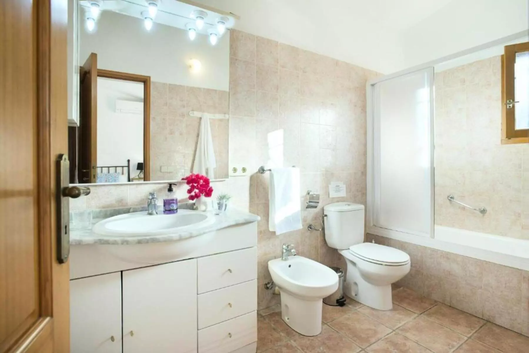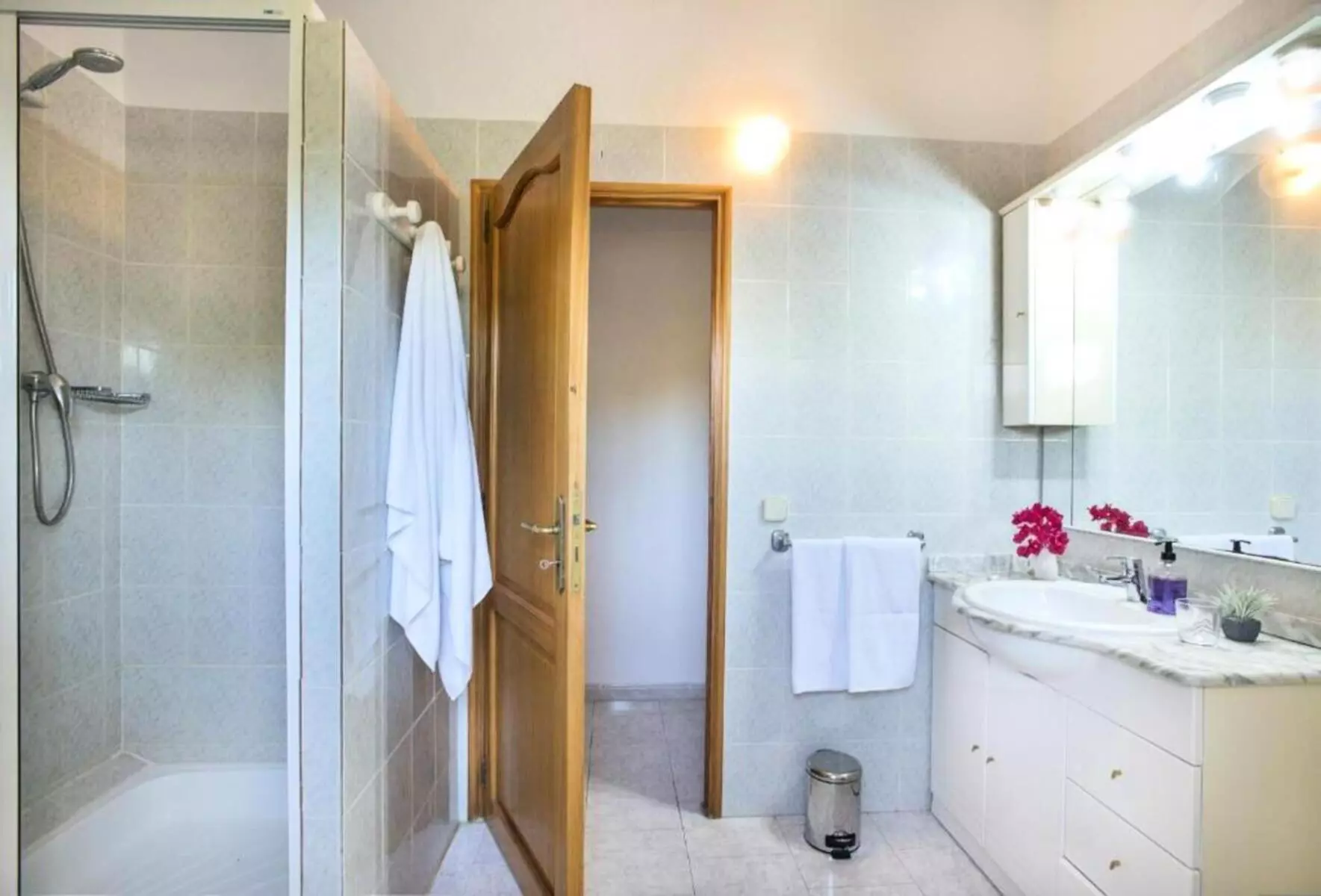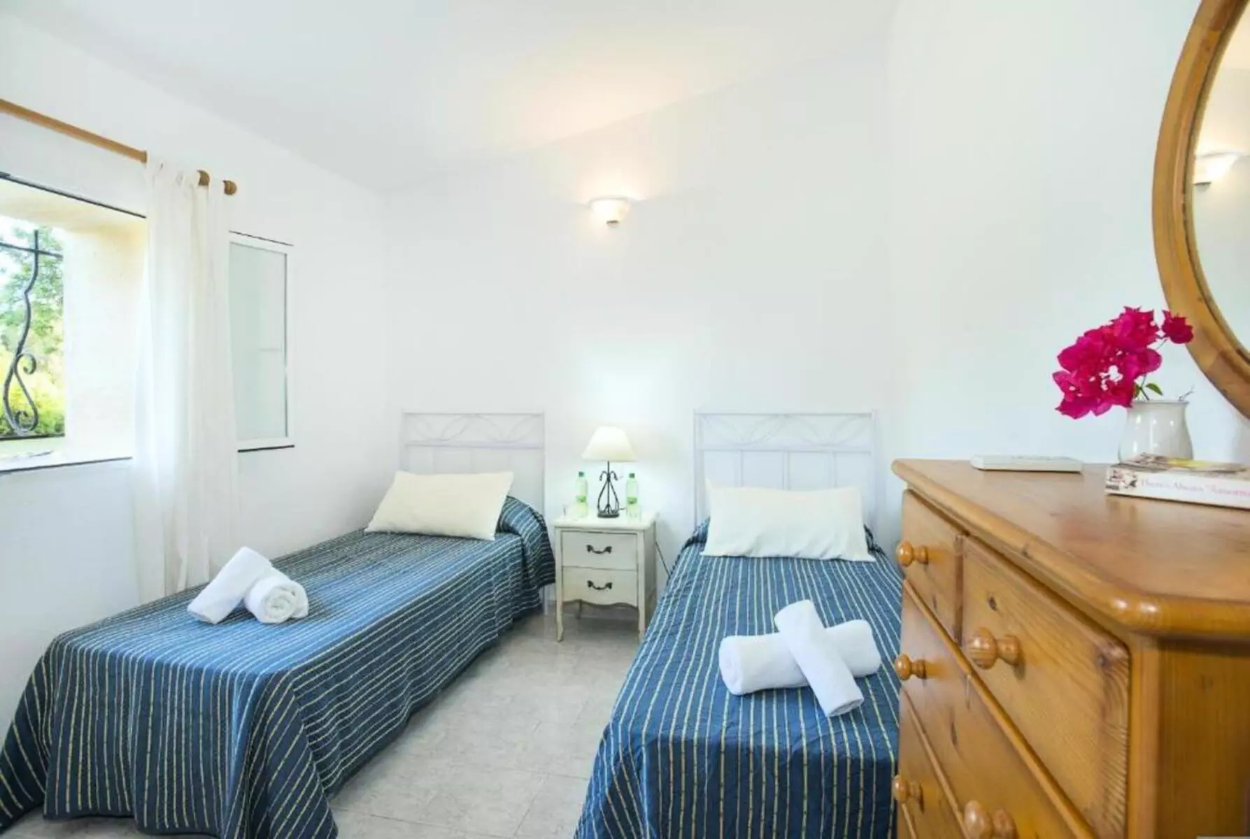 The two other bedrooms, with single beds of 90 cm, share a bathroom with shower.